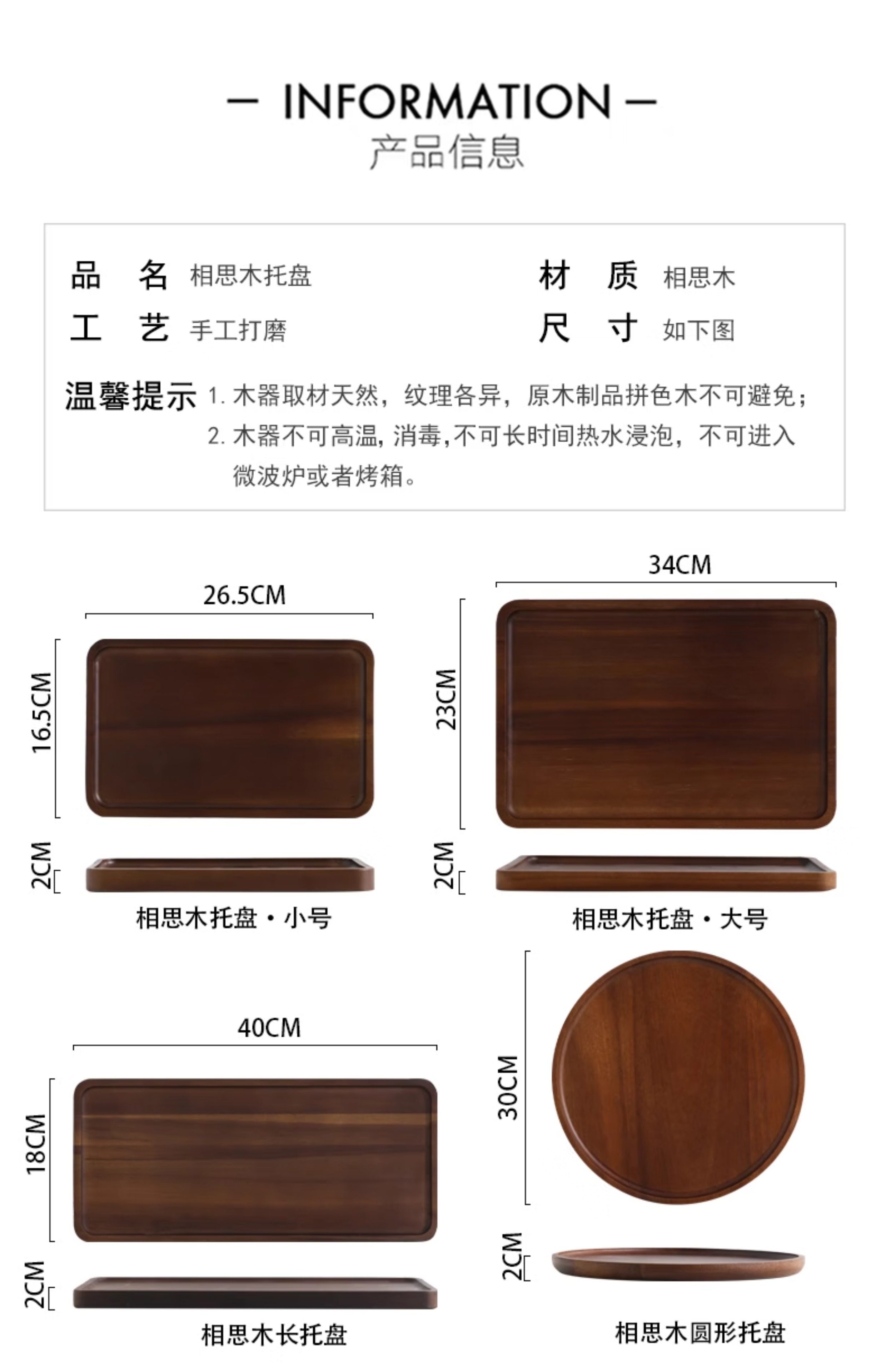 일본식 가정용 아카시아 나무 단단한 직사각형 나무 트레이 커피 컵 차 트레이 컵 트레이 보관 트레이 저녁 식사 트레이스토어 가기