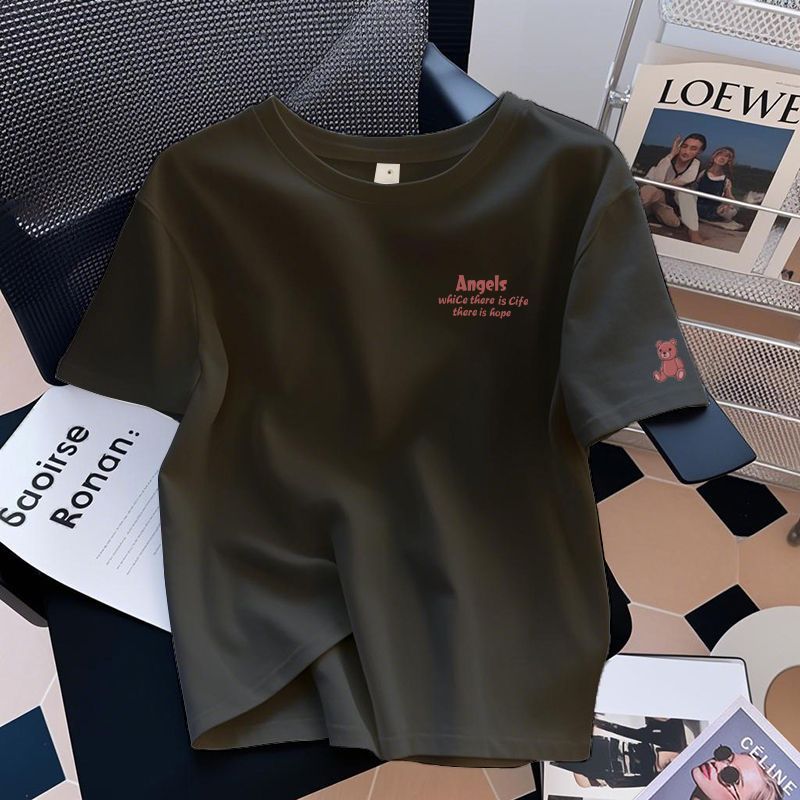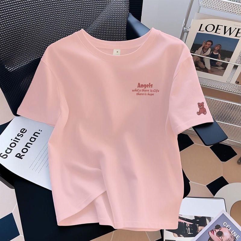 2025 여름 신작 핑크 도파민 퓨어 코튼 반팔 티셔츠 여성 루즈하고 세련된 디자인 탑 인 트렌드스토어 가기