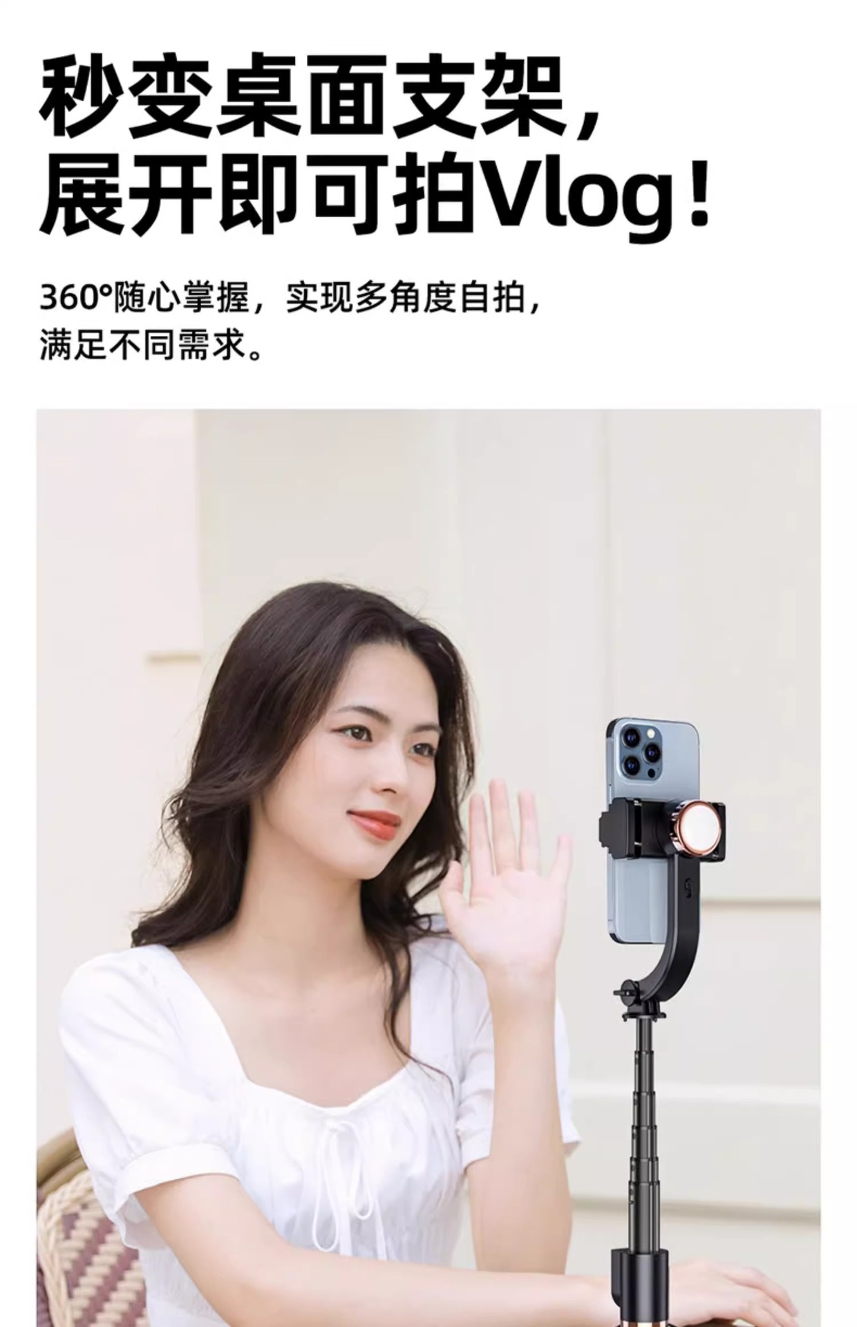 휴대용 짐벌 안정기, 흔들림 방지 사진 유물, 텔레스코픽 막대, 휴대용 일체형 삼각대, 휴대폰 블루투스 셀카봉