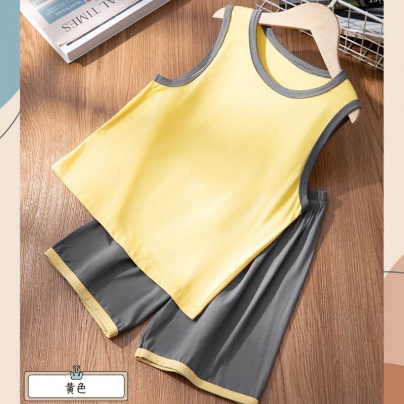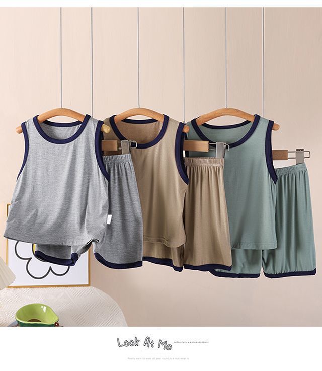 아동용 조끼 세트 얇은 모달 홈 중형 소년 민소매 에어컨 옷 아기 잠옷 여름 티셔츠스토어 가기