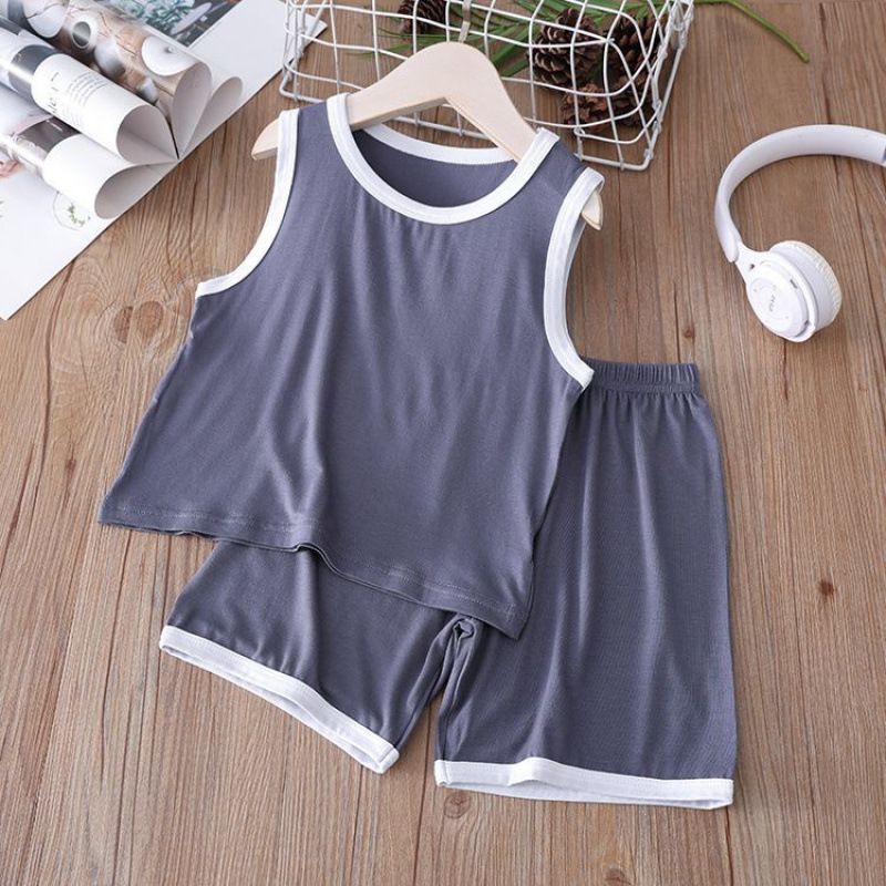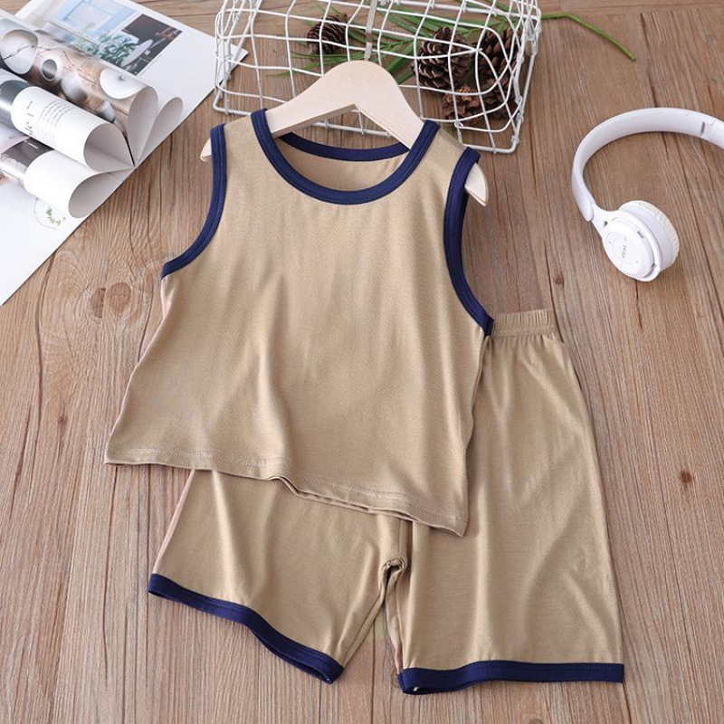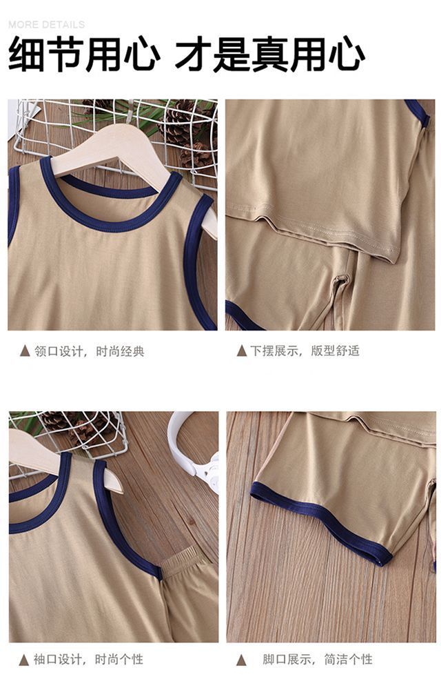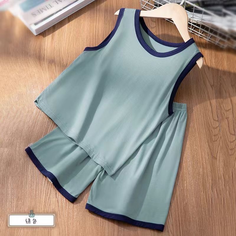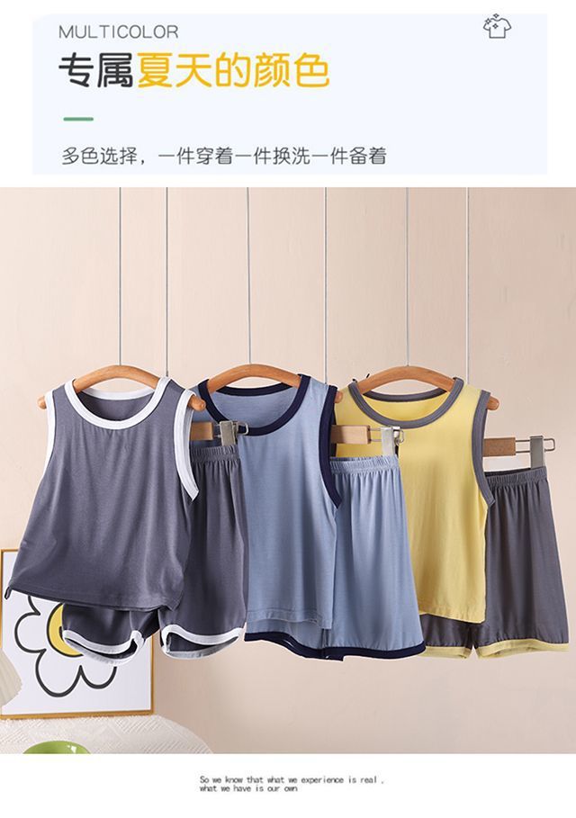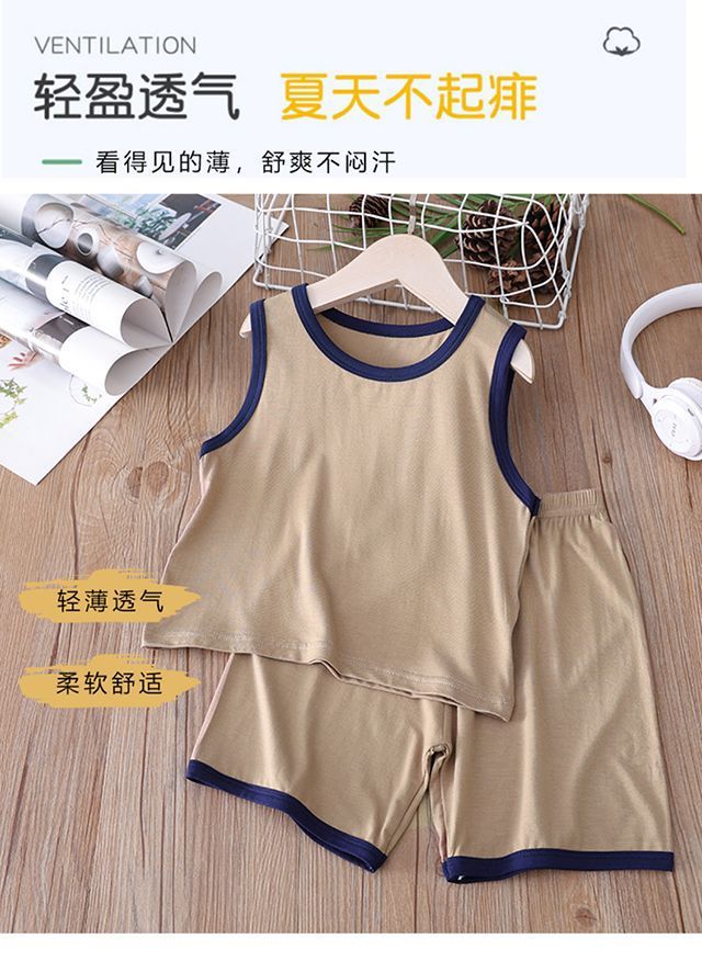 아동용 조끼 세트 얇은 모달 홈 중형 소년 민소매 에어컨 옷 아기 잠옷 여름 티셔츠