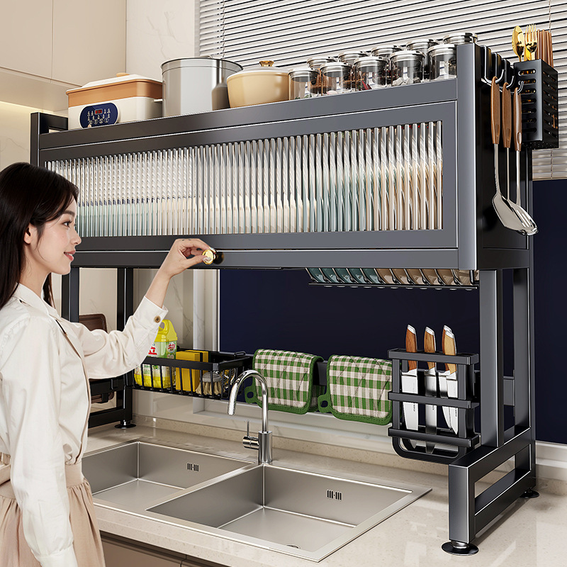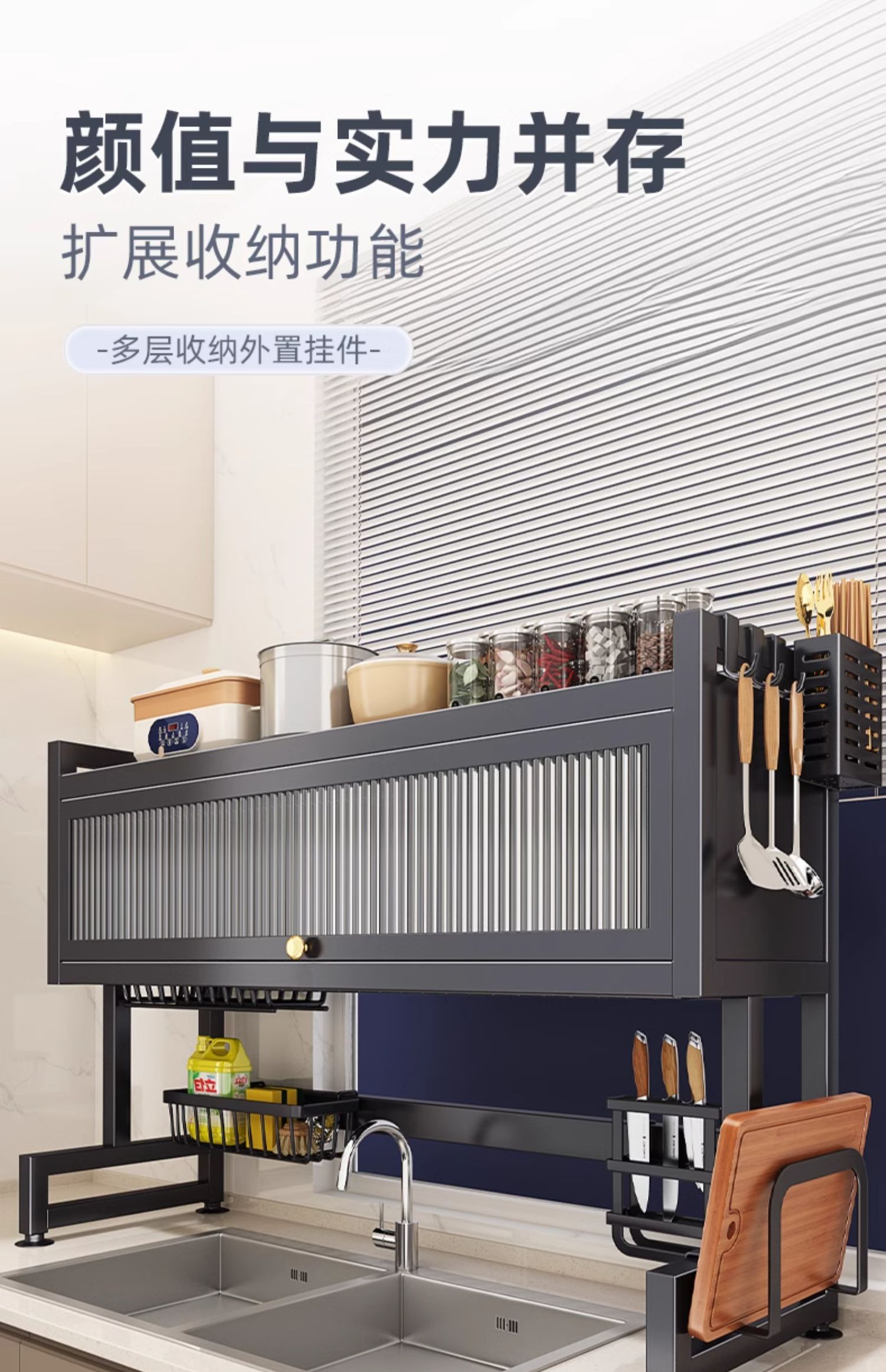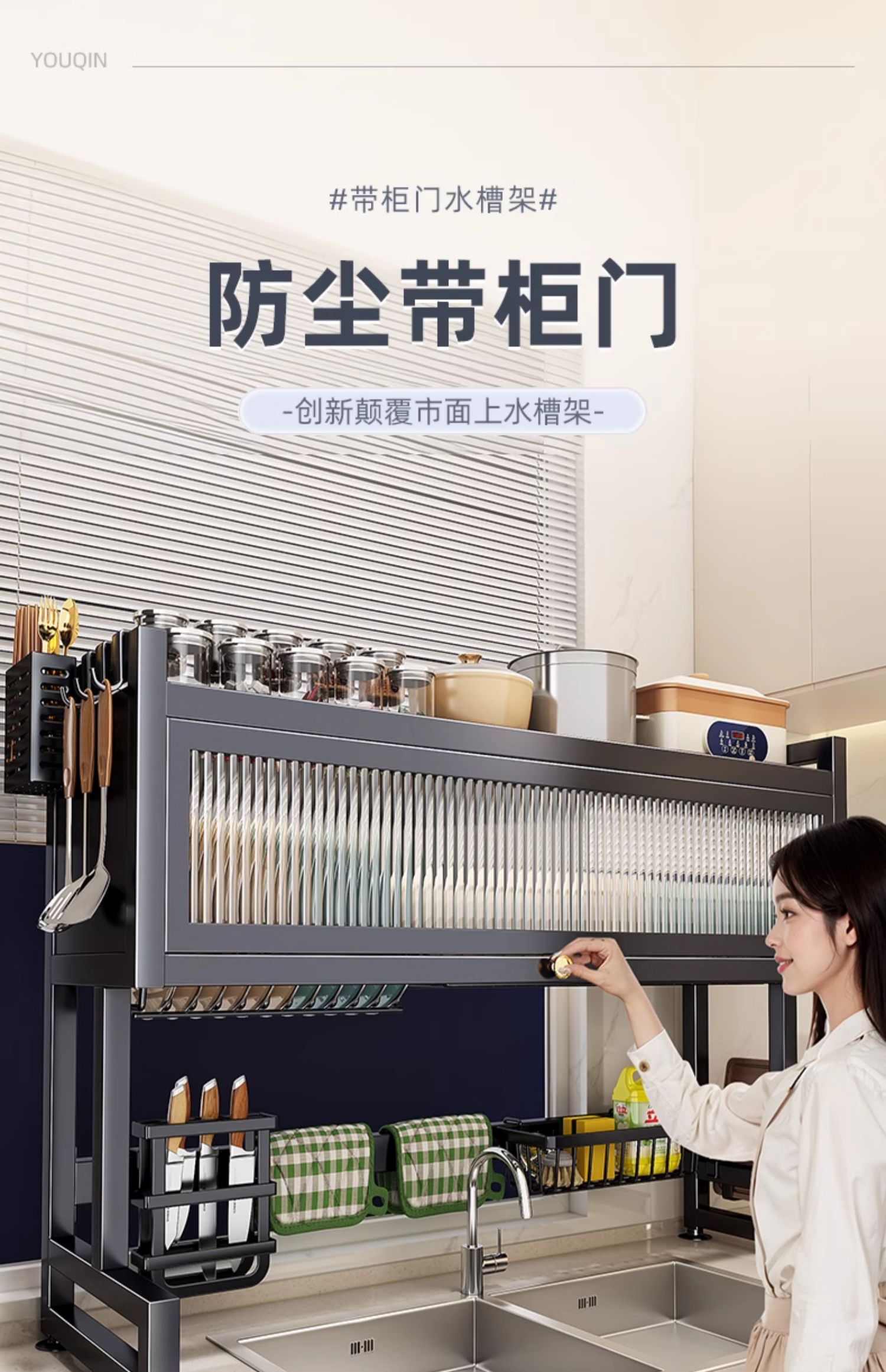 주방 스테인레스 스틸 싱크대 수납 선반 식기 세척 싱크대 방진 그릇 조리대 수납 캐비닛 다기능 배수 선반스토어 가기