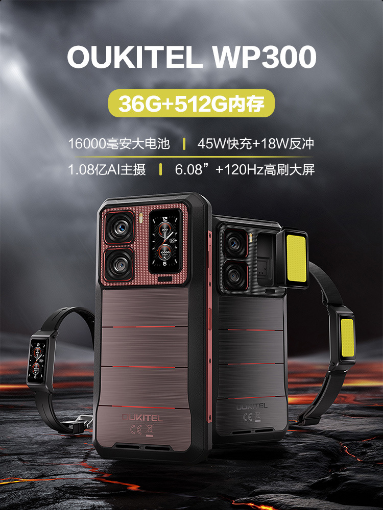 Ouqi WP300 3방지 스마트폰 풀 네트워크 5G 모듈 시계 캠핑 라이트 16000mAh 긴 대기 시간스토어 가기