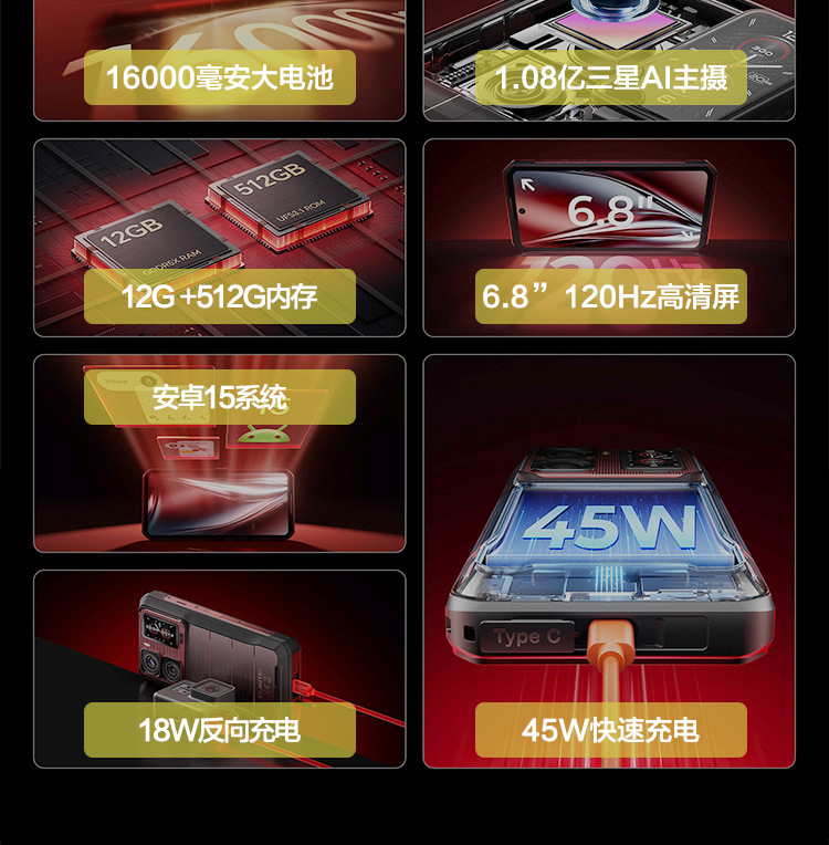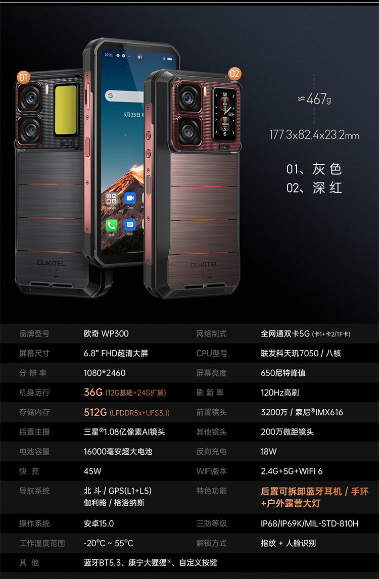 Ouqi WP300 3방지 스마트폰 풀 네트워크 5G 모듈 시계 캠핑 라이트 16000mAh 긴 대기 시간