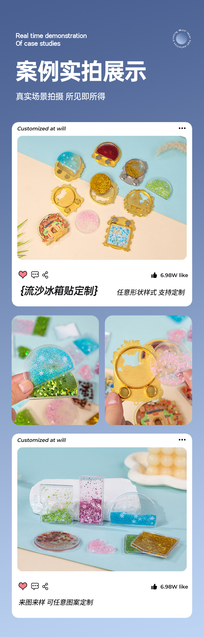 금속 냉장고 자석 아크릴 특수형 수제 모래시계 내장 마작 바지카 카드 블록 장식품 맞춤 제작스토어 가기