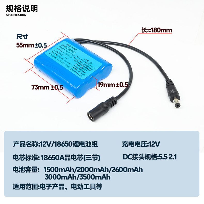 18650 리튬 배터리 팩 11.1V12V3 섹션 직렬 보드 콘센트 3500mAh 배터리 팩 12V 분무기