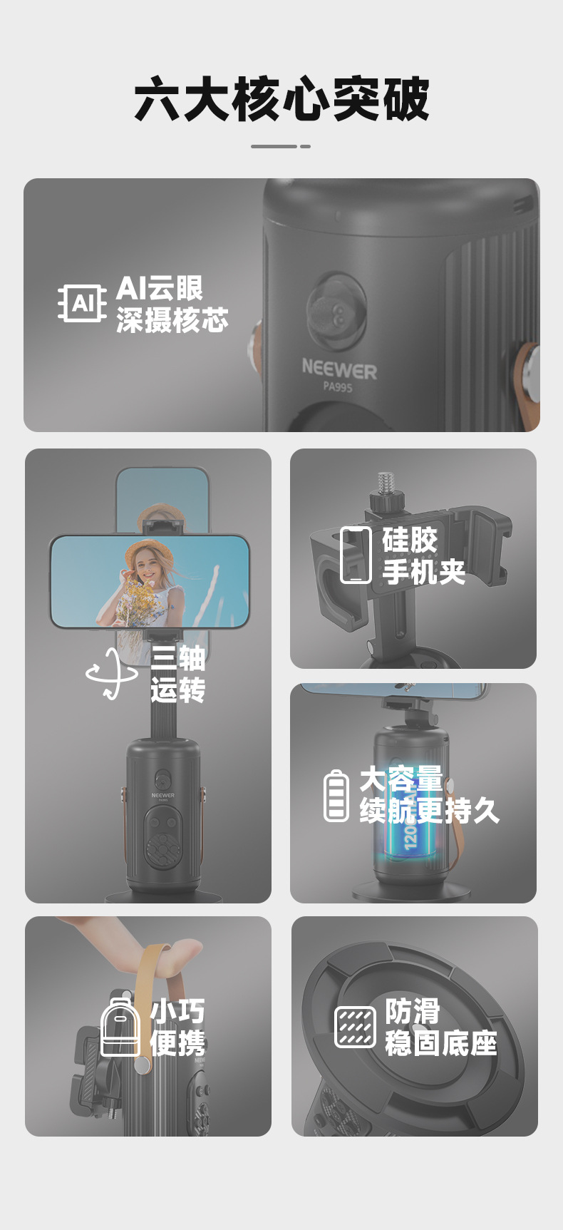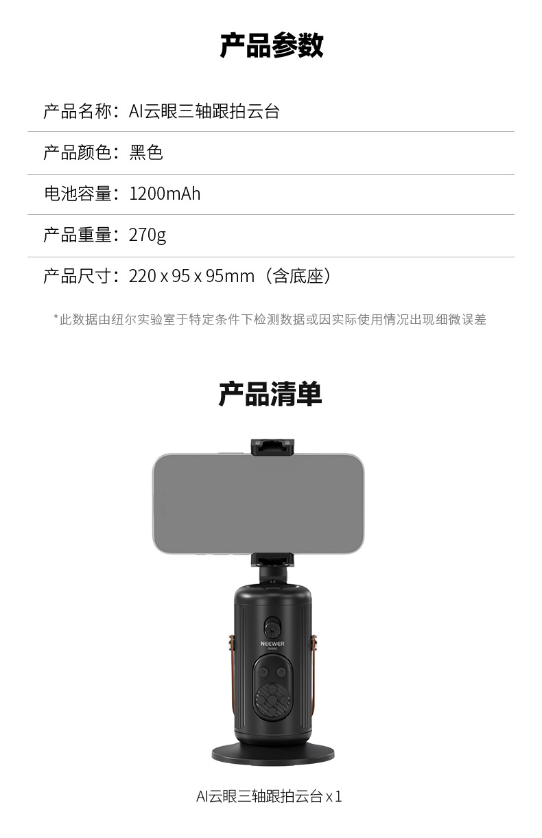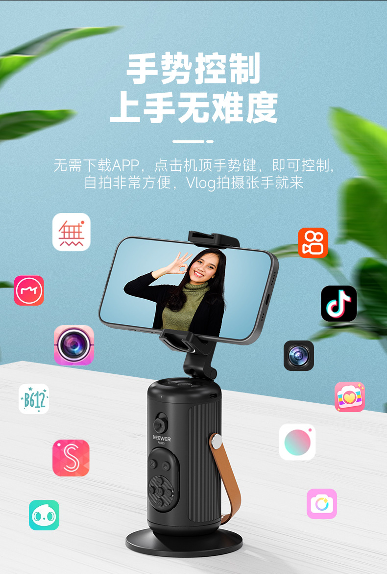 NEEWER 휴대폰 짐벌 완전 자동 촬영 도구 스마트 AI 클라우드 아이 3축 얼굴 추적 셀카 스탠드스토어 가기