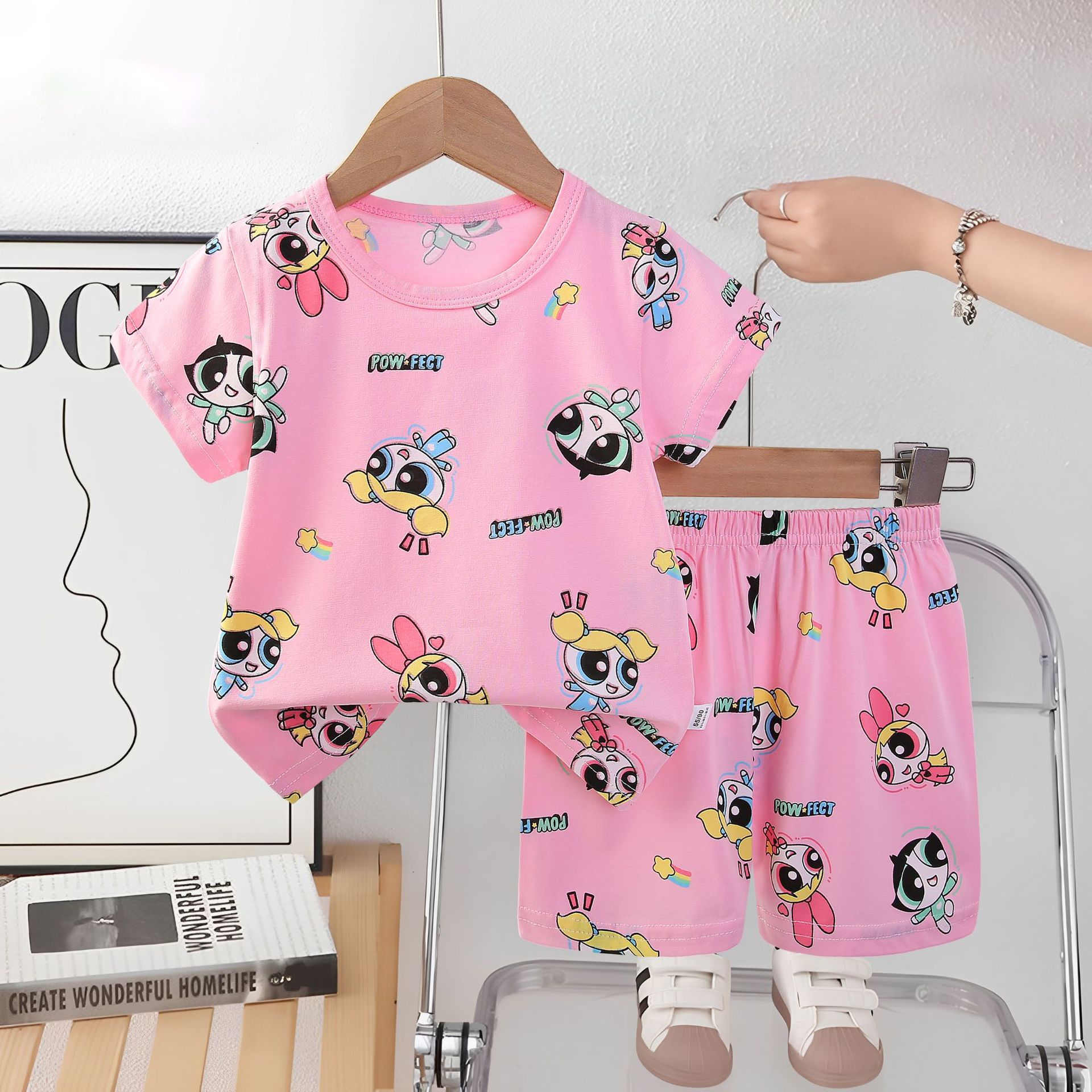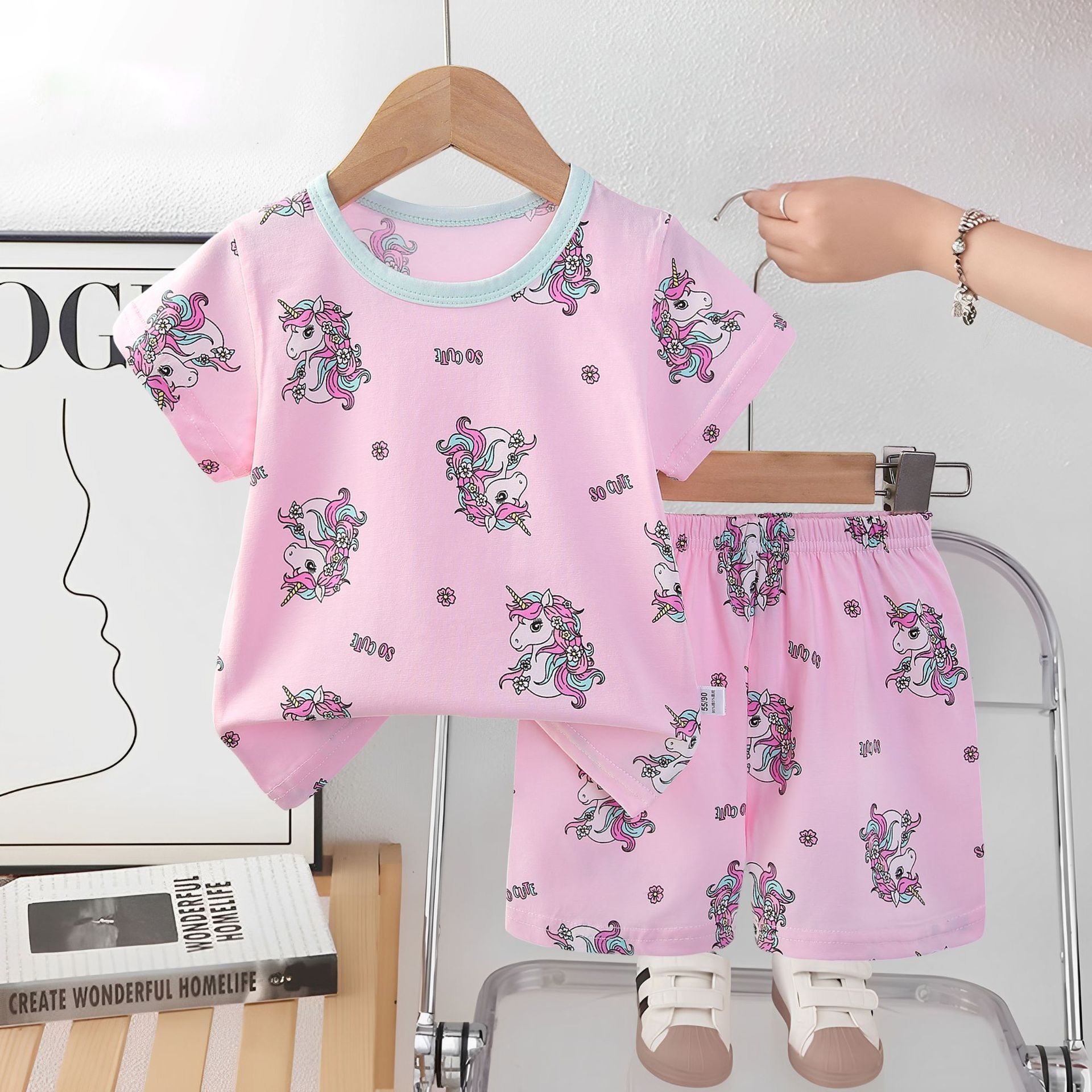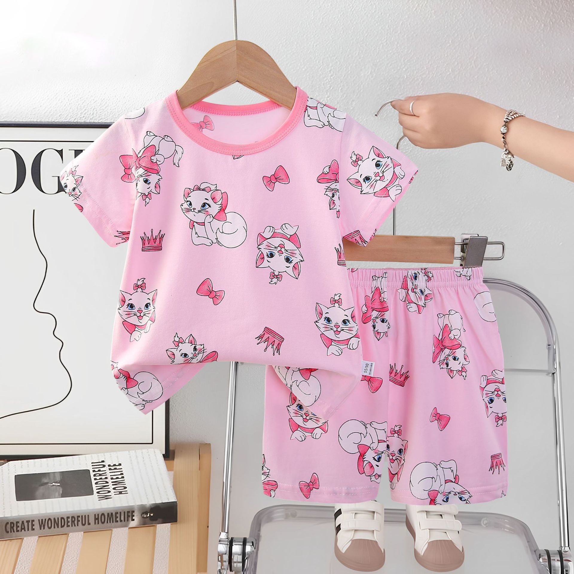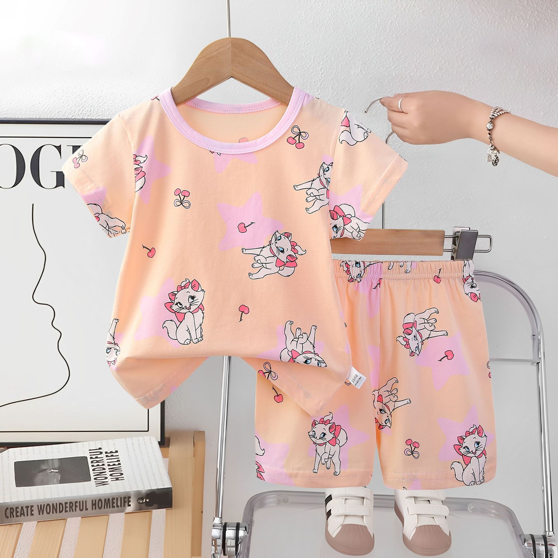 2025 아동복 아동 잠옷 여름 꽃무늬 반팔 반바지 소년 소녀 가정복 세트 공장 직접 공급