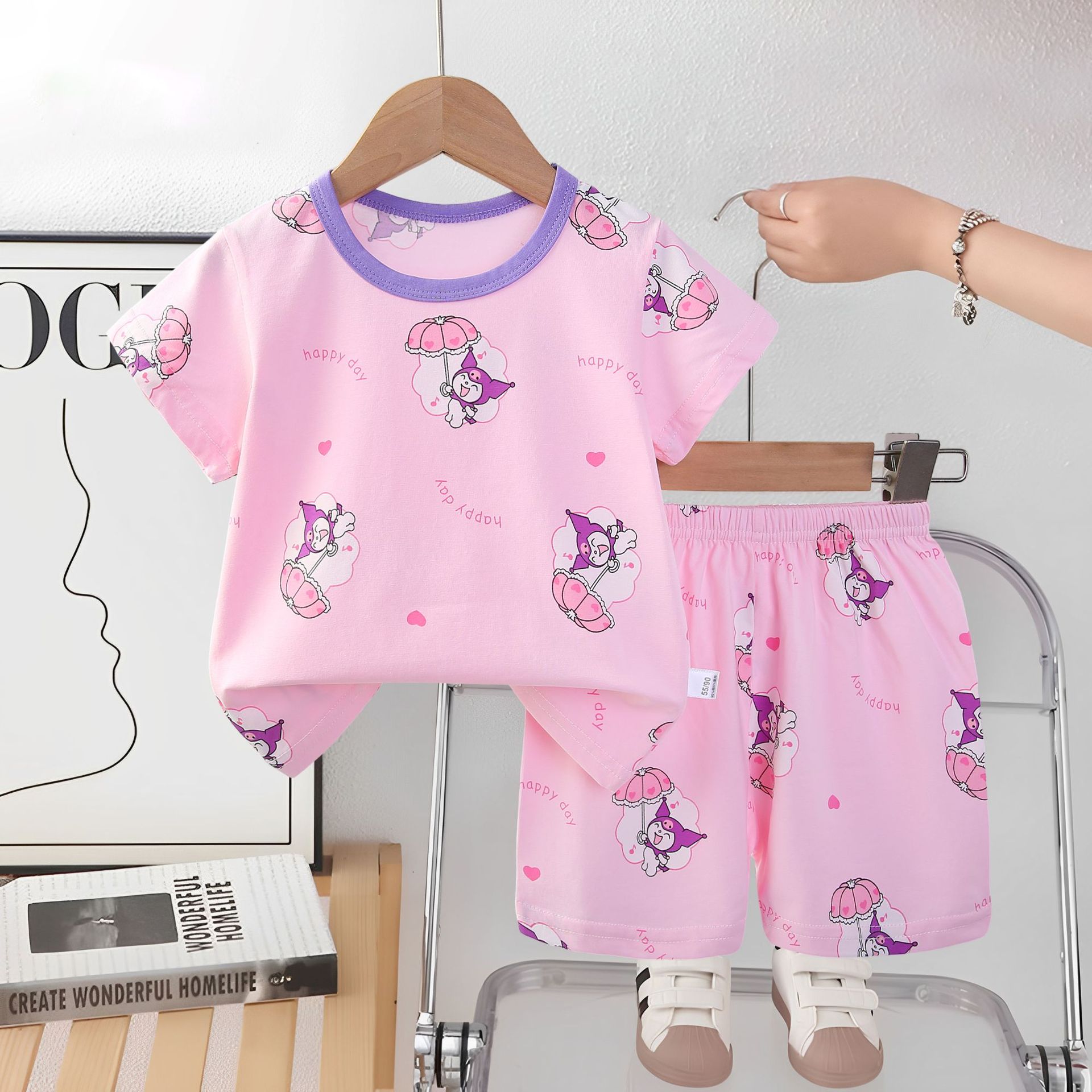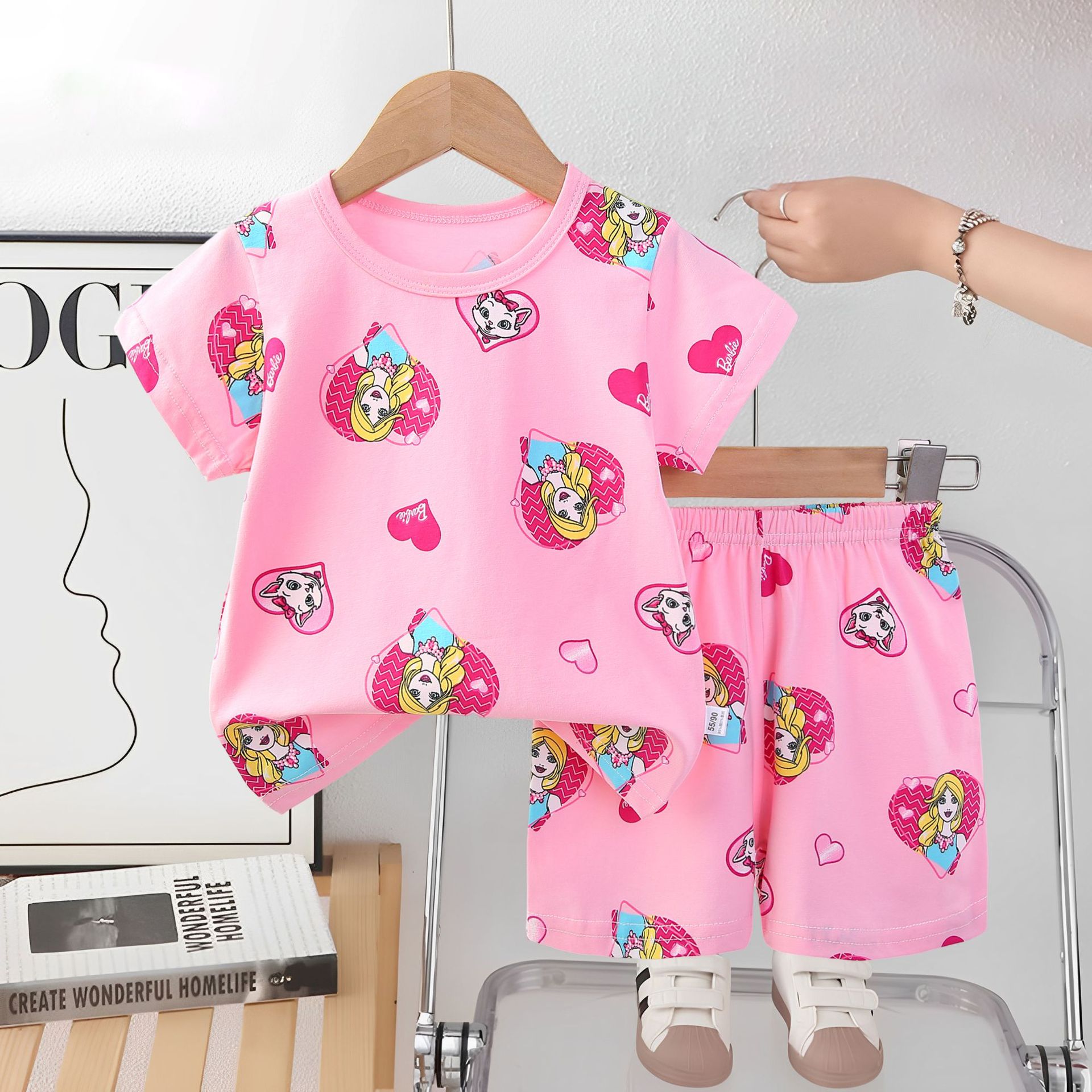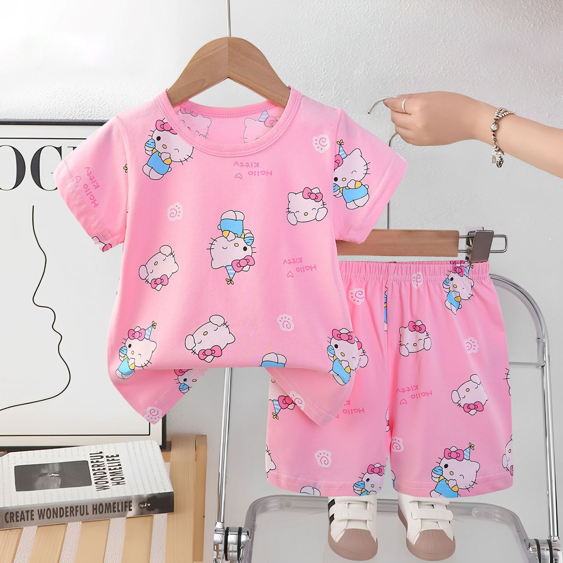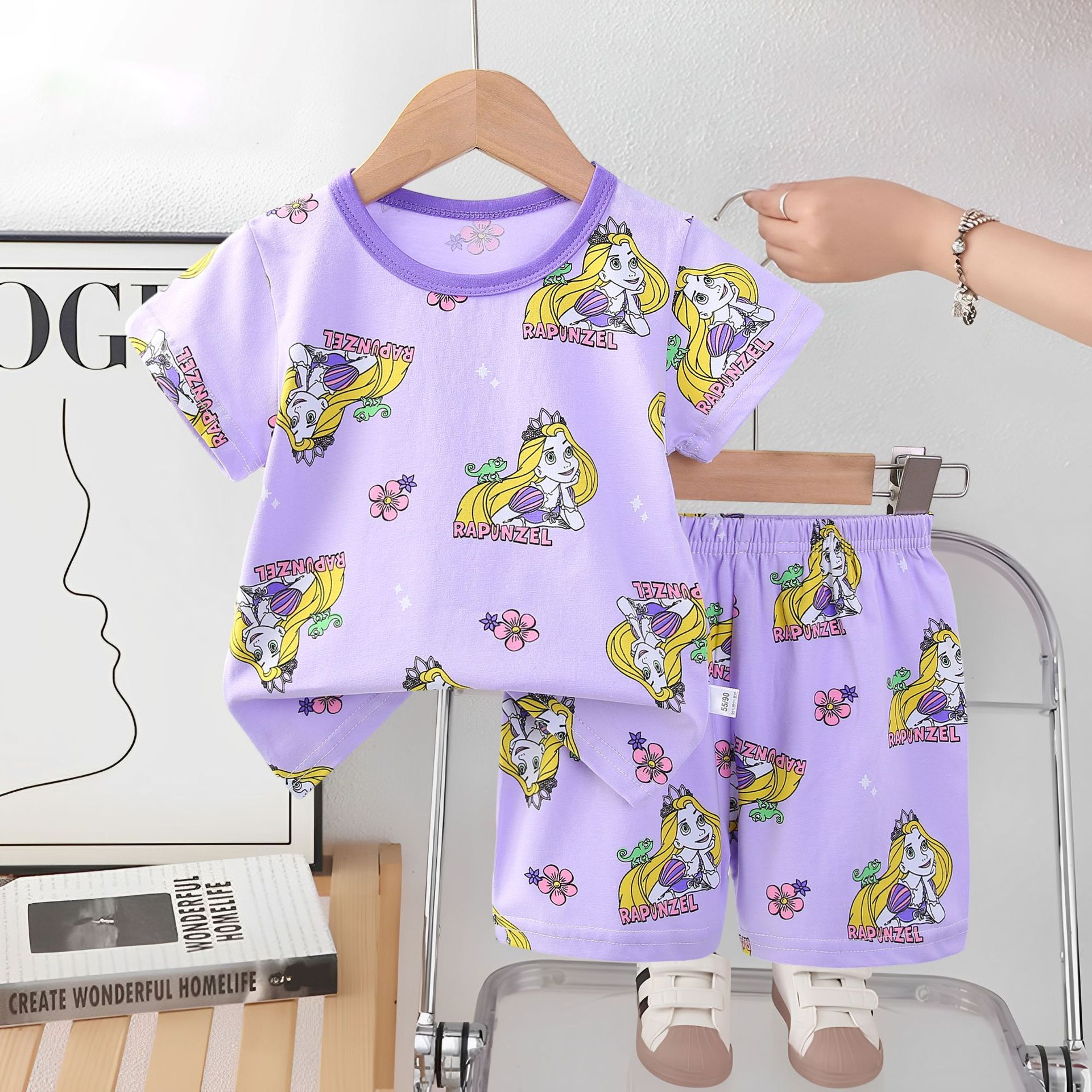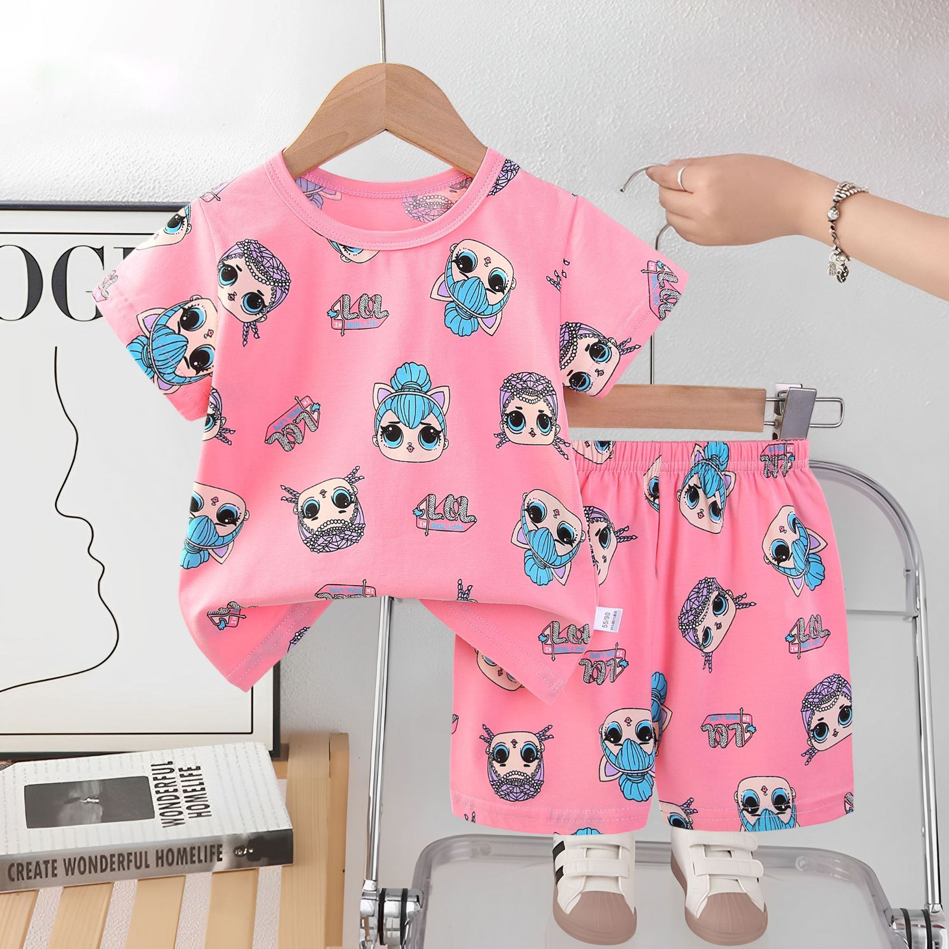 2025 아동복 아동 잠옷 여름 꽃무늬 반팔 반바지 소년 소녀 가정복 세트 공장 직접 공급