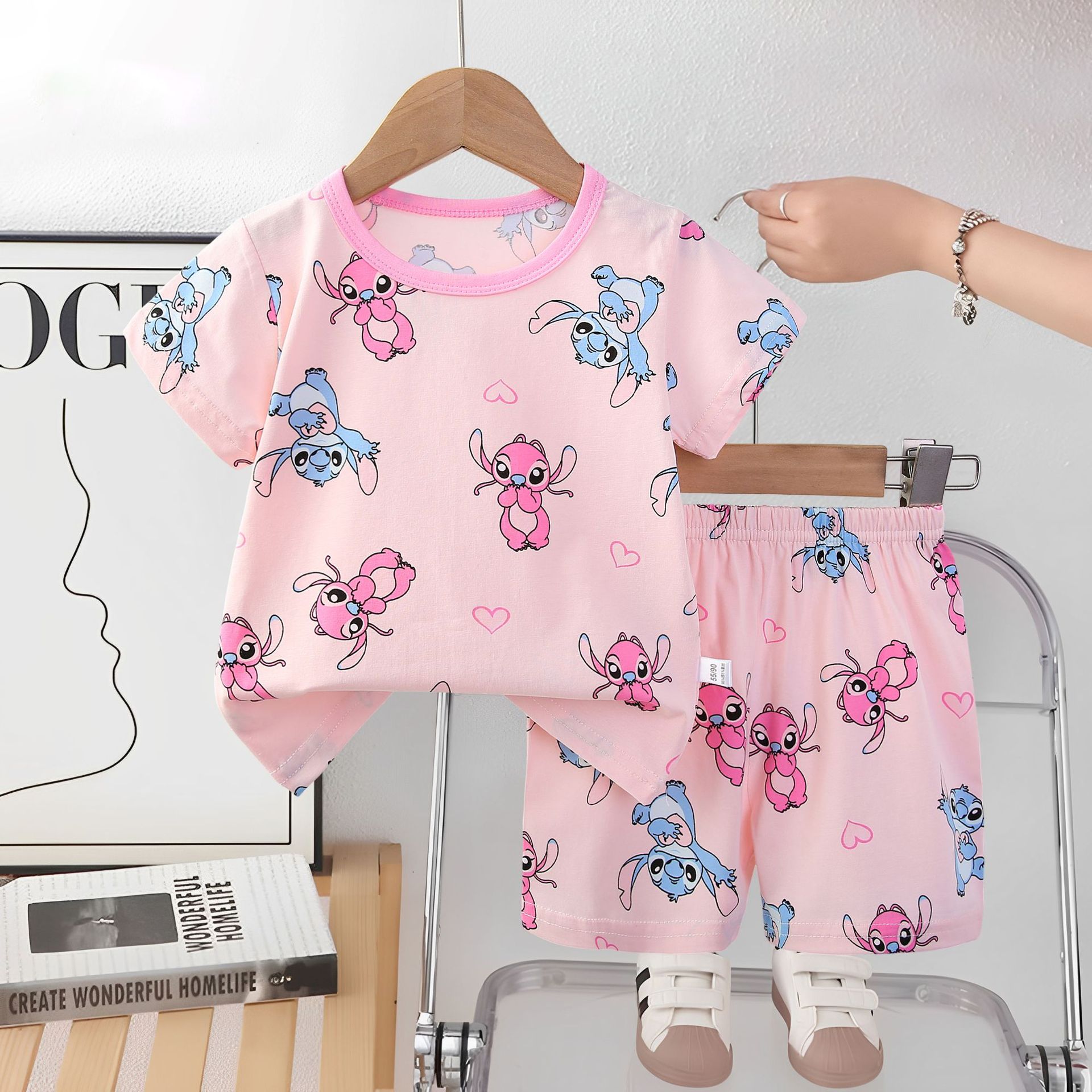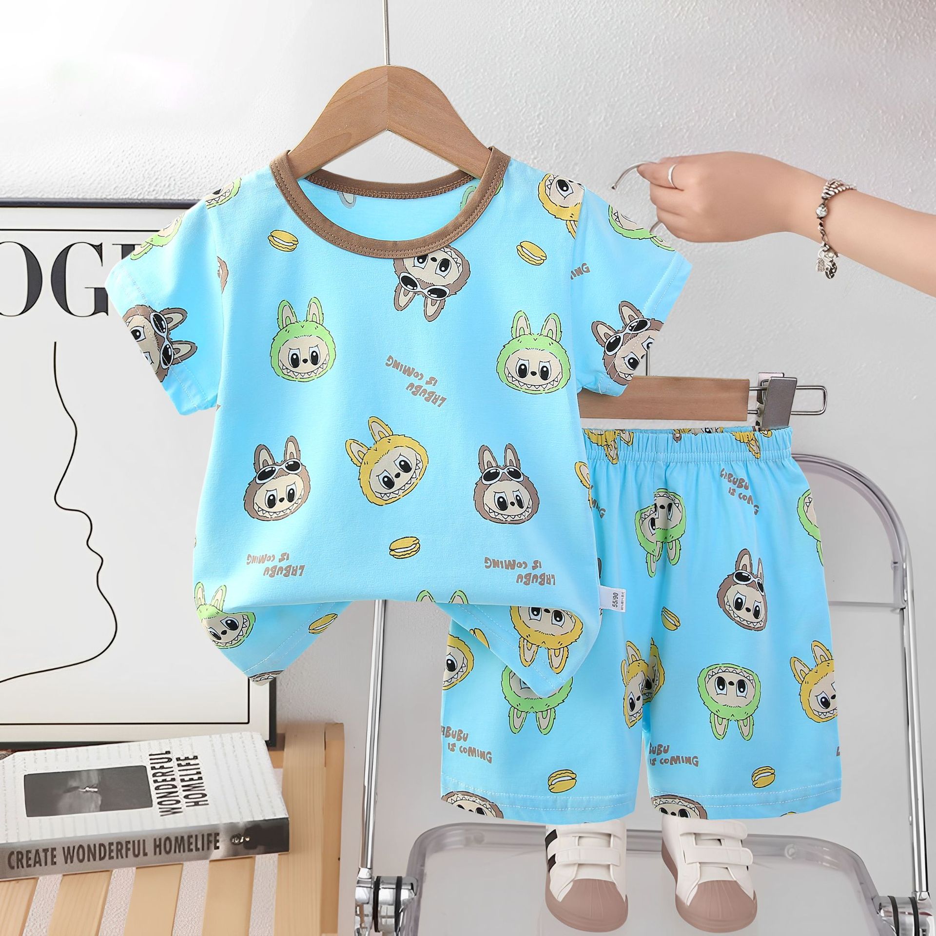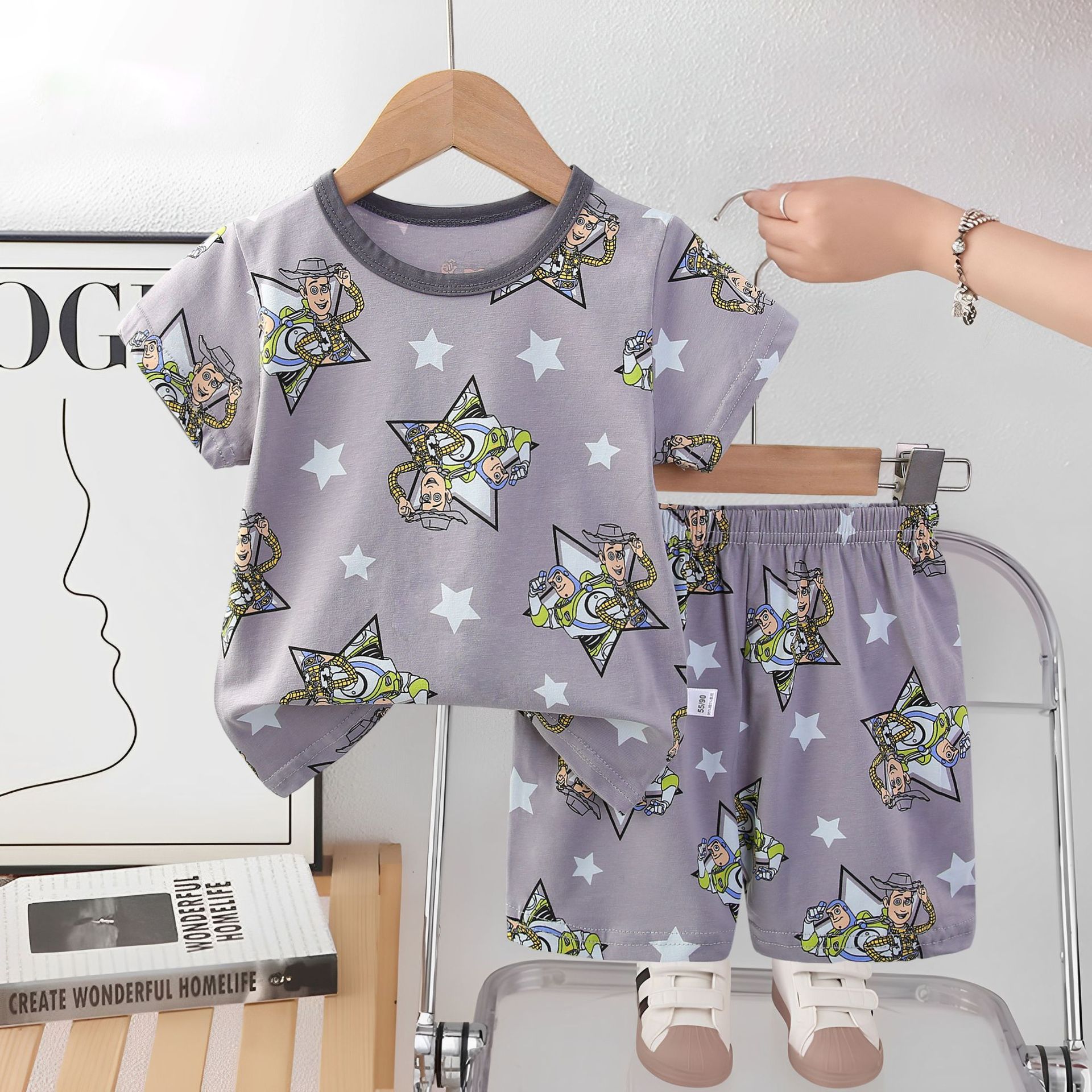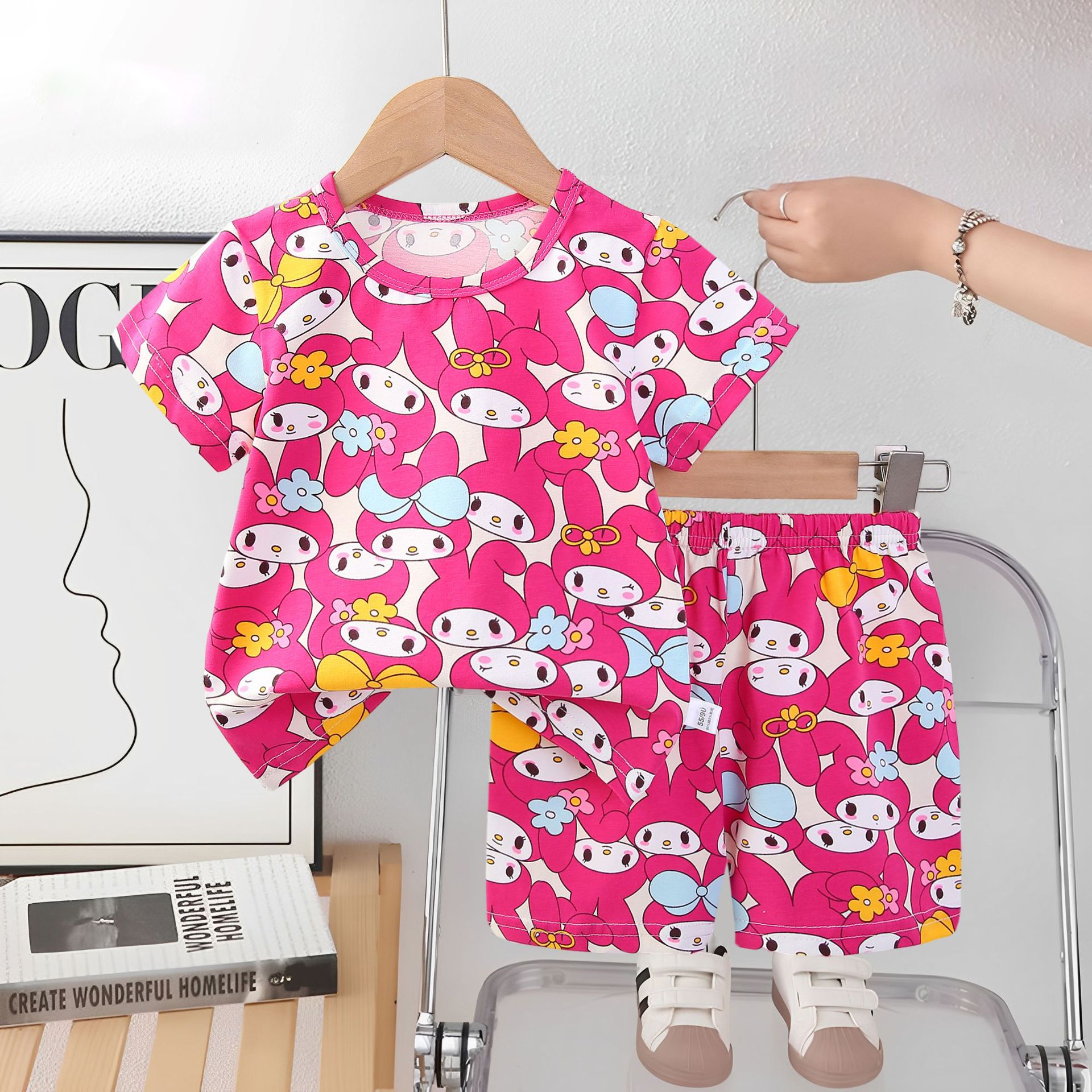 2025 아동복 아동 잠옷 여름 꽃무늬 반팔 반바지 소년 소녀 가정복 세트 공장 직접 공급스토어 가기