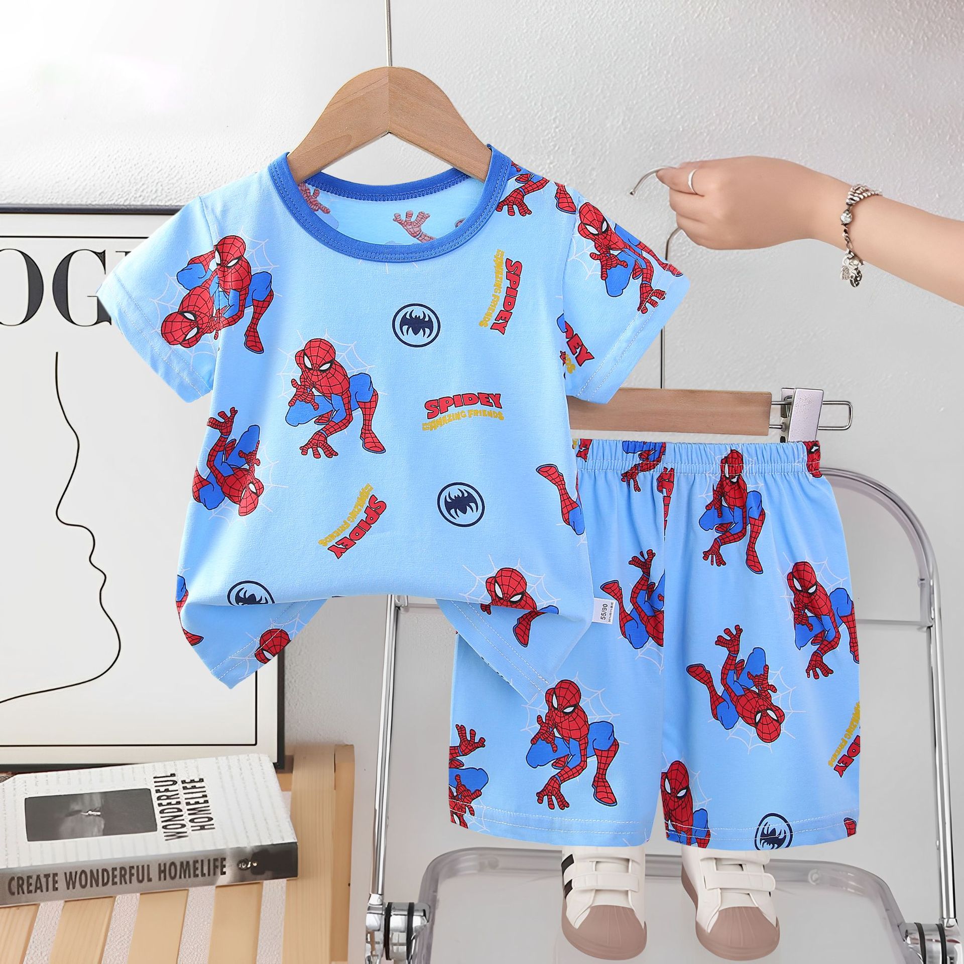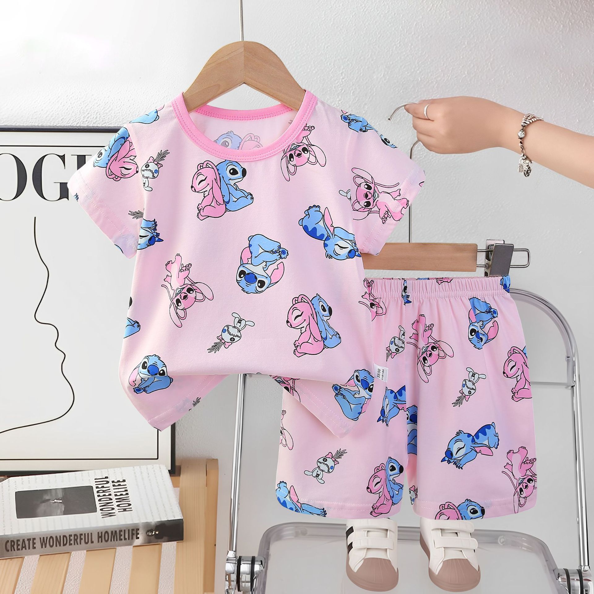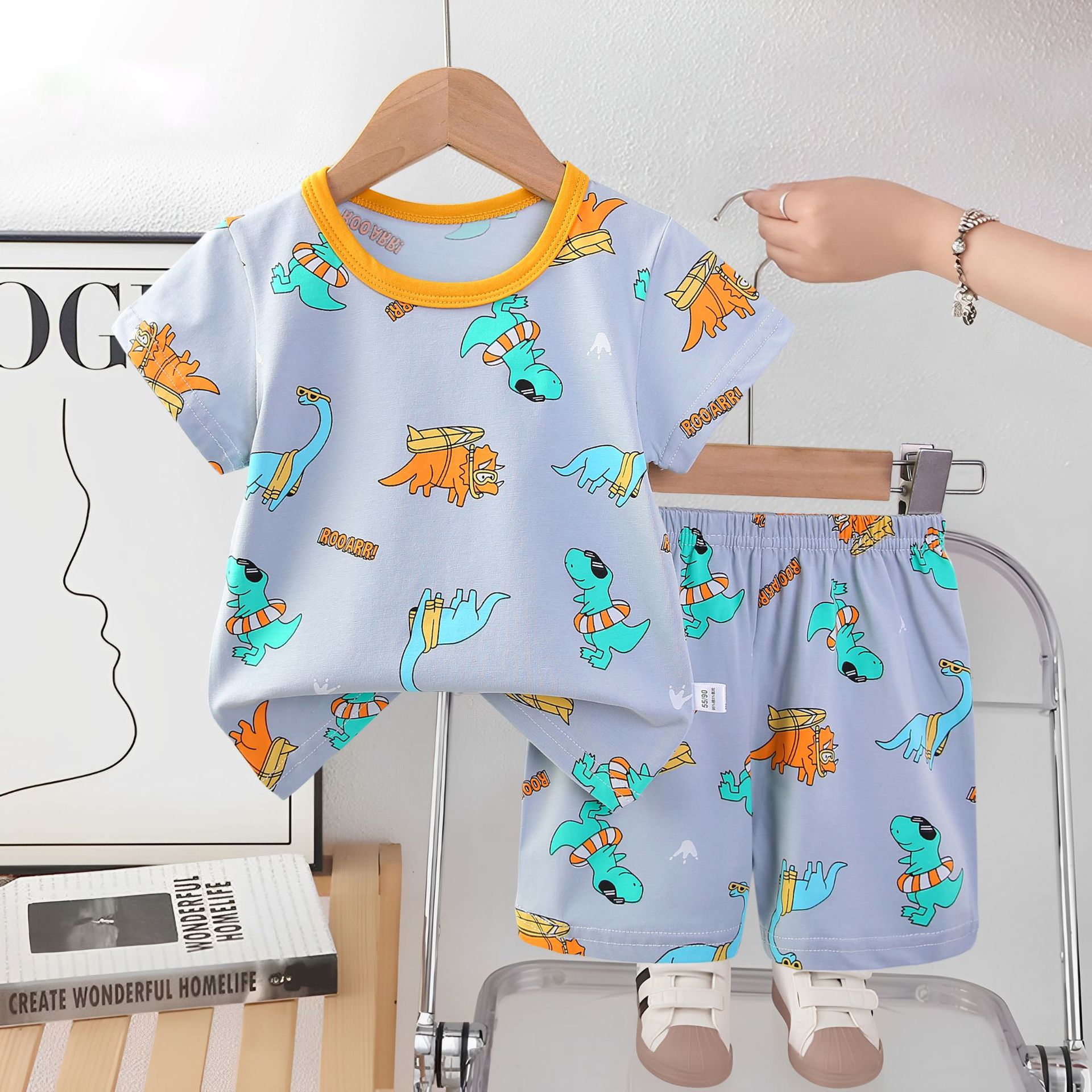 2025 아동복 아동 잠옷 여름 꽃무늬 반팔 반바지 소년 소녀 가정복 세트 공장 직접 공급스토어 가기