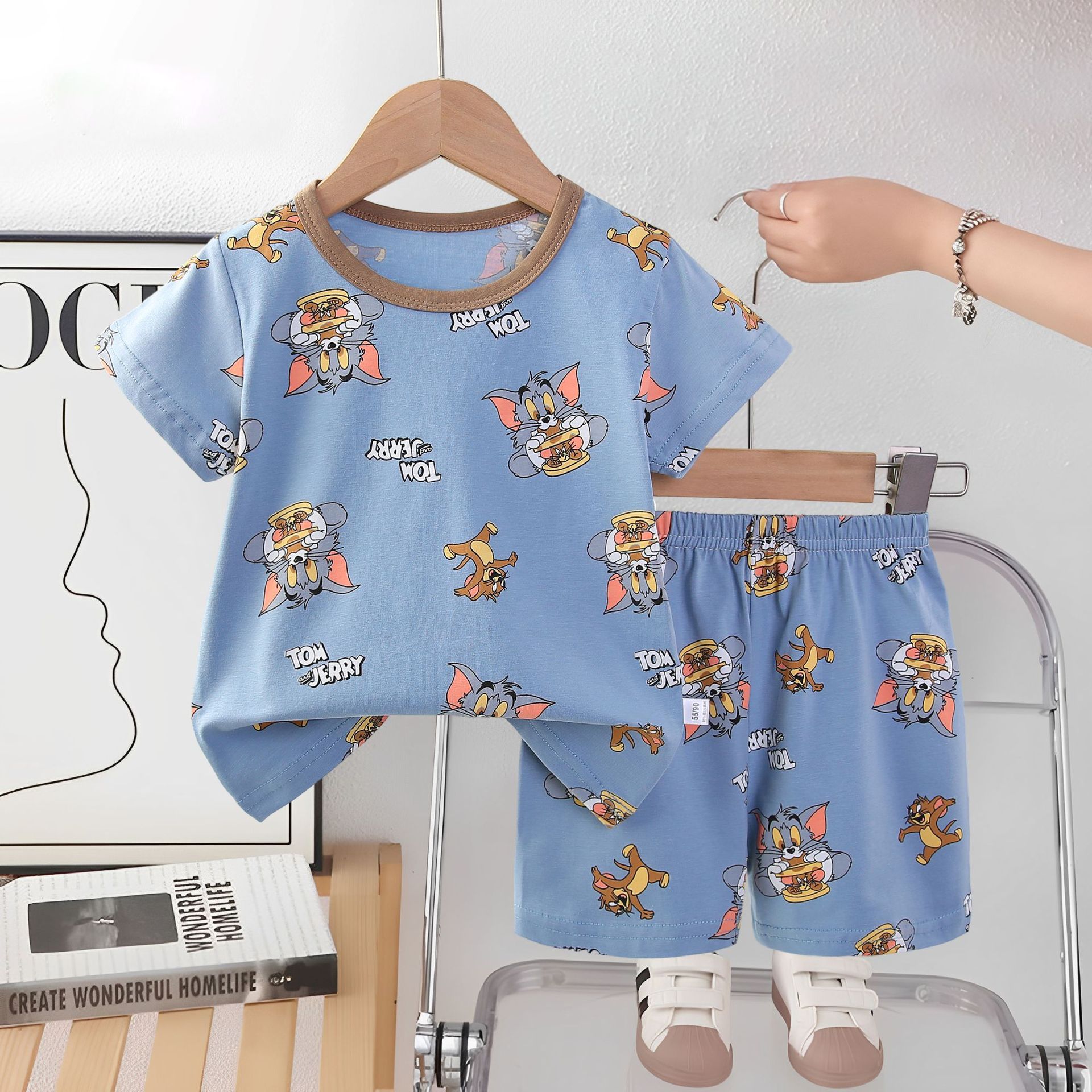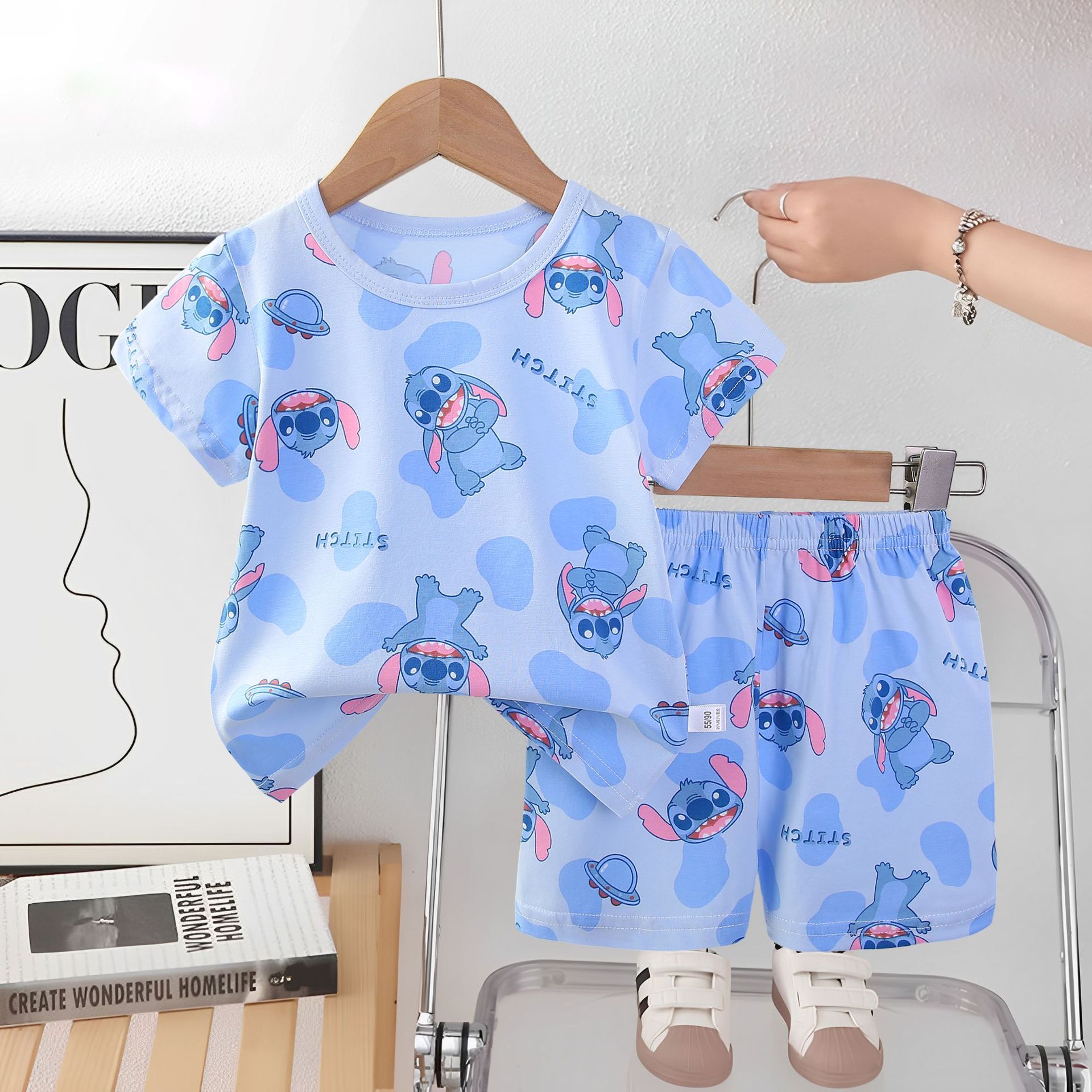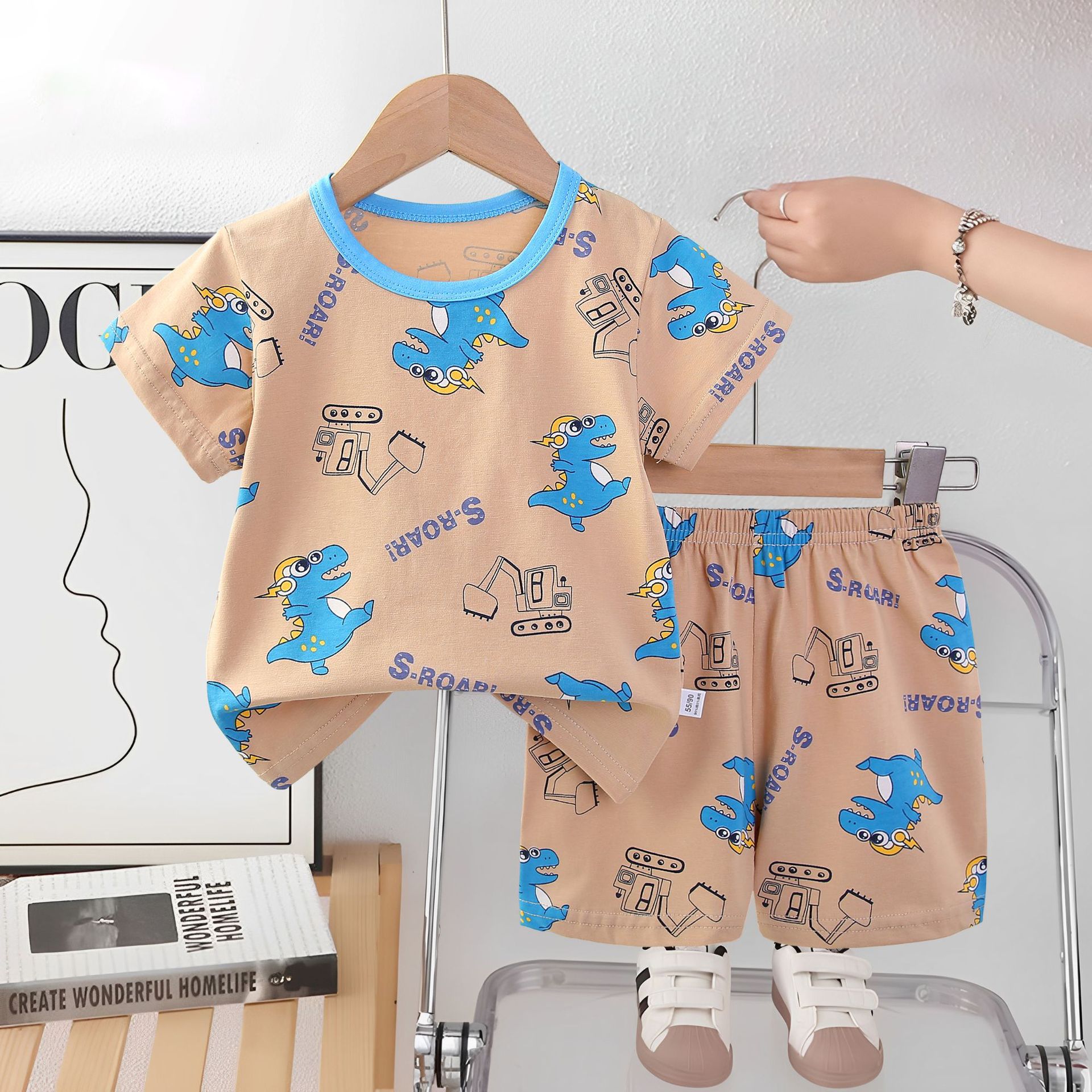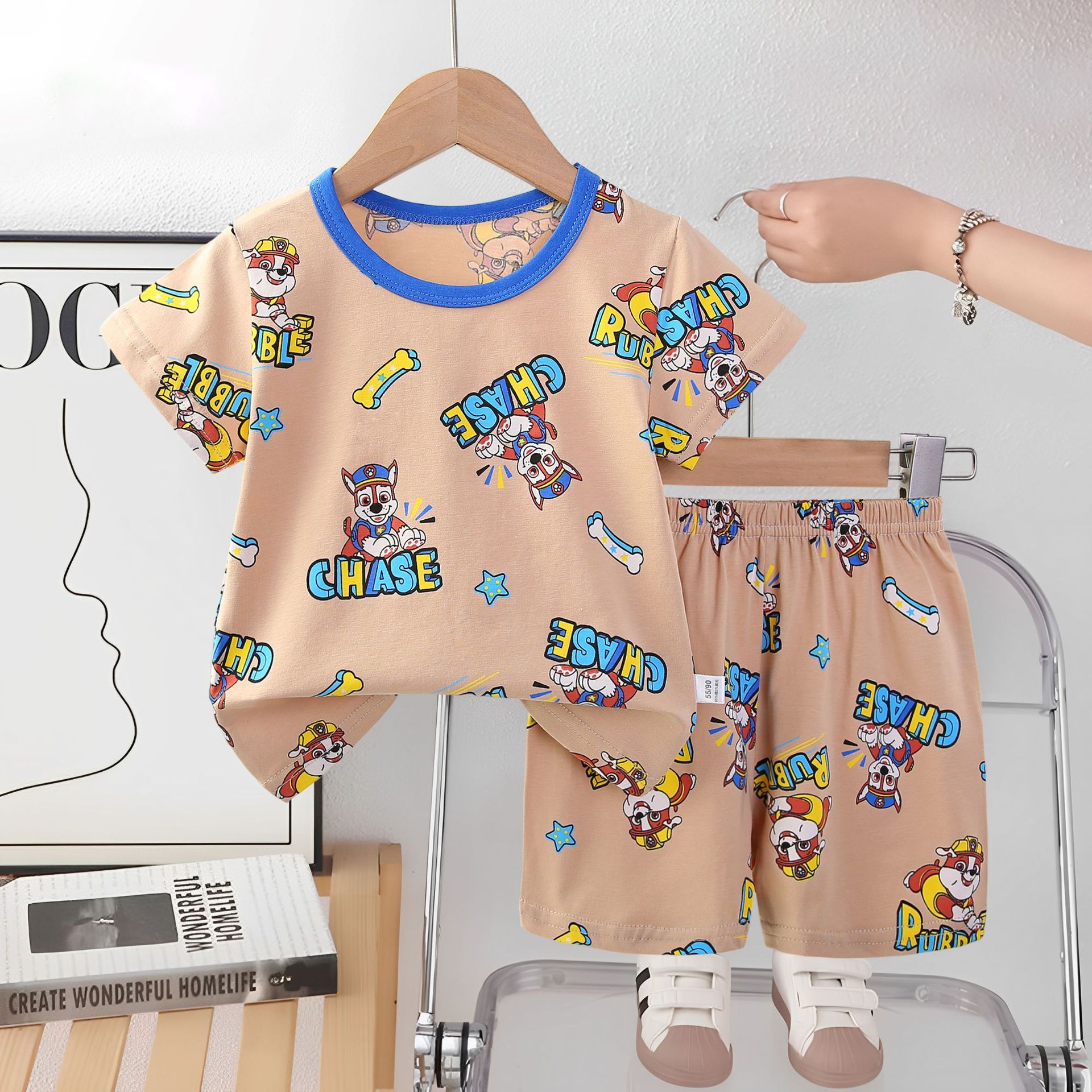 2025 아동복 아동 잠옷 여름 꽃무늬 반팔 반바지 소년 소녀 가정복 세트 공장 직접 공급스토어 가기