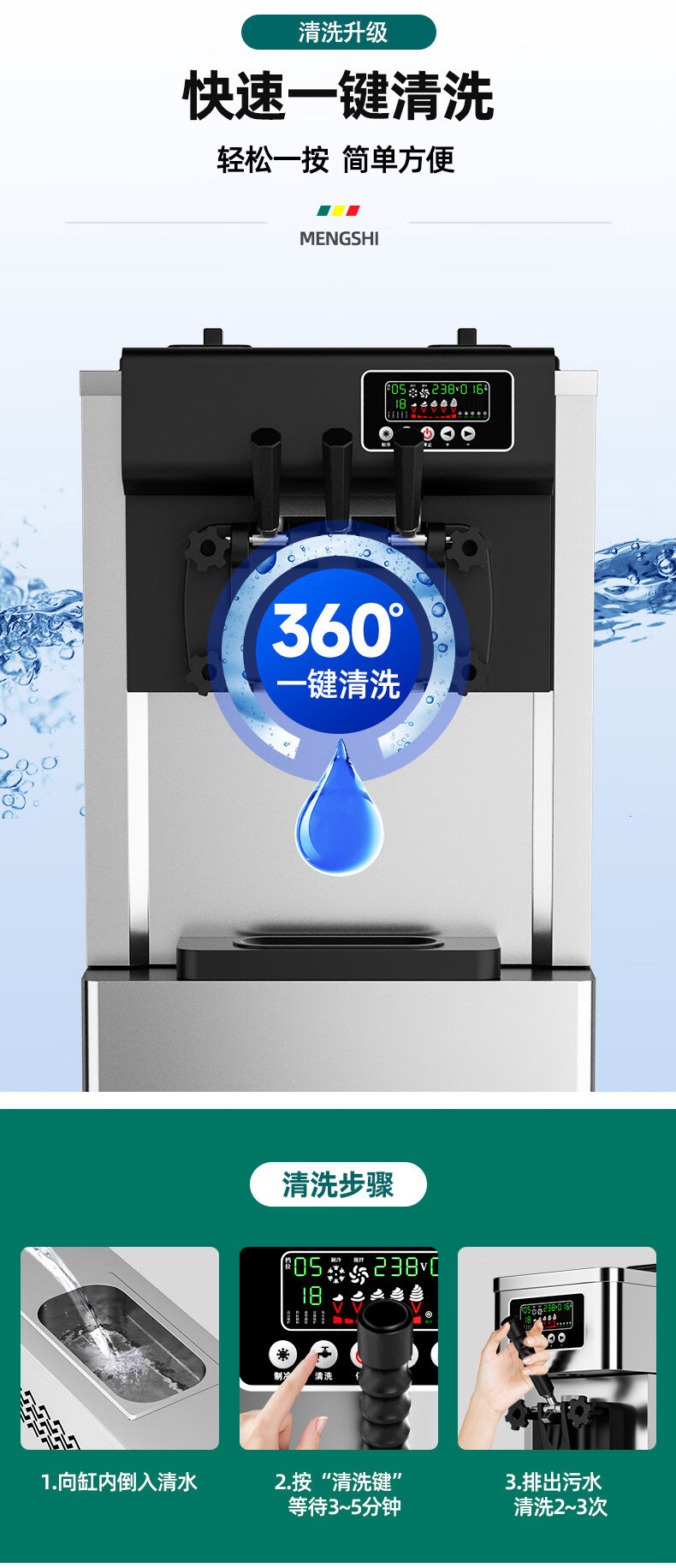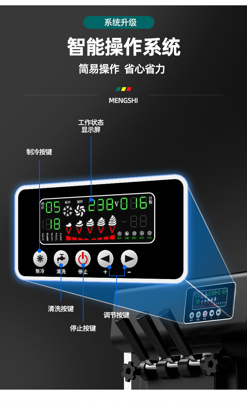 Mengshi 아이스크림 기계 상업용 대용량 아이스크림 기계 완전 자동 수직 3 헤드 콘 아이스크림 소프트 아이스크림 기계스토어 가기