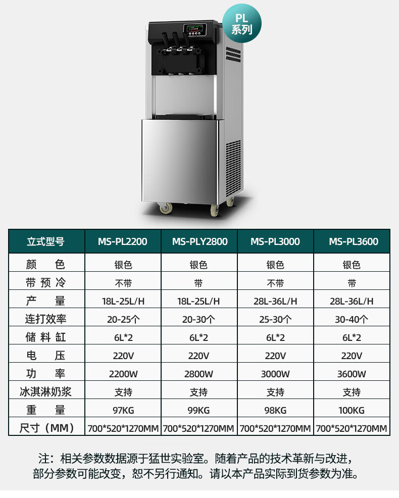 • 수직형 실버 아이스크림 기계 2800(사전 냉각 포함)