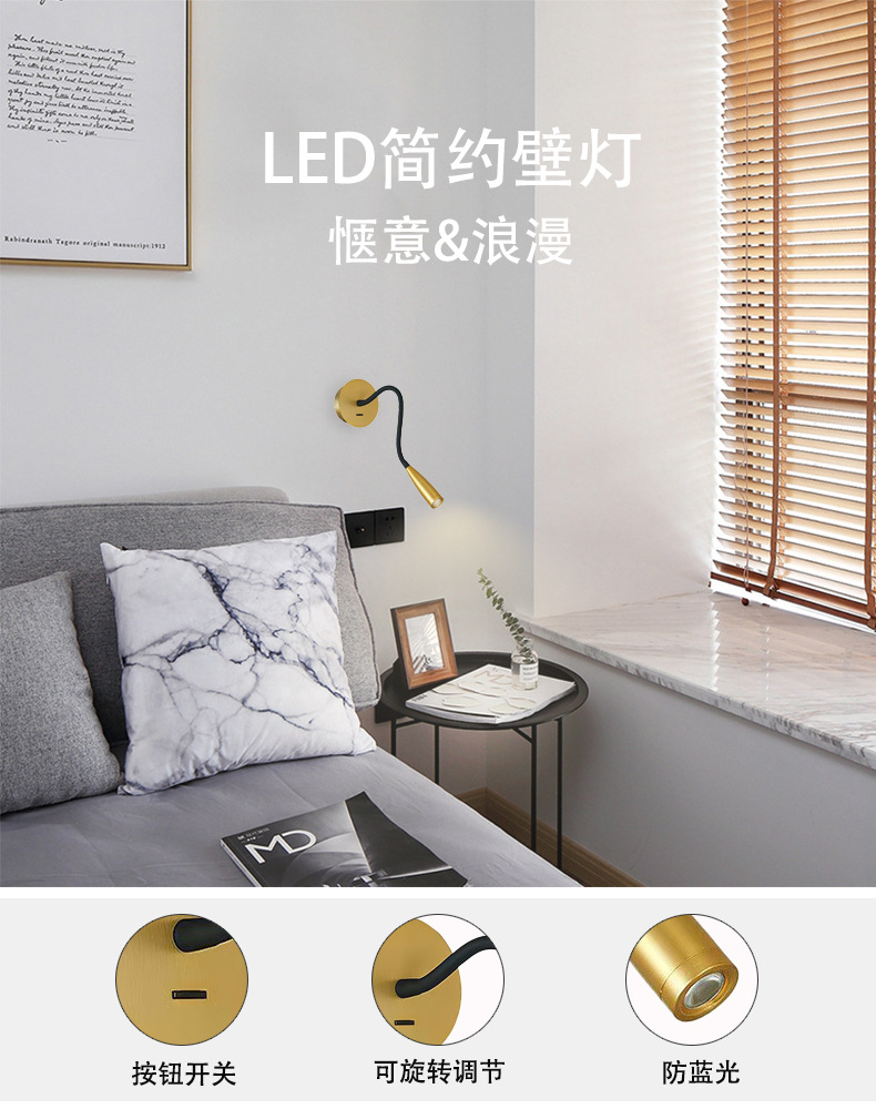 크로스보더 LED 독서 벽등 호텔 표면 장착형 벽등 벽걸이등 침실 침대 옆 거실 벽등 고급형스토어 가기