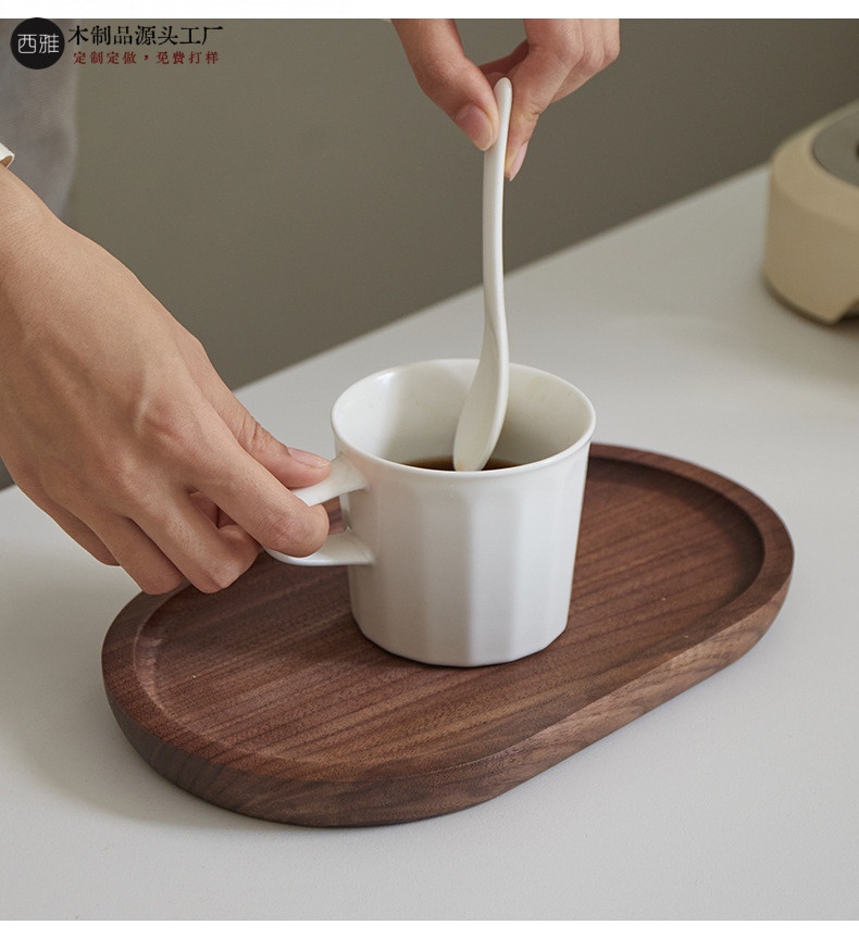일본 타원형 나무 트레이 단단한 나무 직사각형 디너 트레이 검은 호두 애프터눈 티 커피 트레이 절묘한 작은 트레이스토어 가기