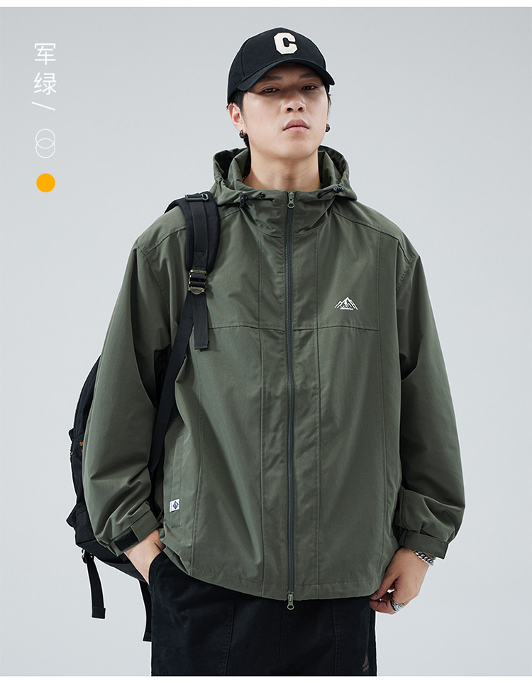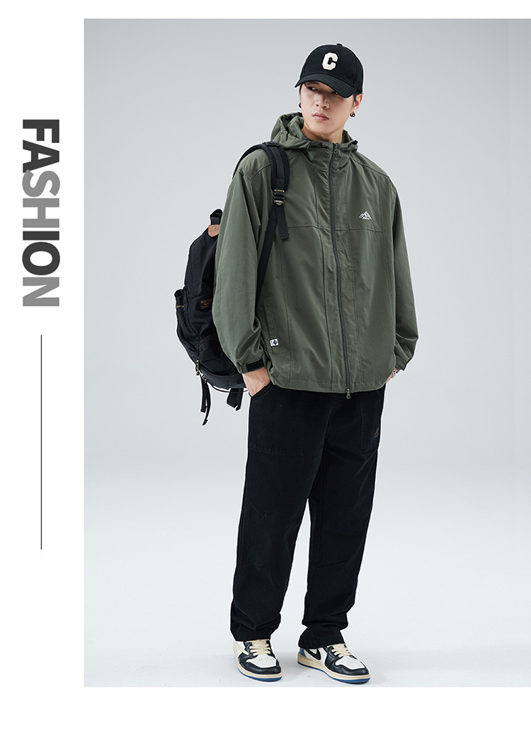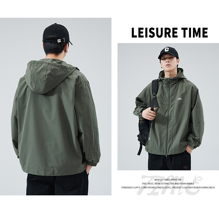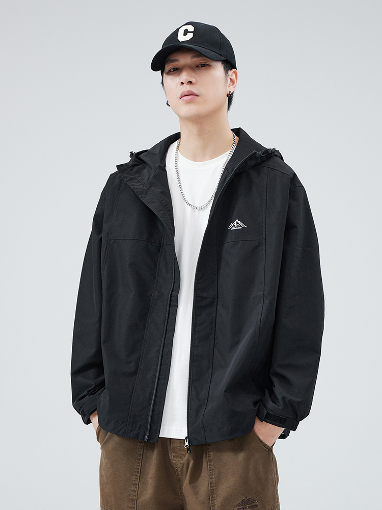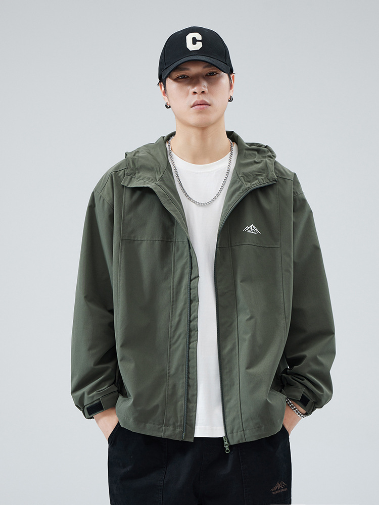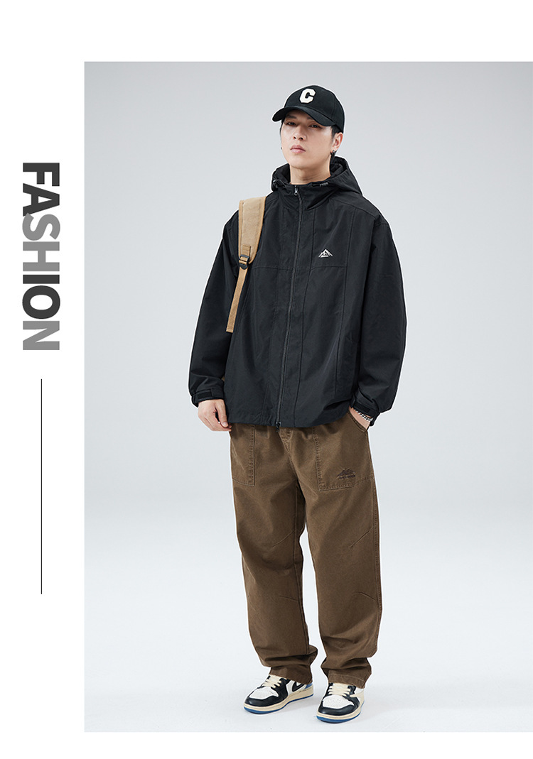 2024 가을 트렌디 브랜드 더블 지퍼 후드 루즈 캐주얼 탑 재킷 남성 야외 방수 재킷