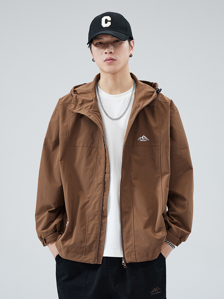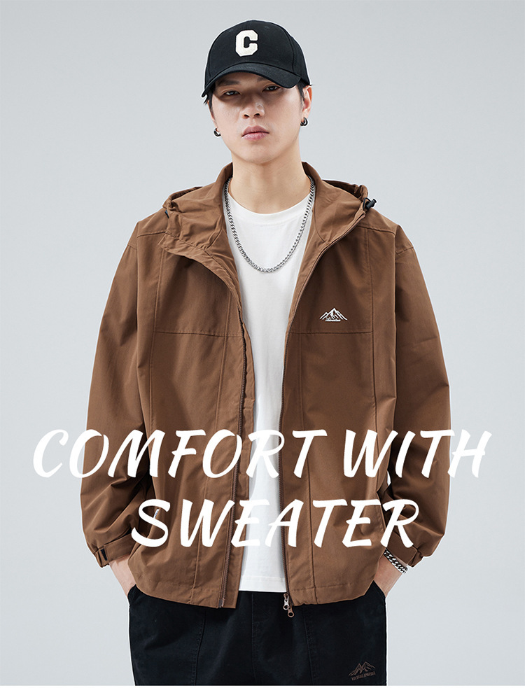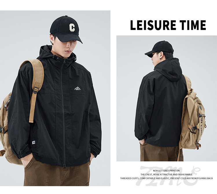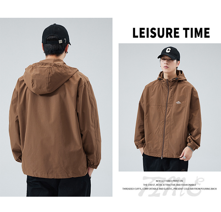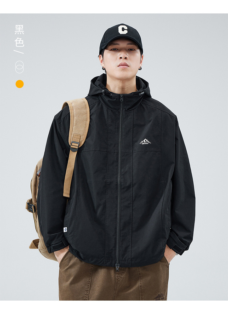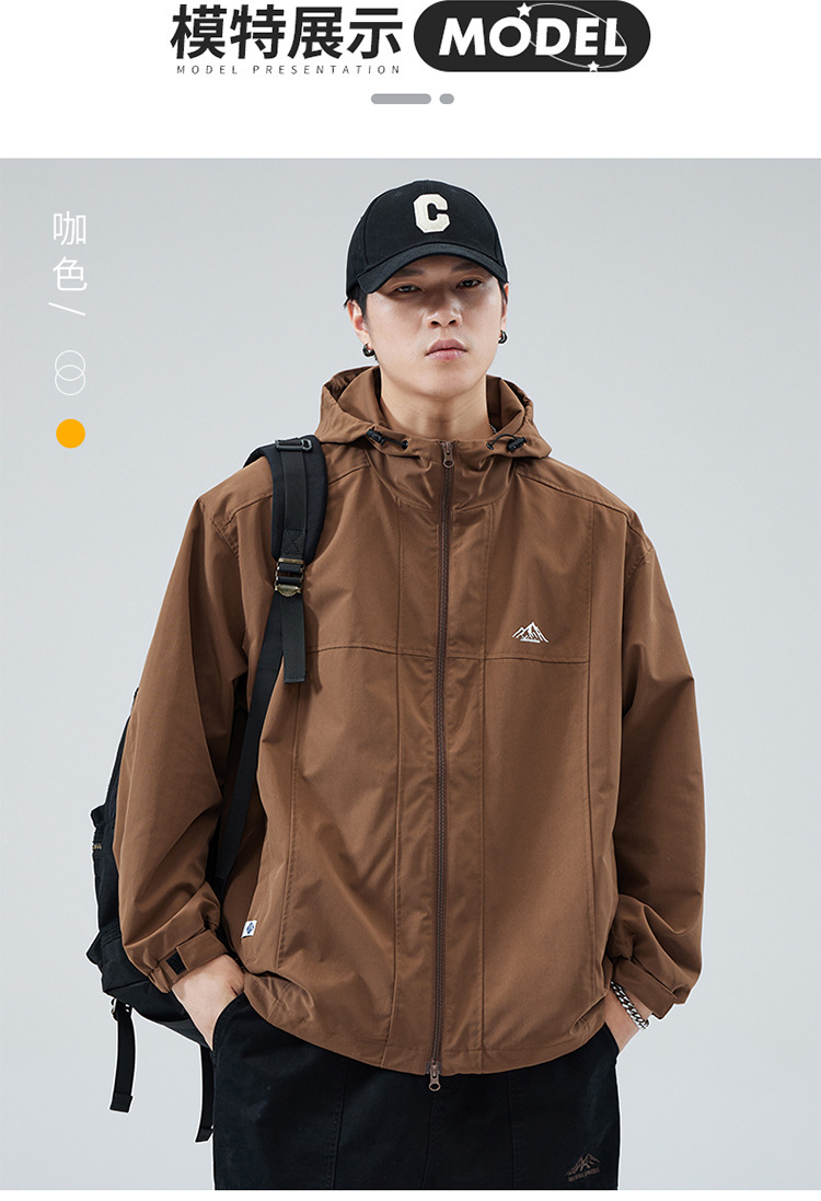 2024 가을 트렌디 브랜드 더블 지퍼 후드 루즈 캐주얼 탑 재킷 남성 야외 방수 재킷