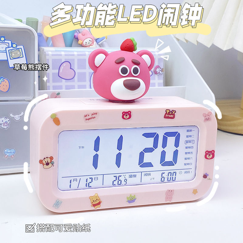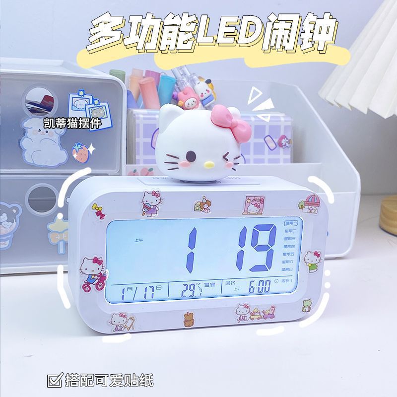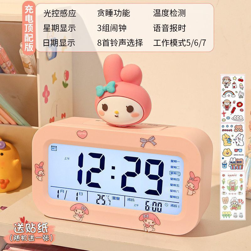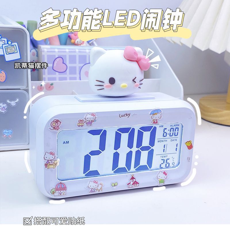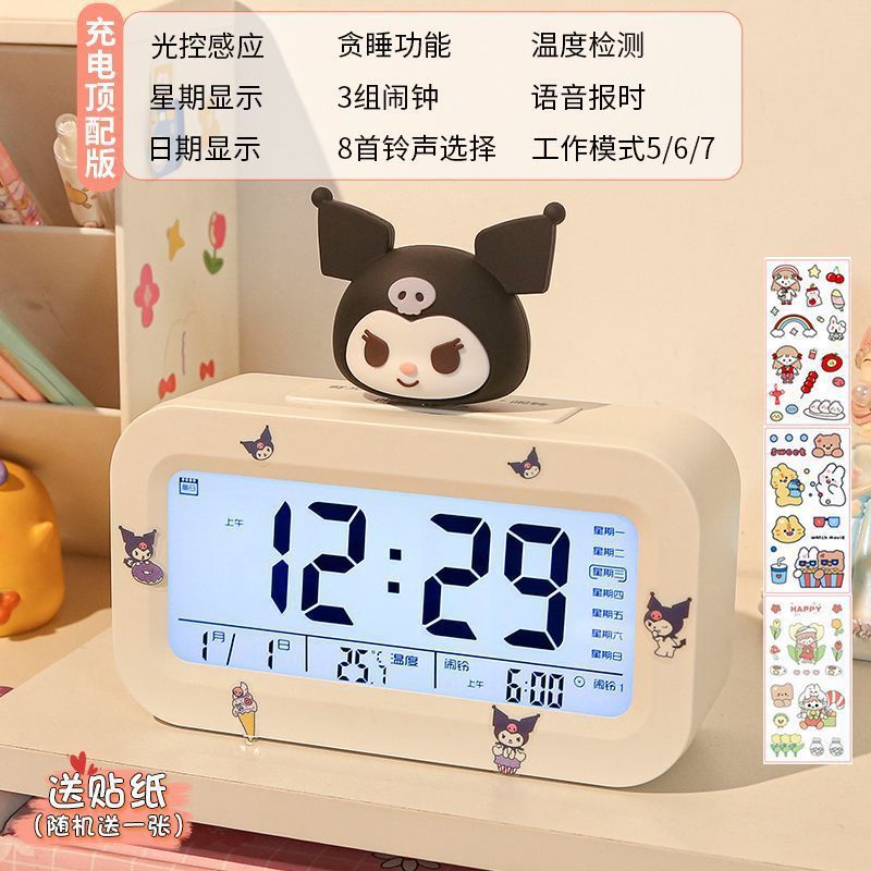 Sanrio 스탠딩 빅 헤드 인형 장식 데스크탑 야간 조명 전자 알람 시계 시간 학생 야간 조명 전자 알람 시계
