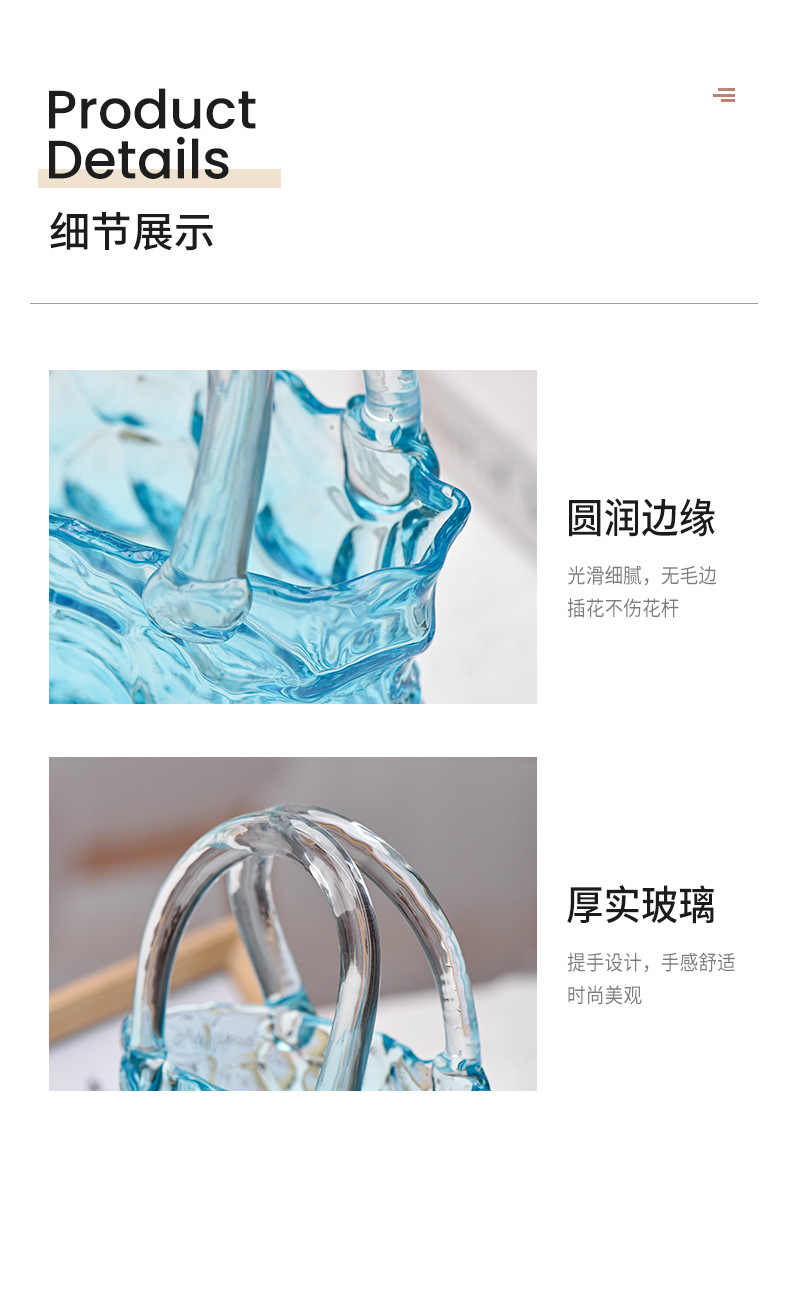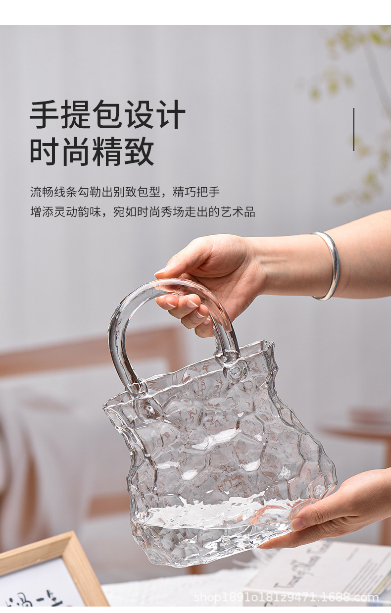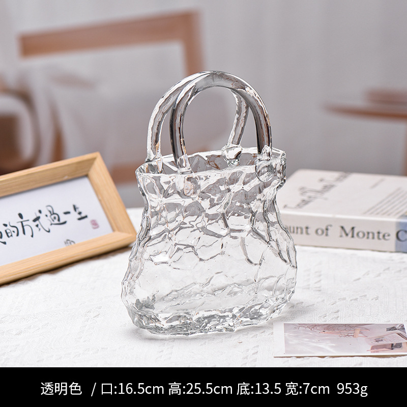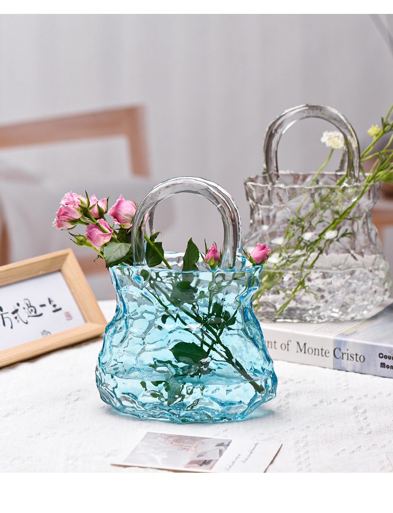 현대적인 가벼운 럭셔리 창조적 인 핸드백 유리 꽃병 홈 거실 고급 수경 꽃꽂이 고급 장식품스토어 가기