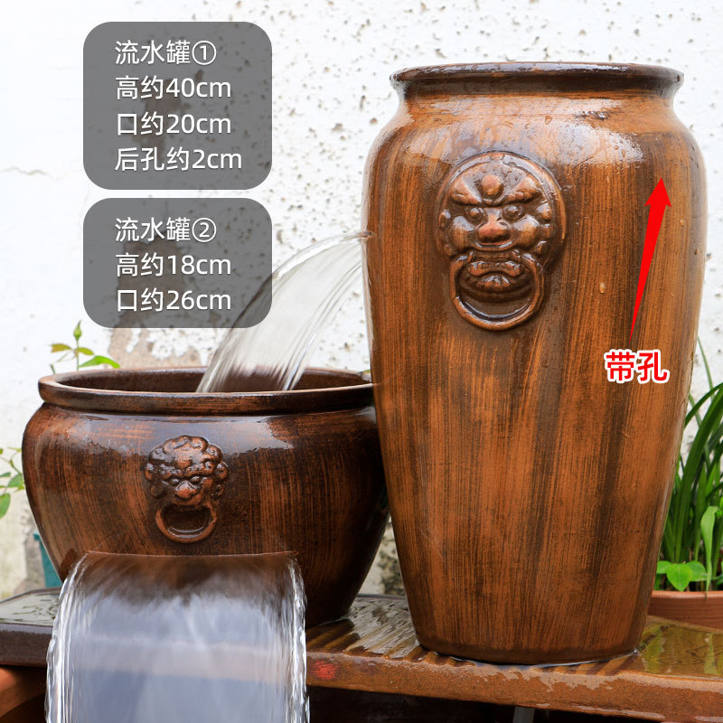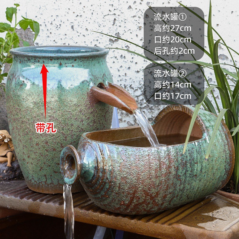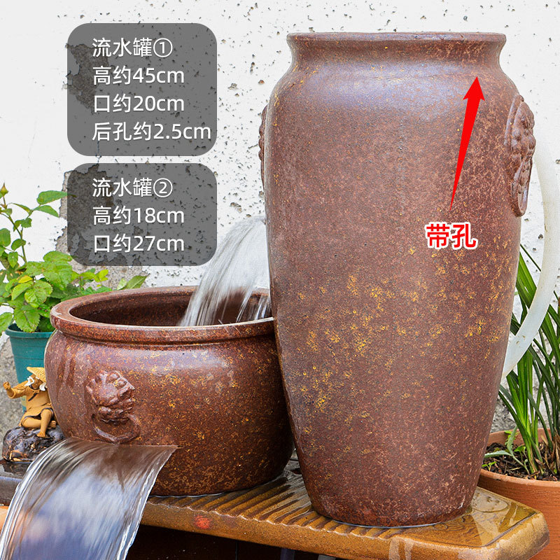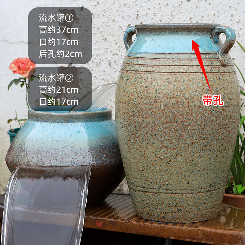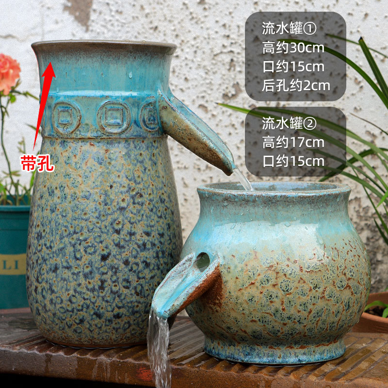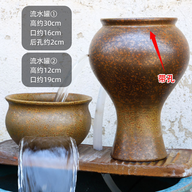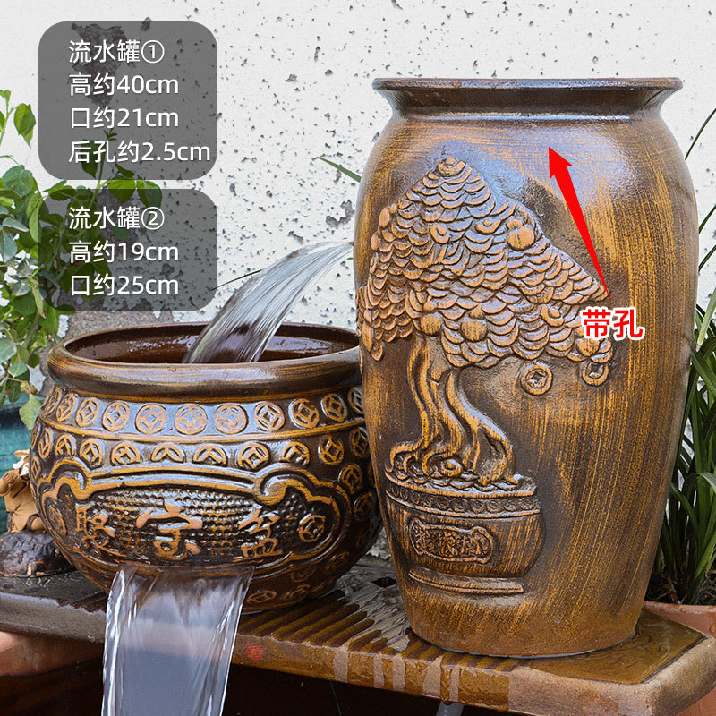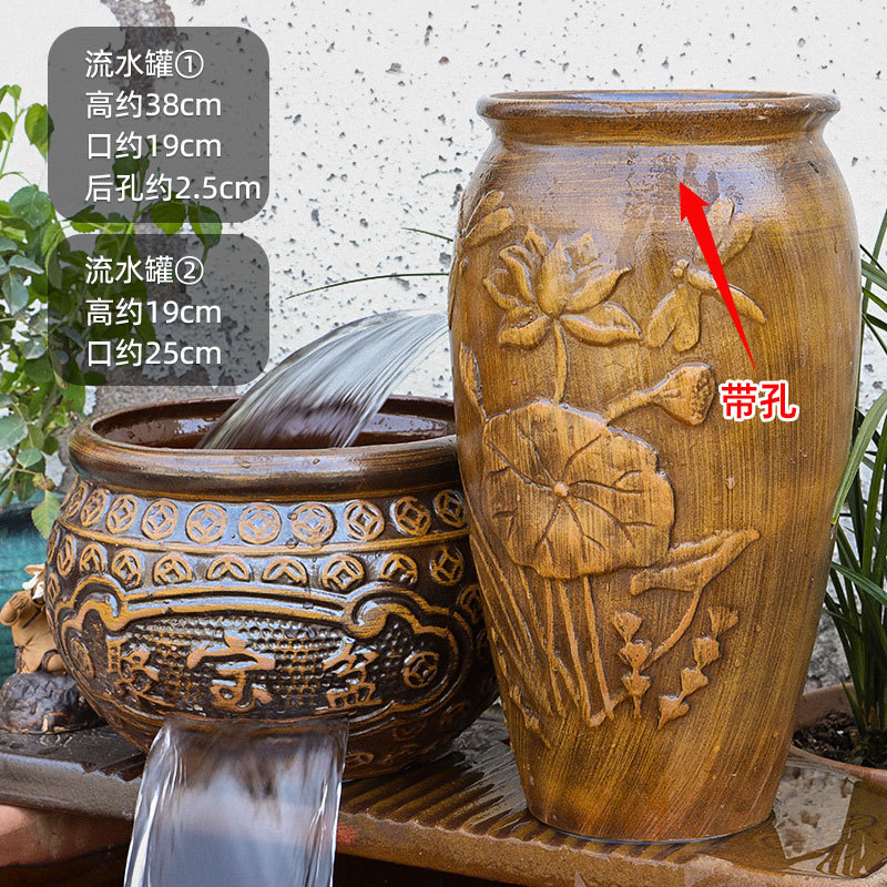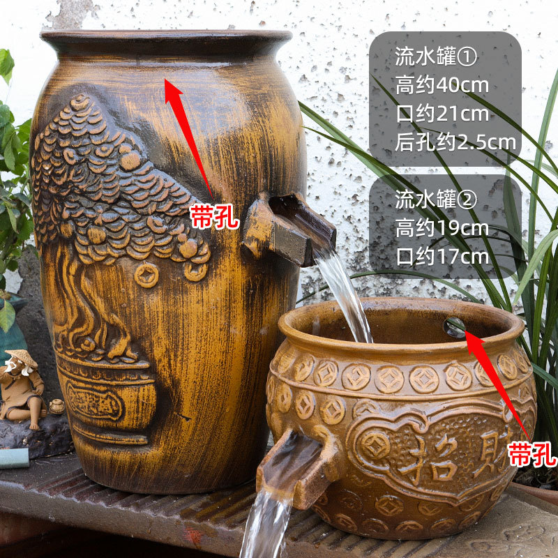 물고기 연못 조경 순환 물고기 양식 고대 폭포 복고풍 필터 장식품 물고기 탱크 흐르는 물 도자기 냄비 세트스토어 가기