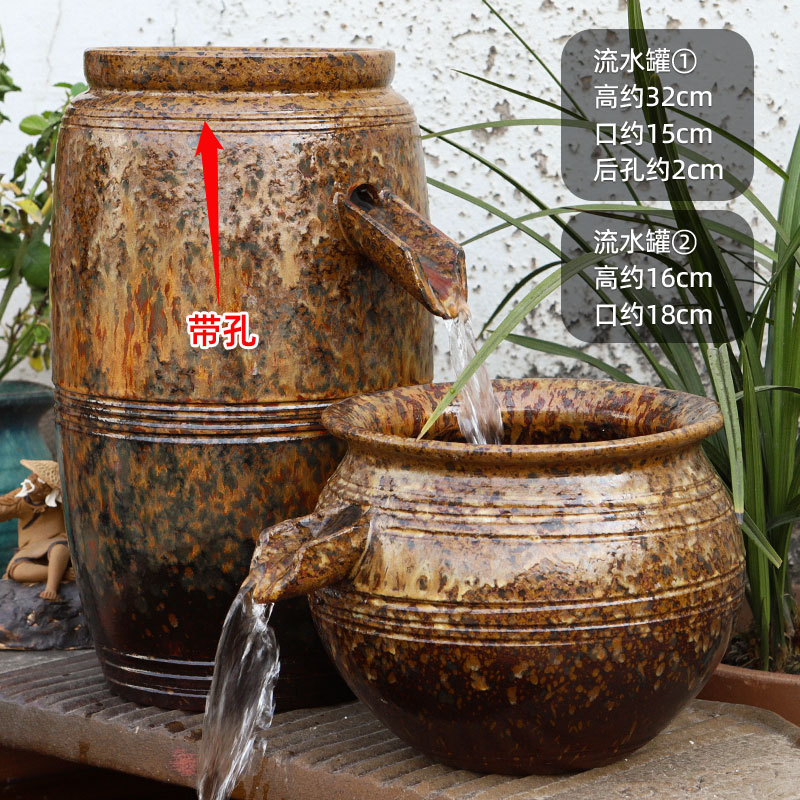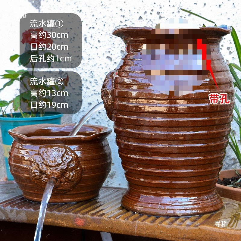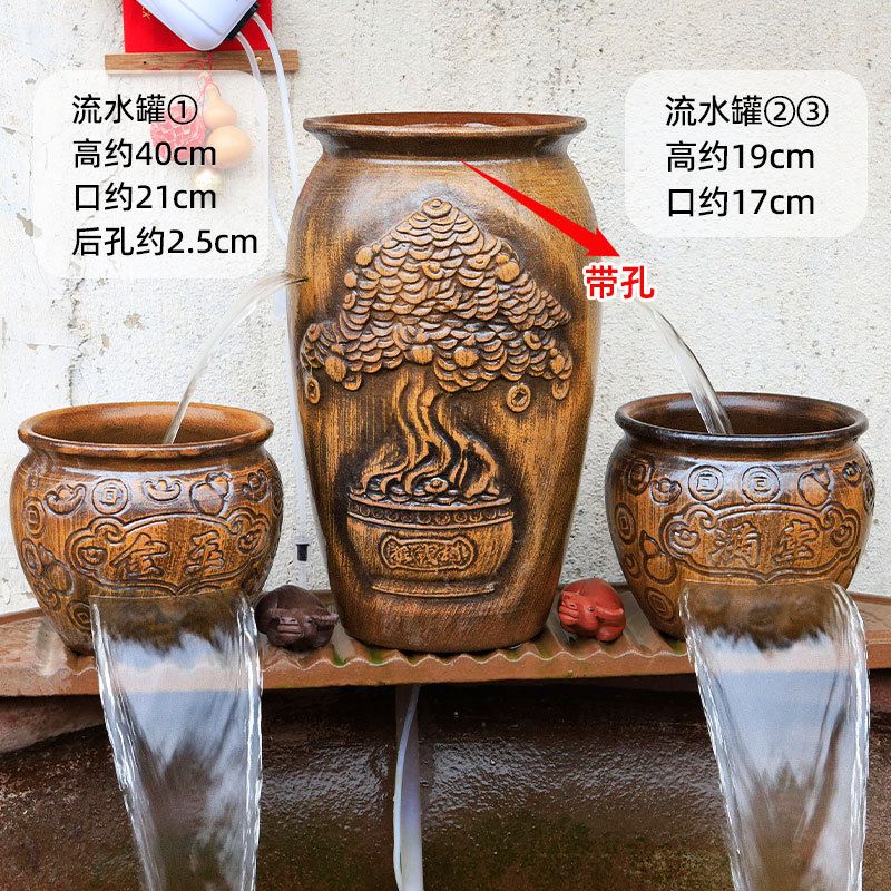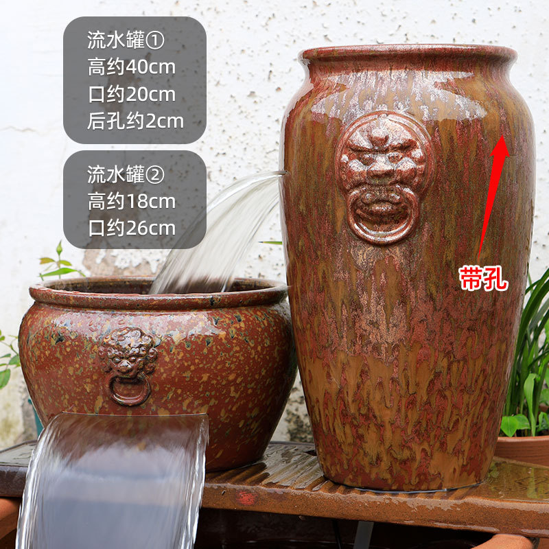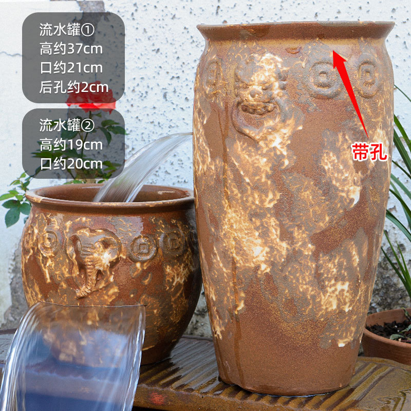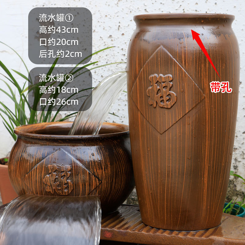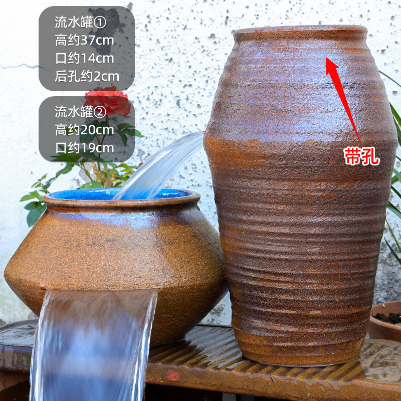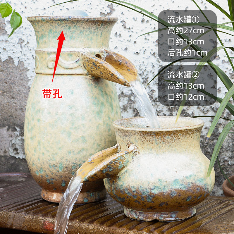 물고기 연못 조경 순환 물고기 양식 고대 폭포 복고풍 필터 장식품 물고기 탱크 흐르는 물 도자기 냄비 세트스토어 가기