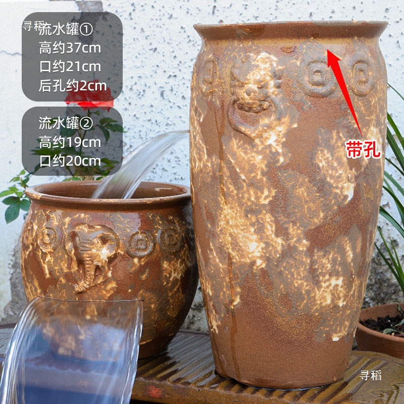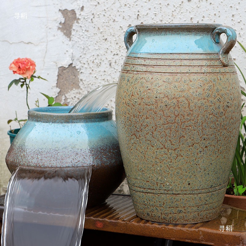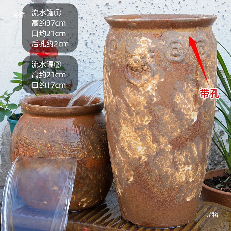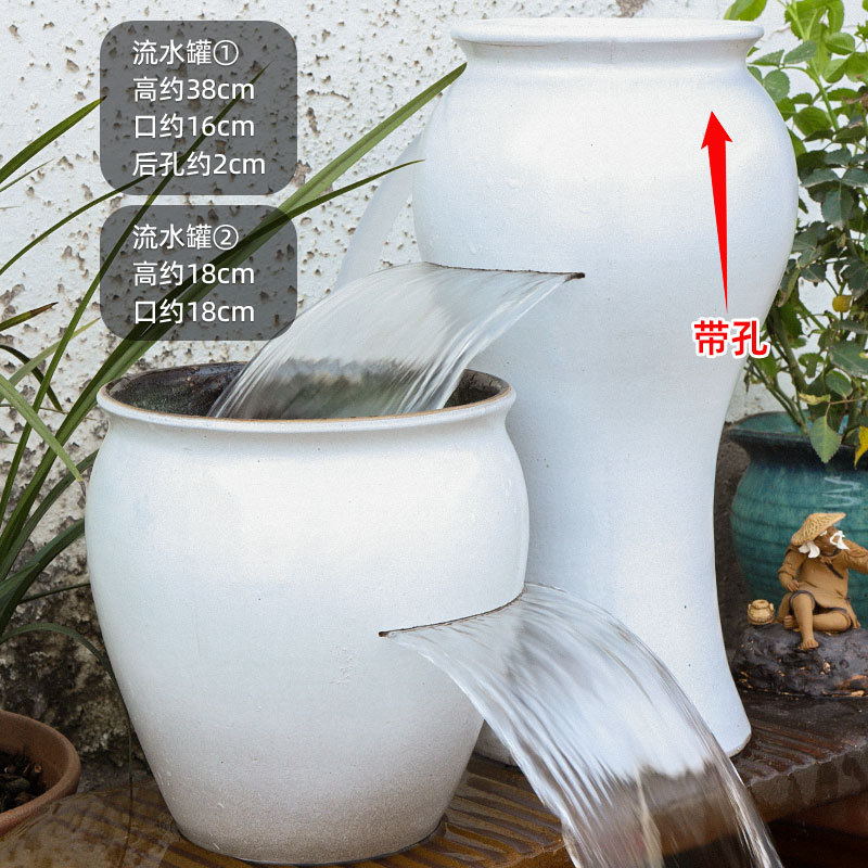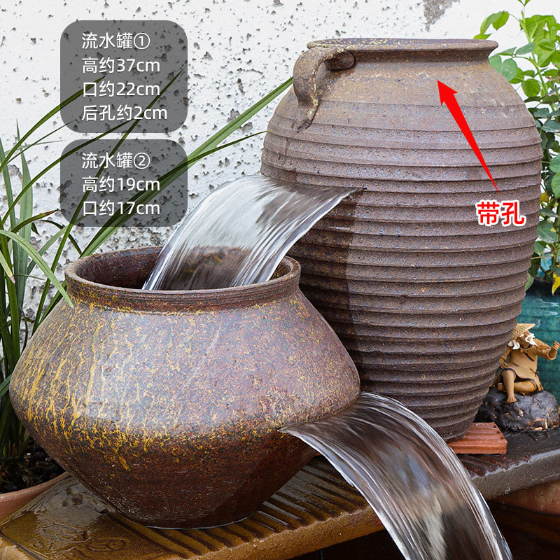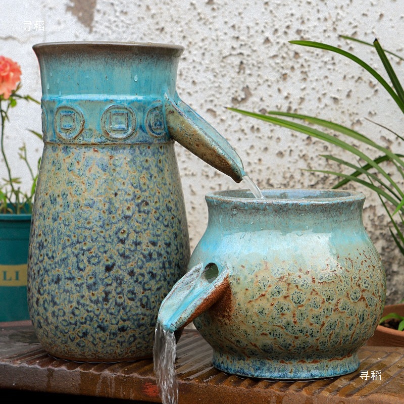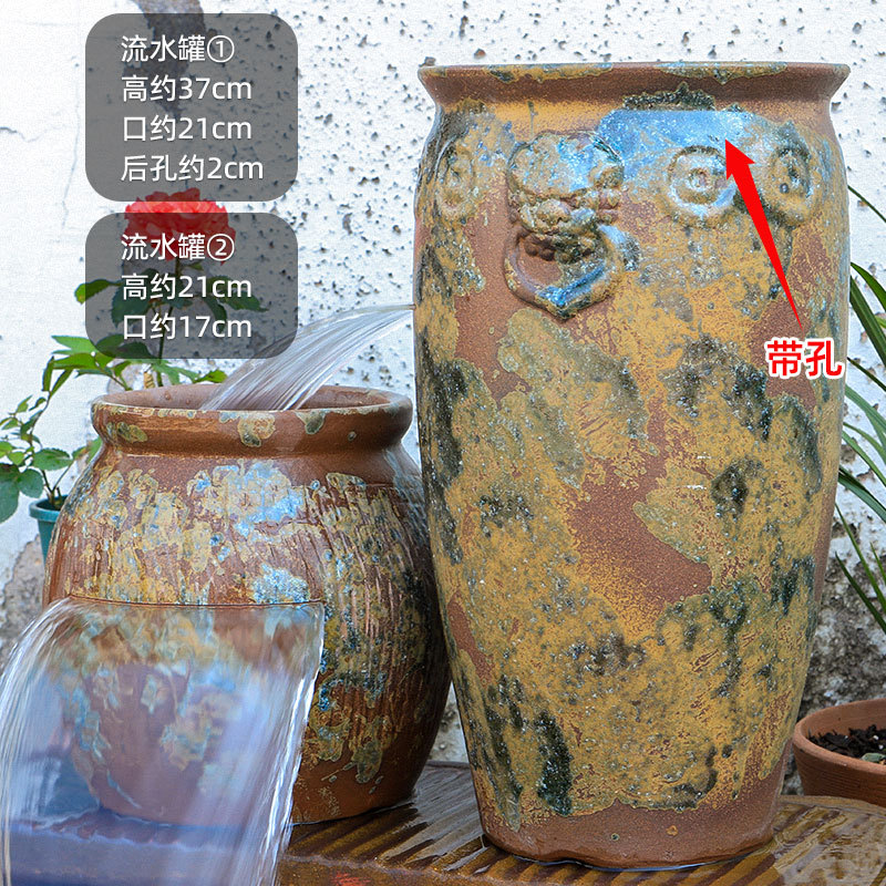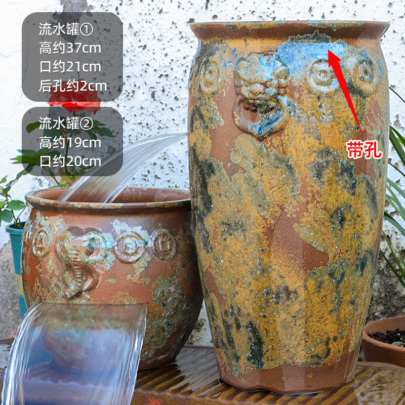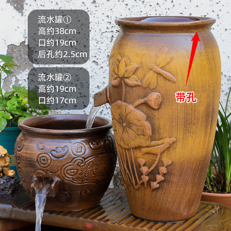 물고기 연못 조경 순환 물고기 양식 고대 폭포 복고풍 필터 장식품 물고기 탱크 흐르는 물 도자기 냄비 세트스토어 가기