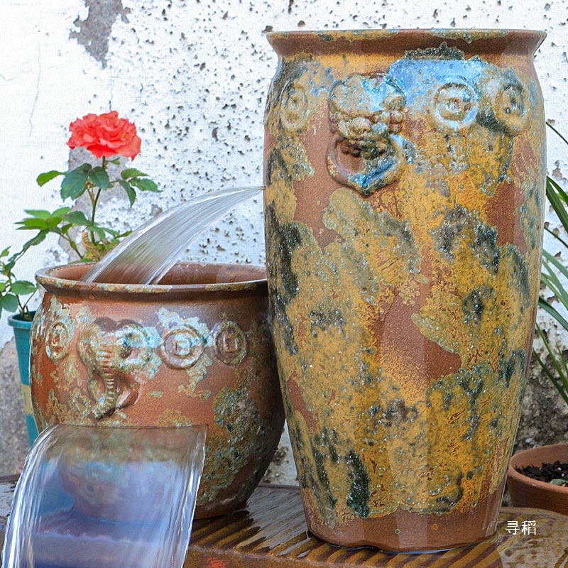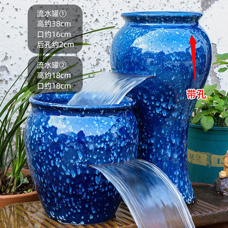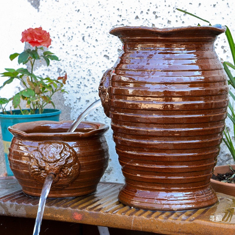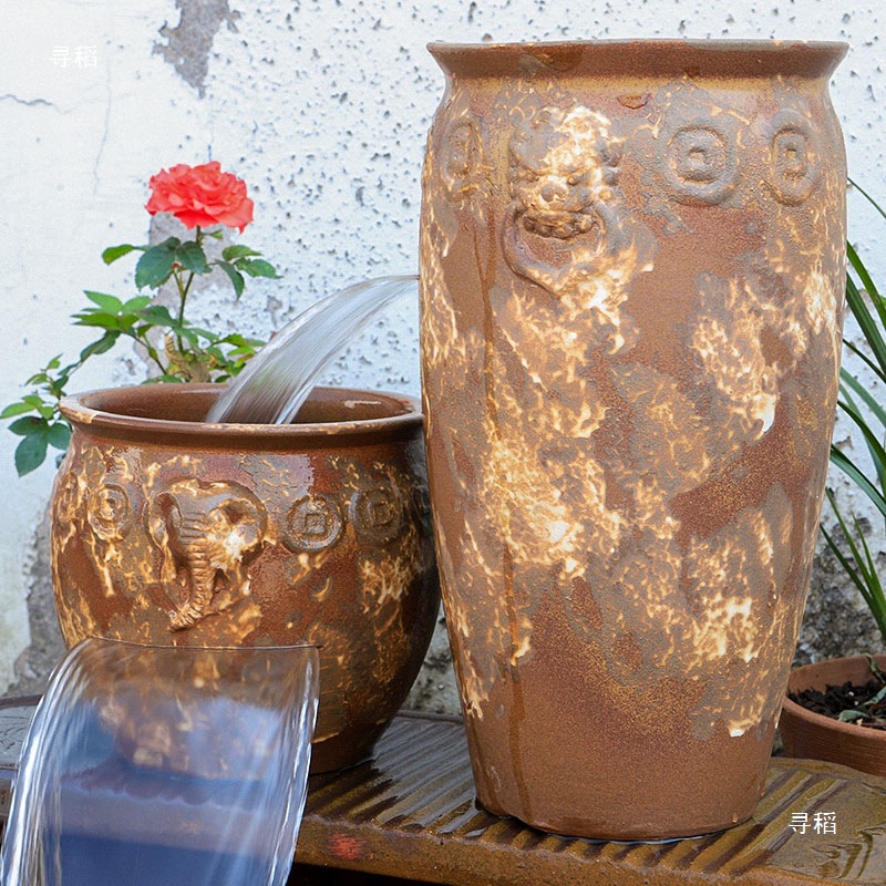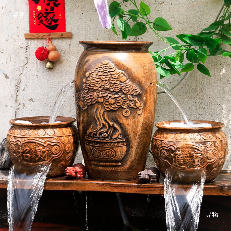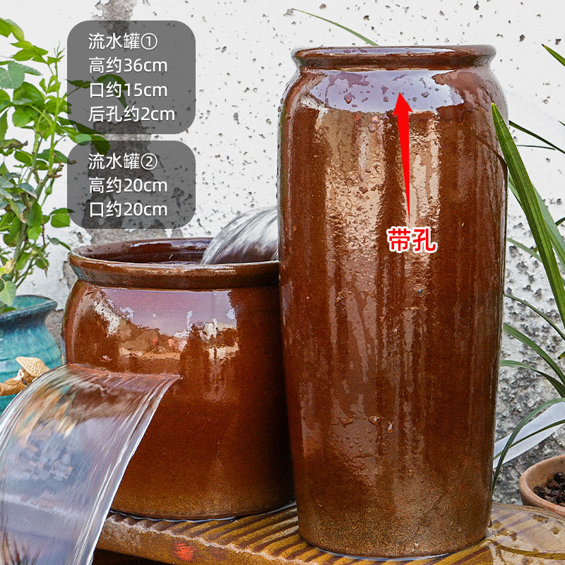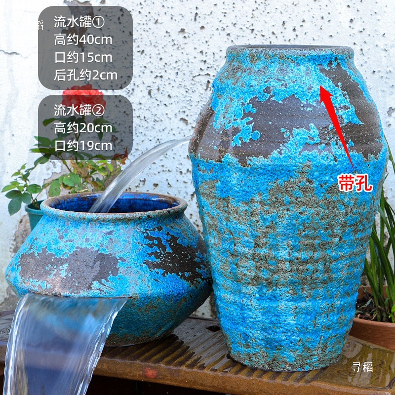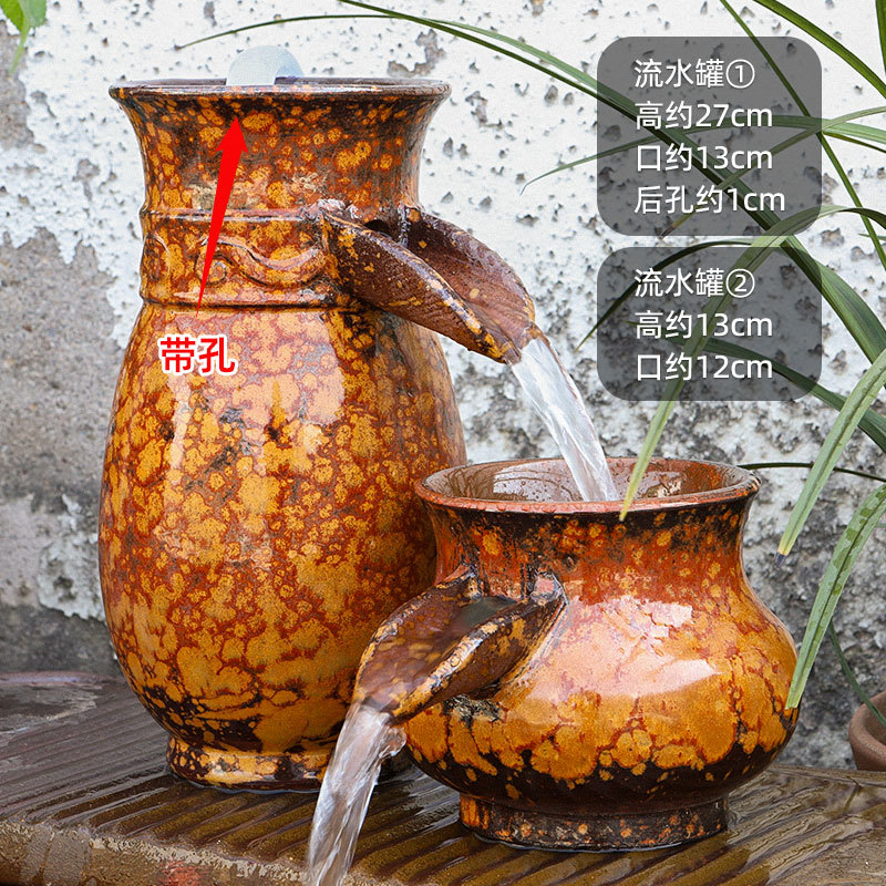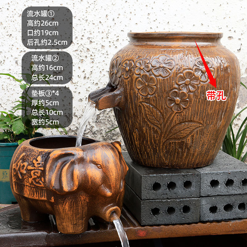 물고기 연못 조경 순환 물고기 양식 고대 폭포 복고풍 필터 장식품 물고기 탱크 흐르는 물 도자기 냄비 세트스토어 가기