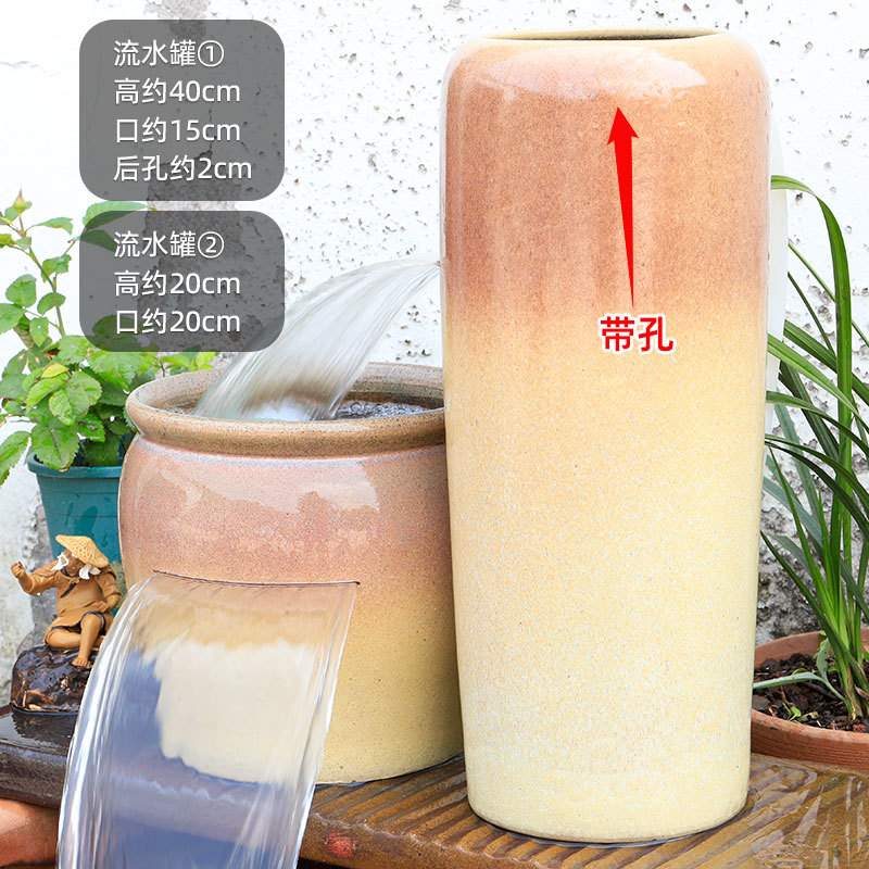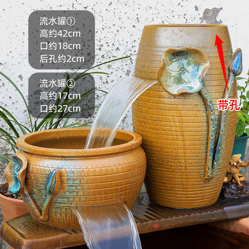물고기 연못 조경 순환 물고기 양식 고대 폭포 복고풍 필터 장식품 물고기 탱크 흐르는 물 도자기 냄비 세트