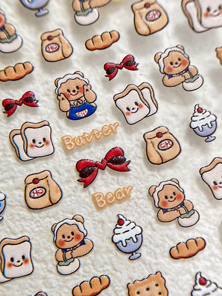 YITU 벌 그림 양각 음식인 곰 네일 아트 스티커 귀여운 만화 곰 비스킷 장식 스티커 YT4399스토어 가기