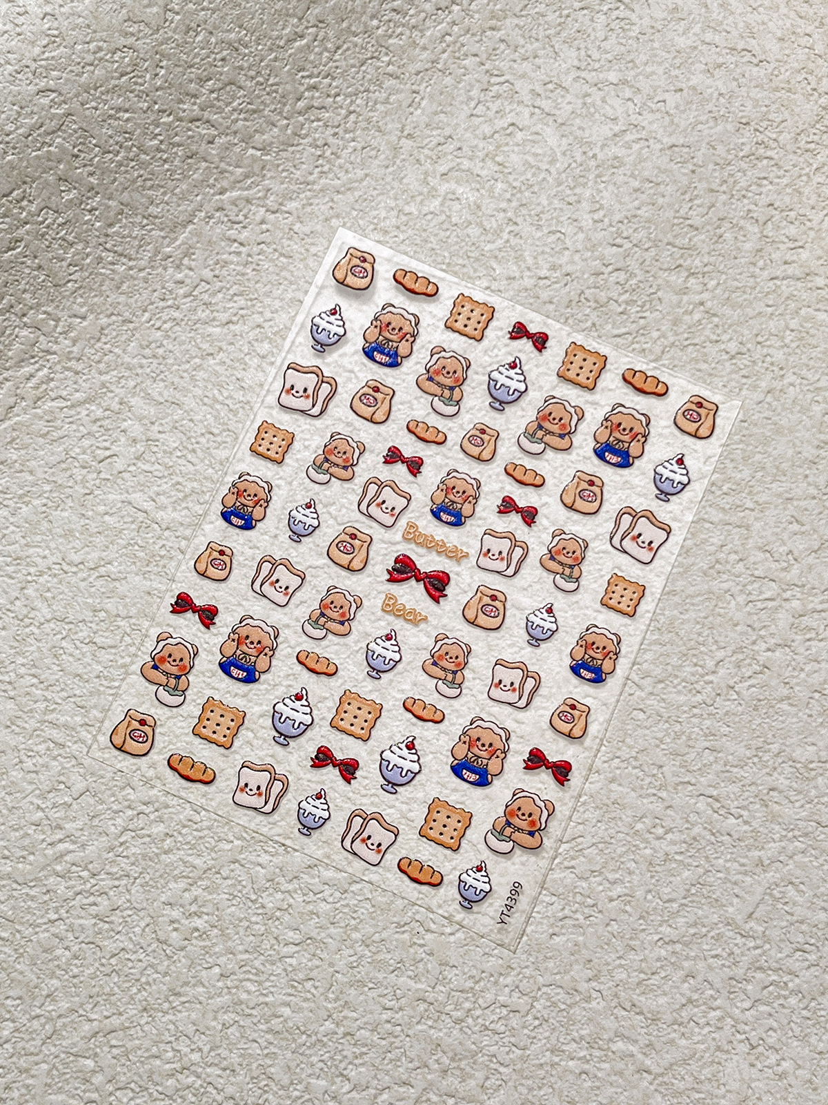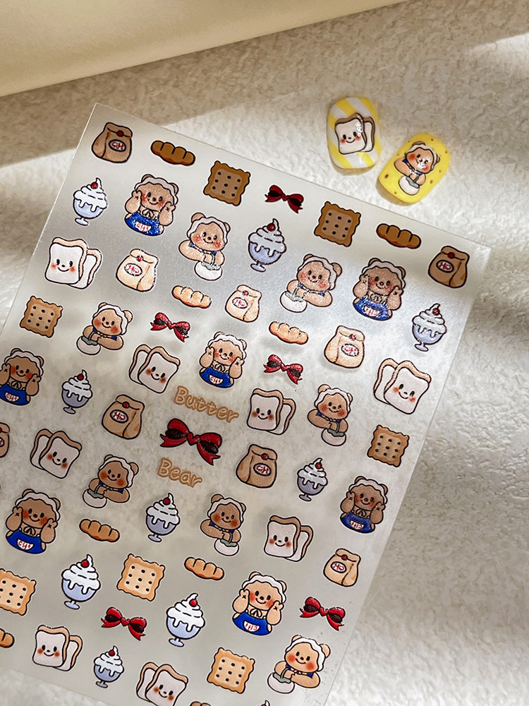 YITU 벌 그림 양각 음식인 곰 네일 아트 스티커 귀여운 만화 곰 비스킷 장식 스티커 YT4399