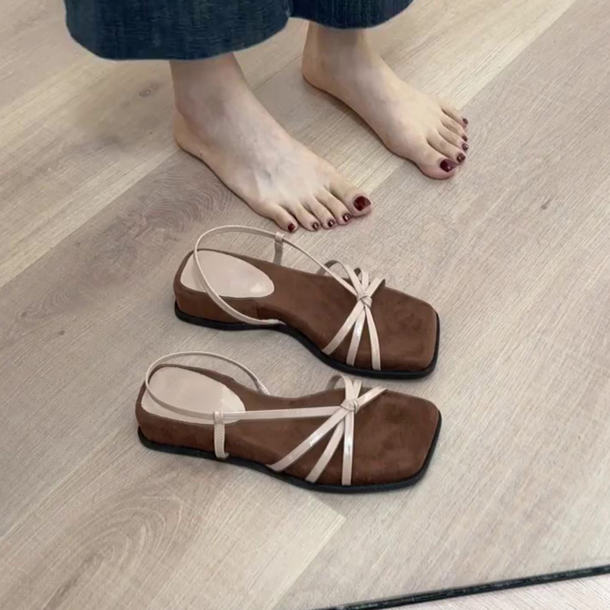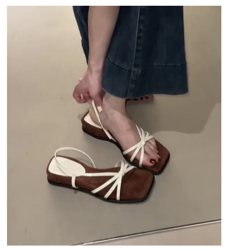 스커트와 오픈토가 있는 여성용 스퀘어토 웨지힐 샌들, 활용도가 높은 두꺼운 밑창의 로마슈즈스토어 가기