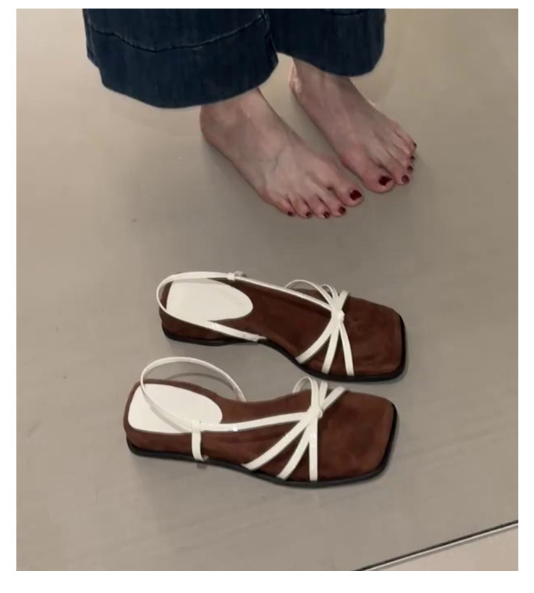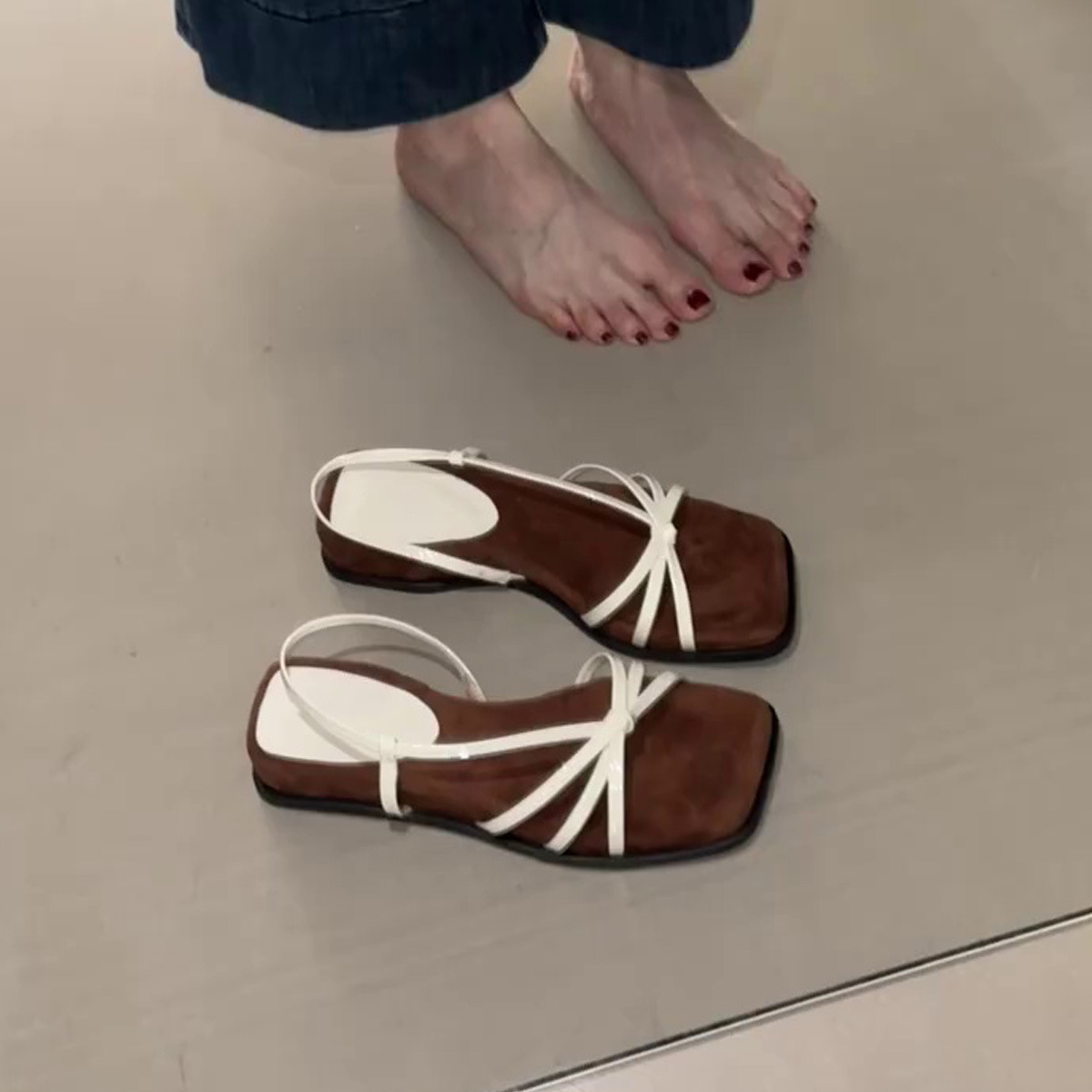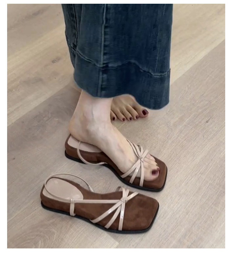 스커트와 오픈토가 있는 여성용 스퀘어토 웨지힐 샌들, 활용도가 높은 두꺼운 밑창의 로마슈즈