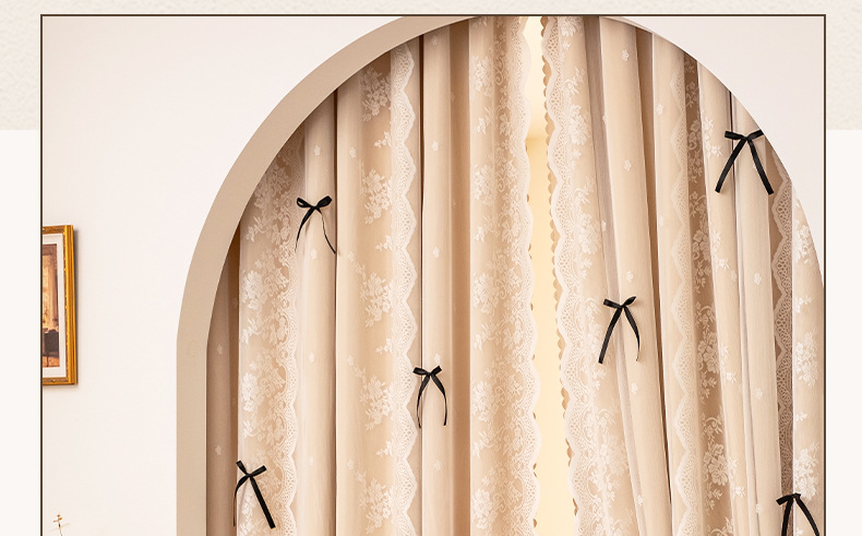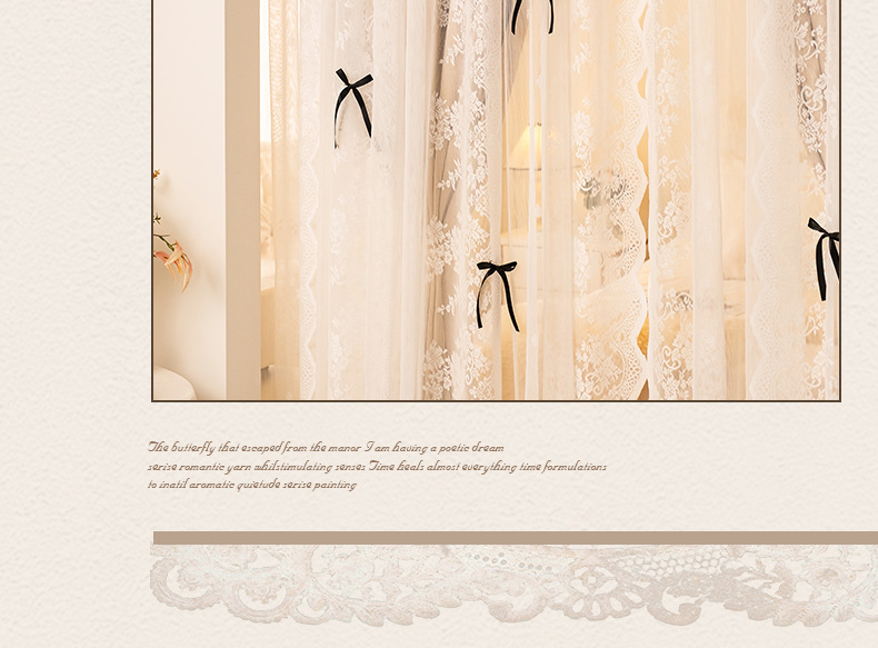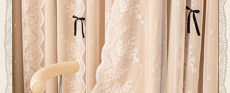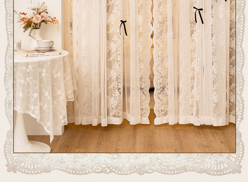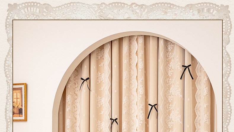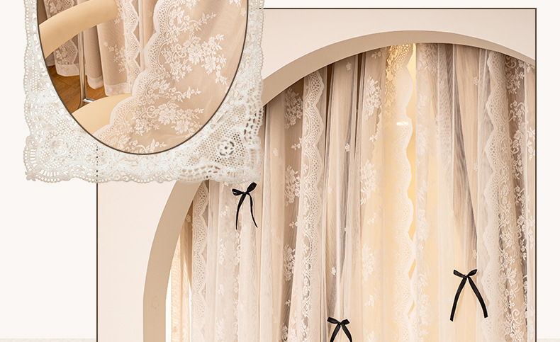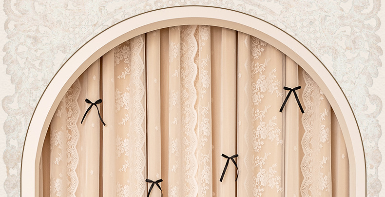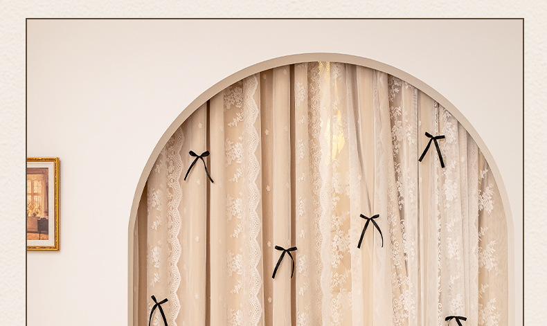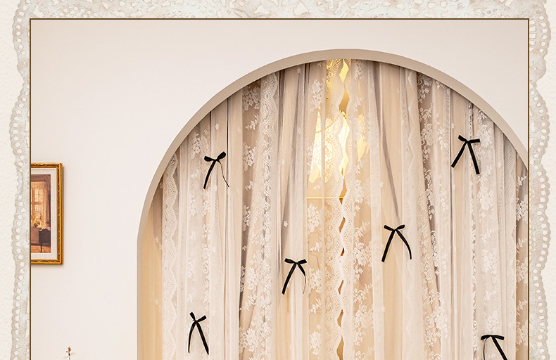 아치형 문 프렌치 크림 레이스 도어 커튼 파티션 커튼 더블 레이어 빛 차단 커튼 공주 스타일 침실 거실 하이 엔드스토어 가기