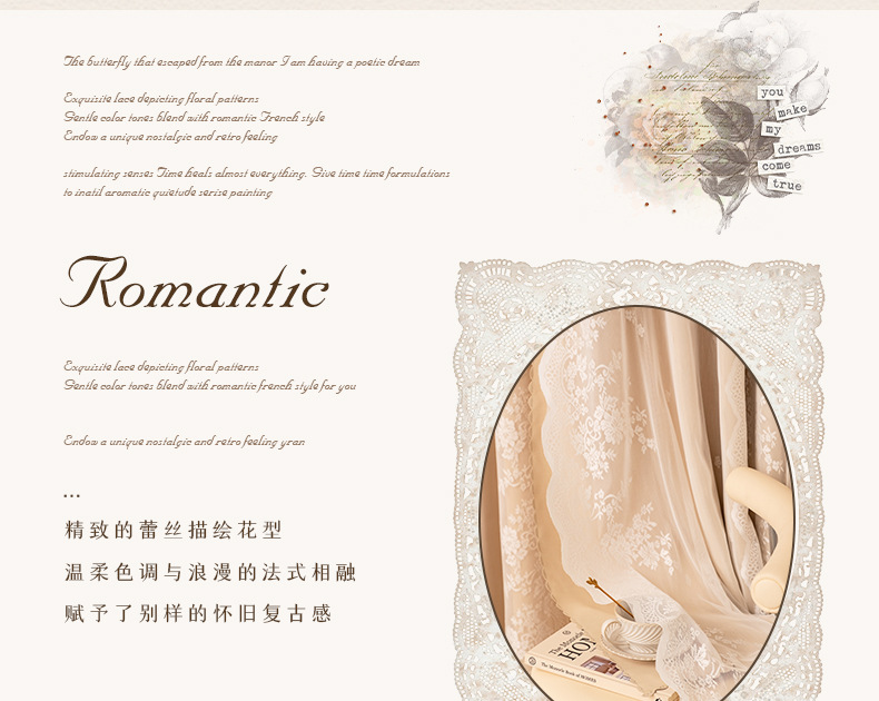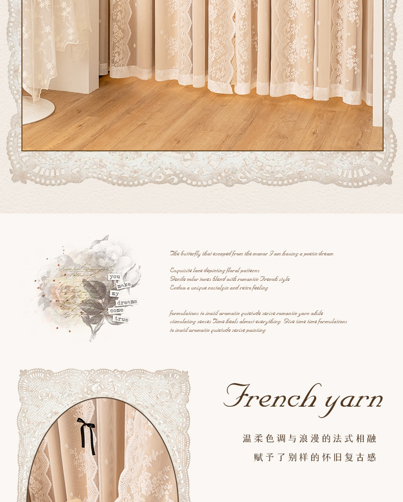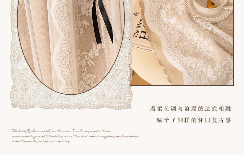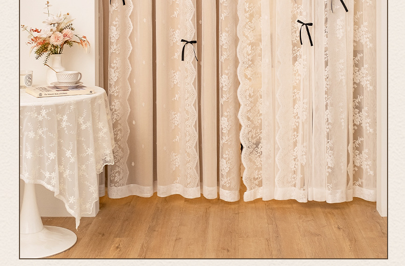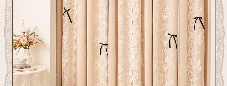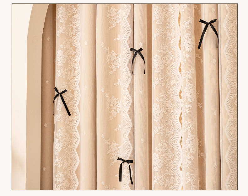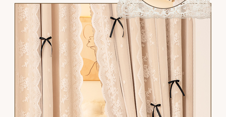 아치형 문 프렌치 크림 레이스 도어 커튼 파티션 커튼 더블 레이어 빛 차단 커튼 공주 스타일 침실 거실 하이 엔드스토어 가기