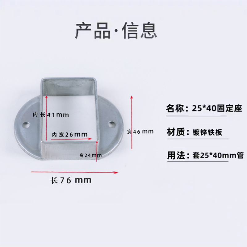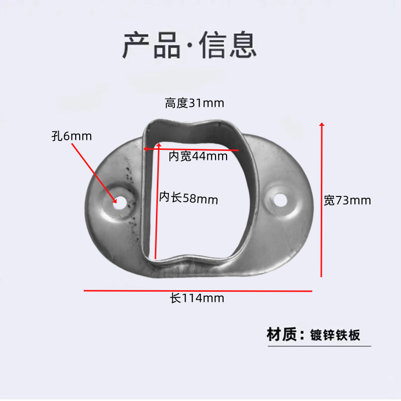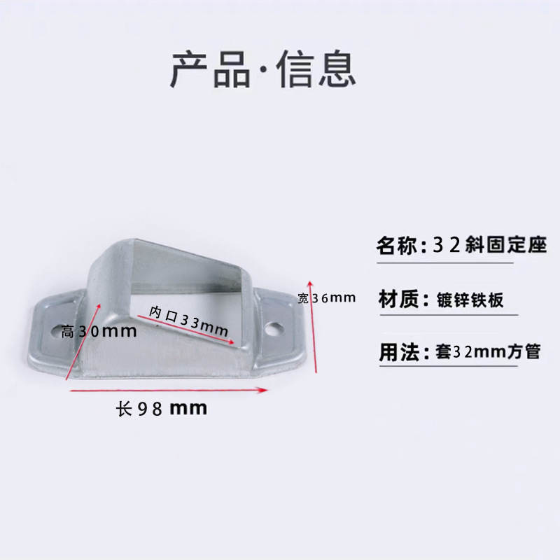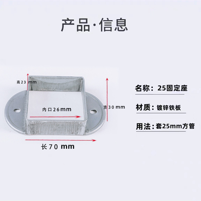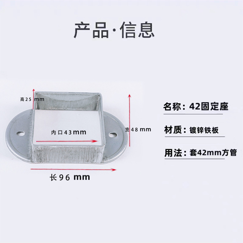 난간 액세서리 고정 시트 아연 강철 기둥 직선 시트 경사 시트 계단 난간 사각 튜브 커넥터 스트레치 버클 베이스