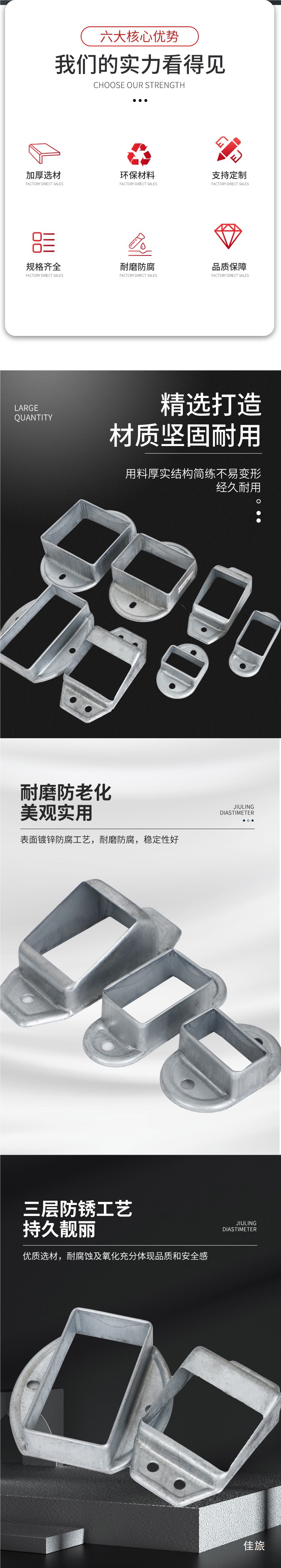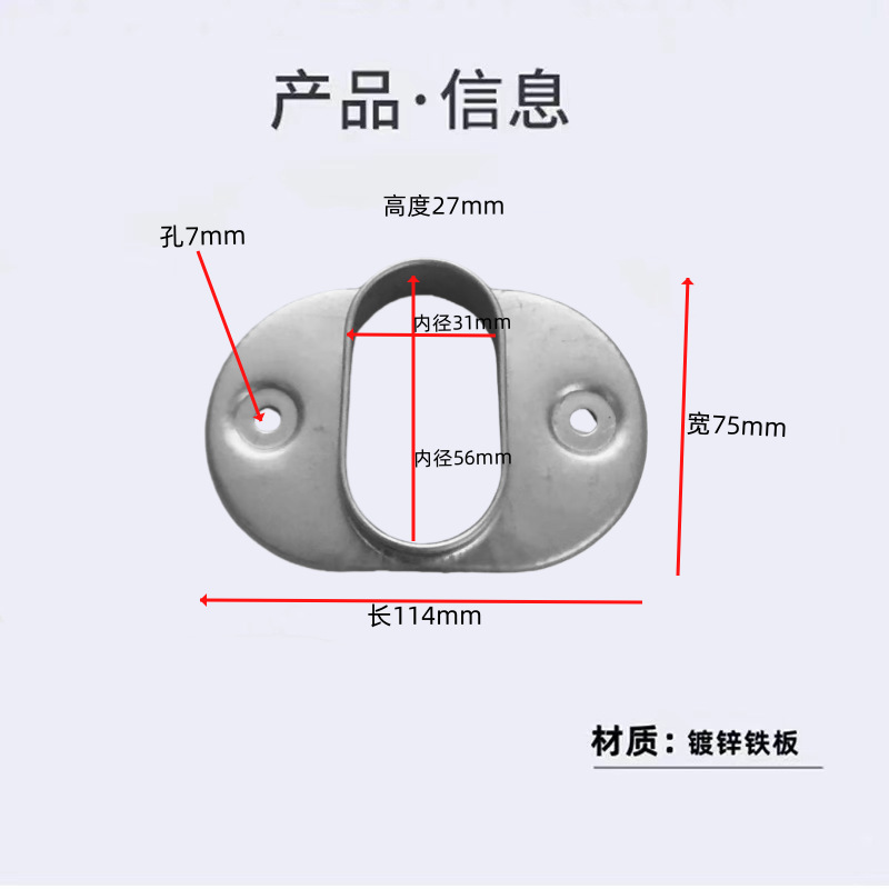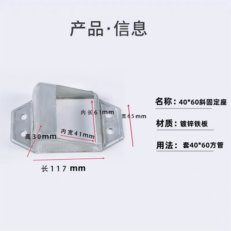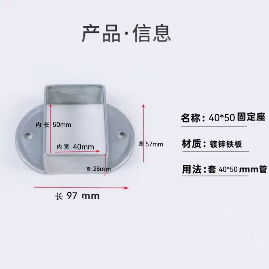 난간 액세서리 고정 시트 아연 강철 기둥 직선 시트 경사 시트 계단 난간 사각 튜브 커넥터 스트레치 버클 베이스