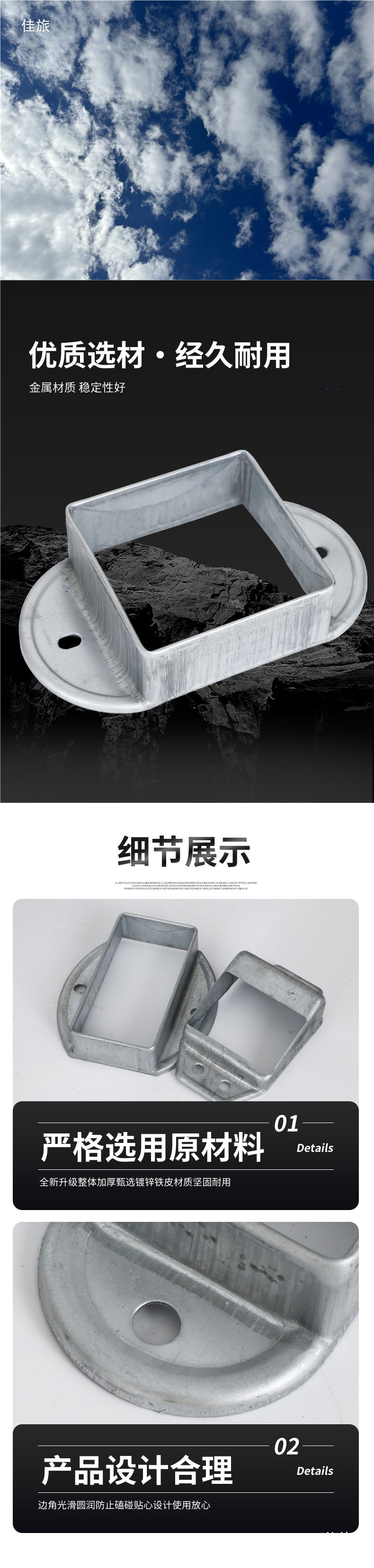 난간 액세서리 고정 시트 아연 강철 기둥 직선 시트 경사 시트 계단 난간 사각 튜브 커넥터 스트레치 버클 베이스스토어 가기