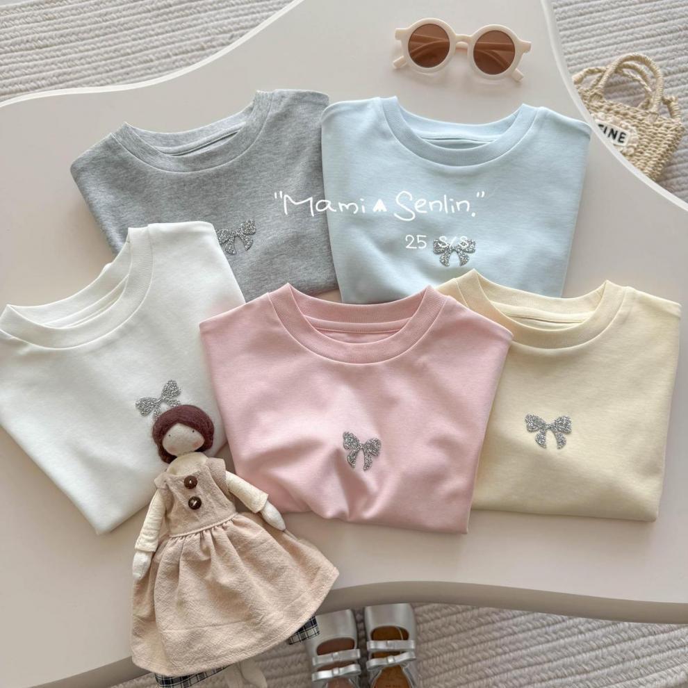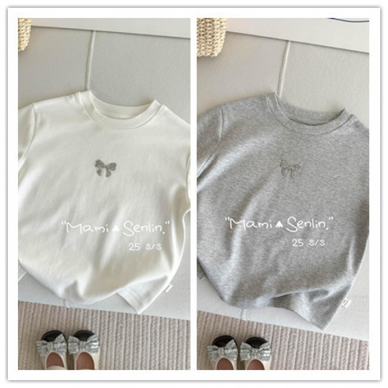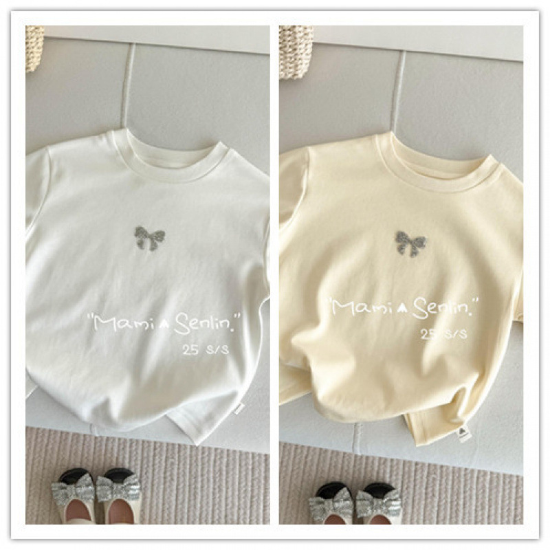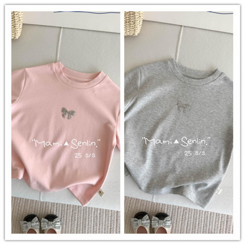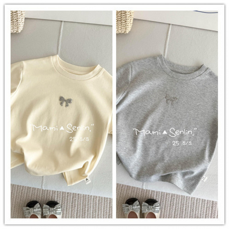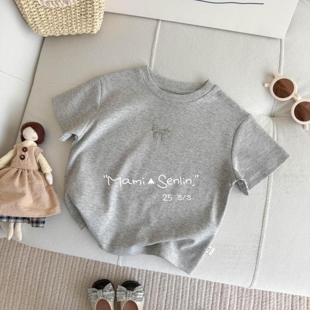 여아 티셔츠 반팔 여름 신작 보우 핫 다이아몬드 티셔츠 세련된 베이비 여름 코튼 탑 어린이 다용도