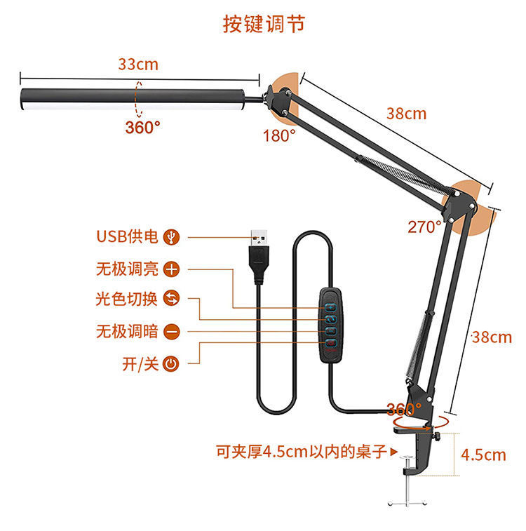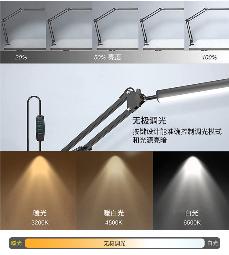 학생용 긴 팔 테이블 램프, LED 어린이 학습 특수 기숙사 침대 옆 독서 테이블 램프, 컴퓨터 화면 교수형 램프, 무역스토어 가기