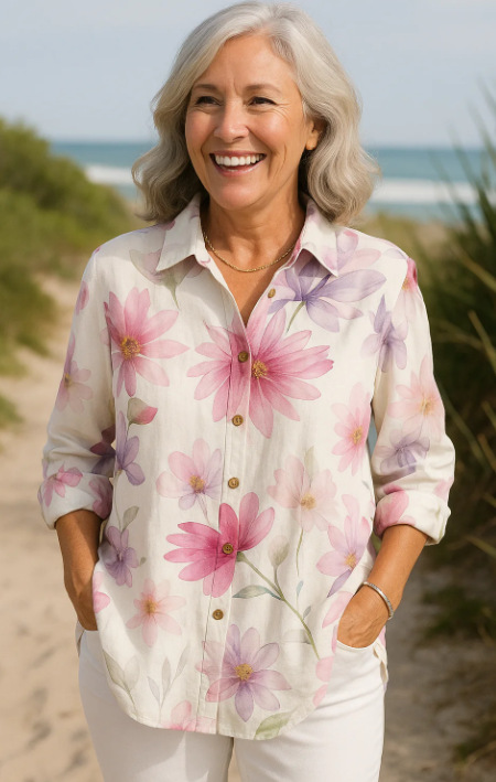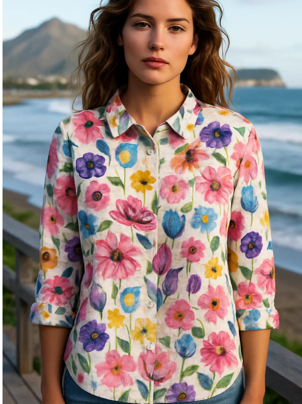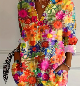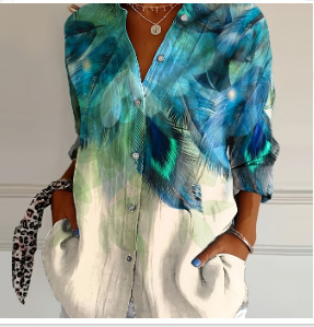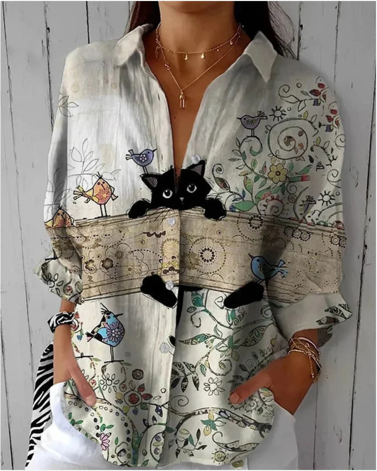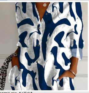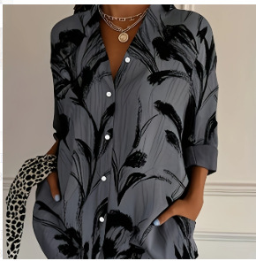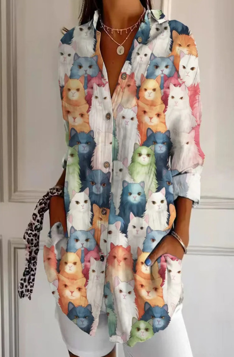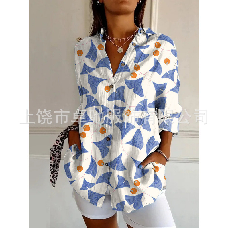 새로운 2025 여성 긴 셔츠 여성 여름 유럽과 미국의 트렌드 긴 소매 셔츠 인쇄 패턴 인쇄 3D 셔츠스토어 가기