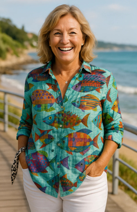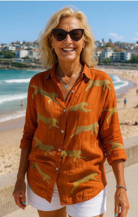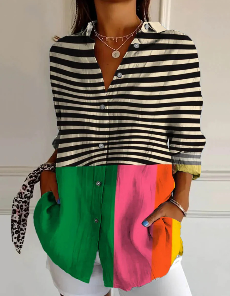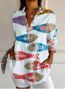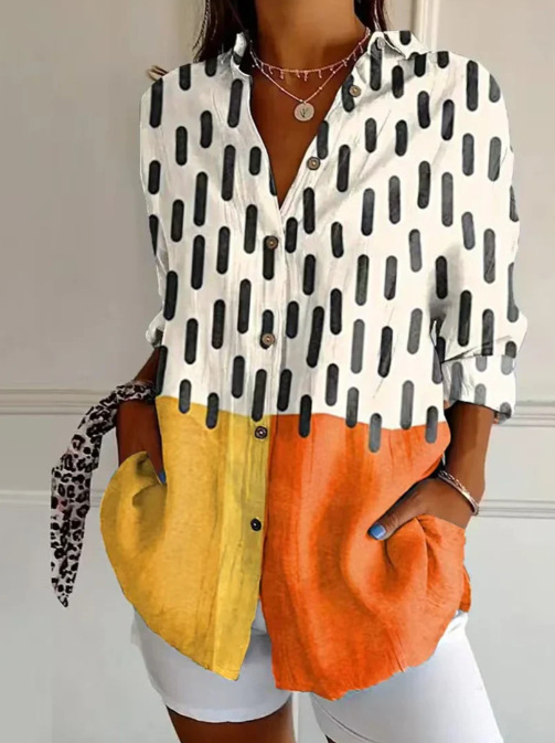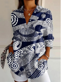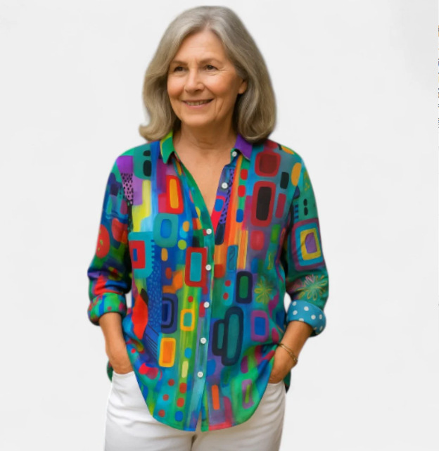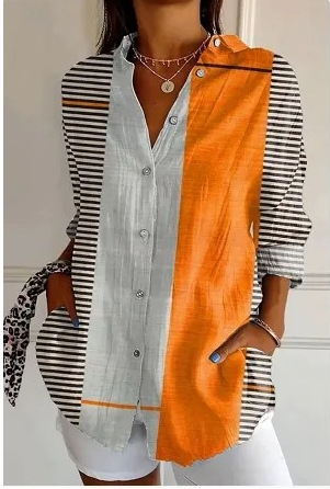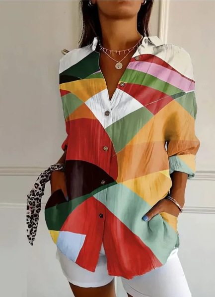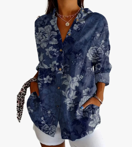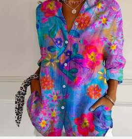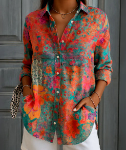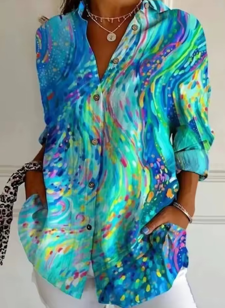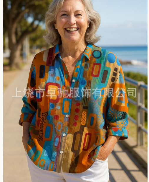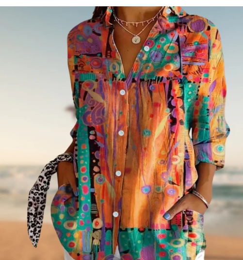 새로운 2025 여성 긴 셔츠 여성 여름 유럽과 미국의 트렌드 긴 소매 셔츠 인쇄 패턴 인쇄 3D 셔츠