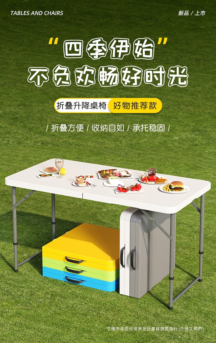 야외 접이식 테이블, 직사각형 테이블, 리프팅 가능한 휴대용 캠핑 플라스틱 식탁 및 의자스토어 가기