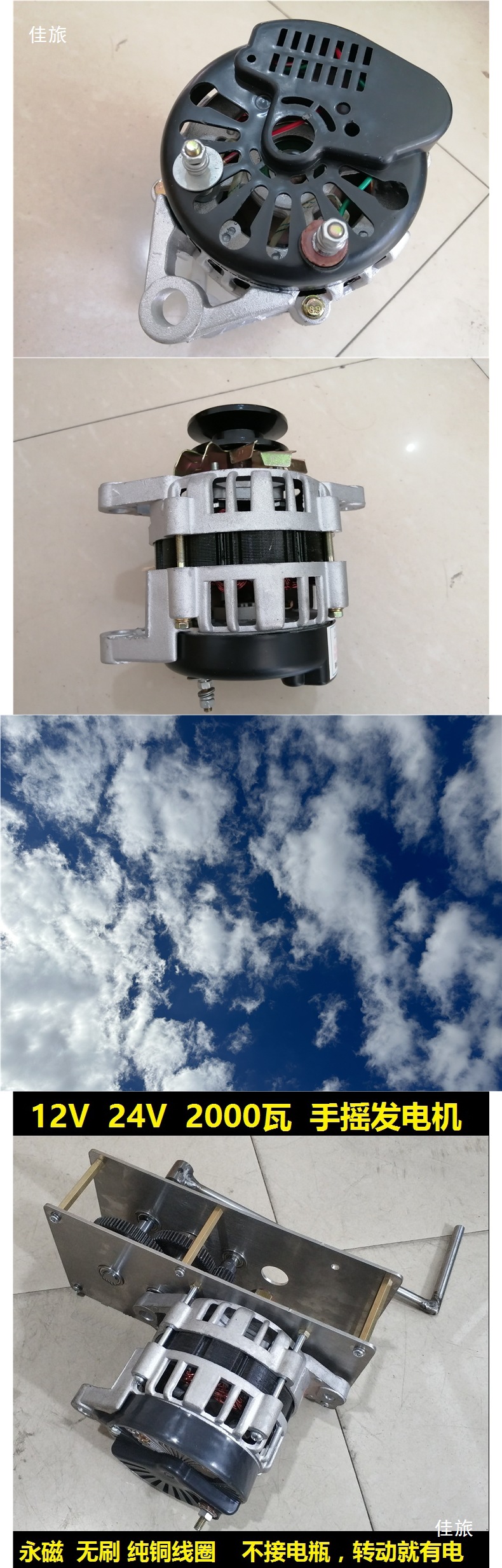 • 14V 2000W 발전기 + 기어박스 + 크랭크