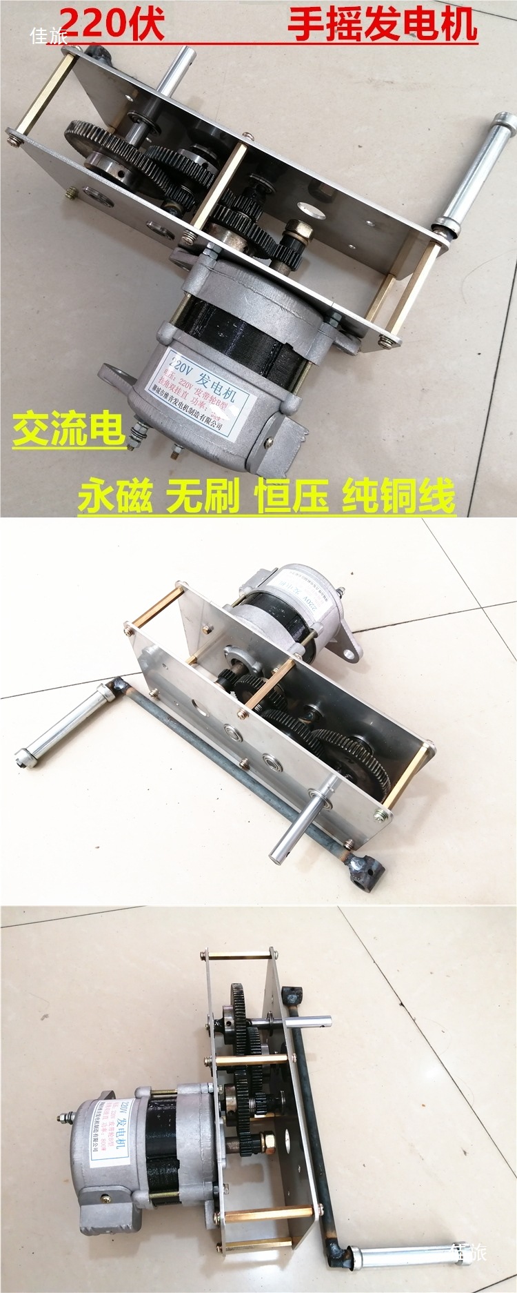• 220V 800W 발전기 + 기어박스 + 크랭크
