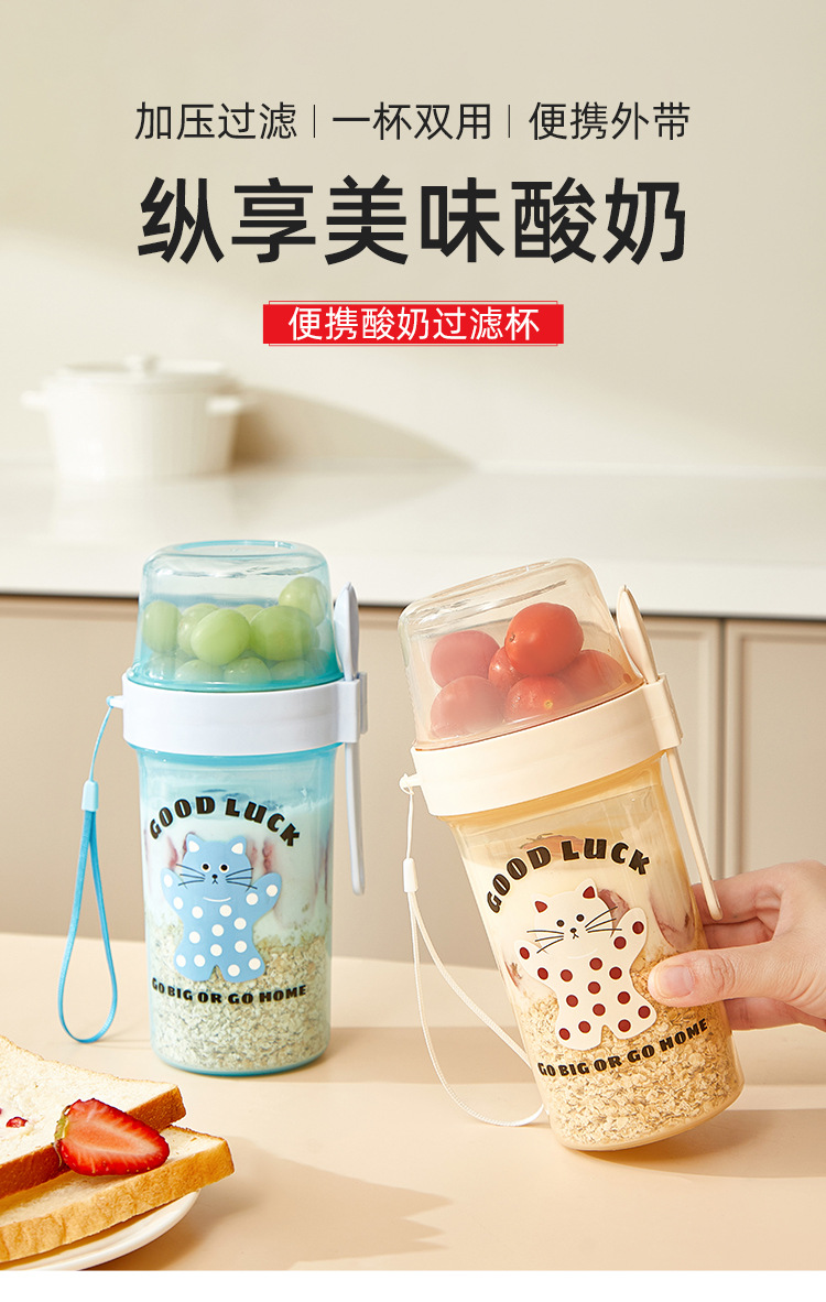 Fant 휴대용 요구르트 필터 컵 야채 샐러드 컵 테이크 아웃 과일 요구르트 밀크 쉐이크 뚜껑이 있는 아침 식사 컵