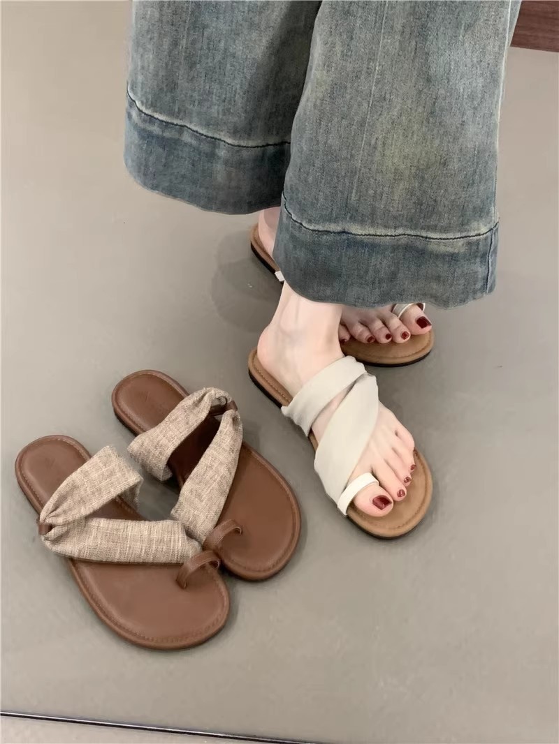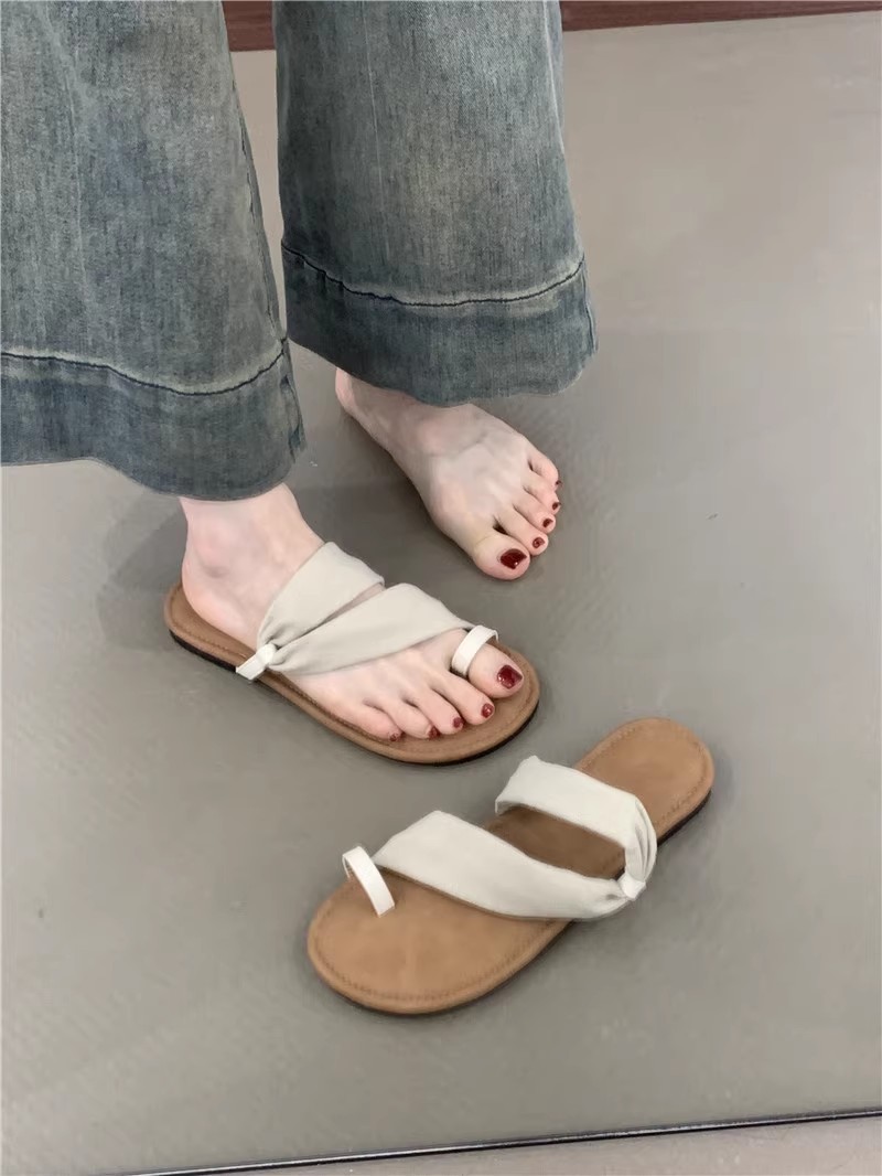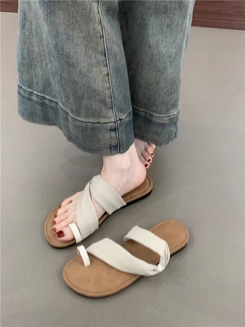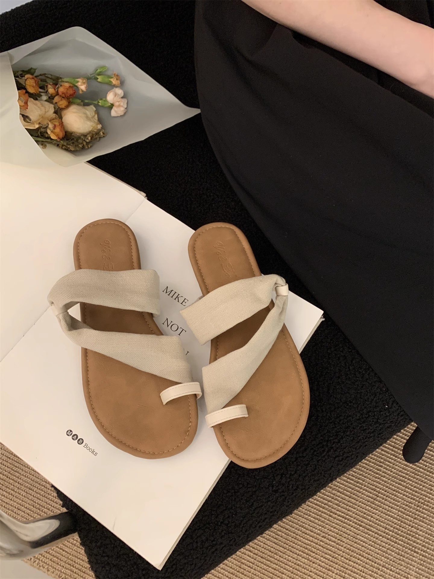 슬립온 로마 샌들 2025 여름 한국어 버전 ins 캐주얼 스타일 슬립온 휴가 해변 플랫 샌들 여성용스토어 가기