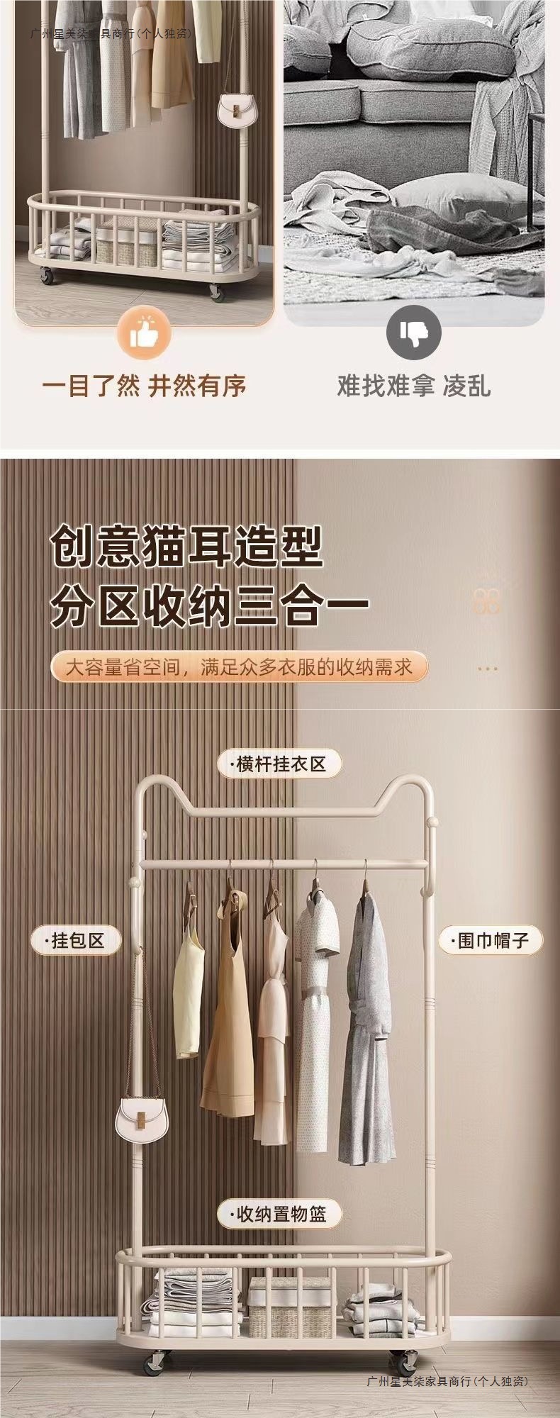 옷걸이, 바닥걸이형 침실옷걸이, 간이옷걸이, 이동식 바퀴, 가정용 거실, 인터넷 연예인 발코니 옷걸이스토어 가기