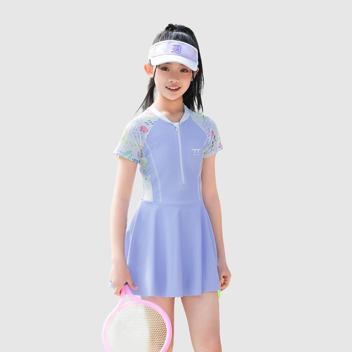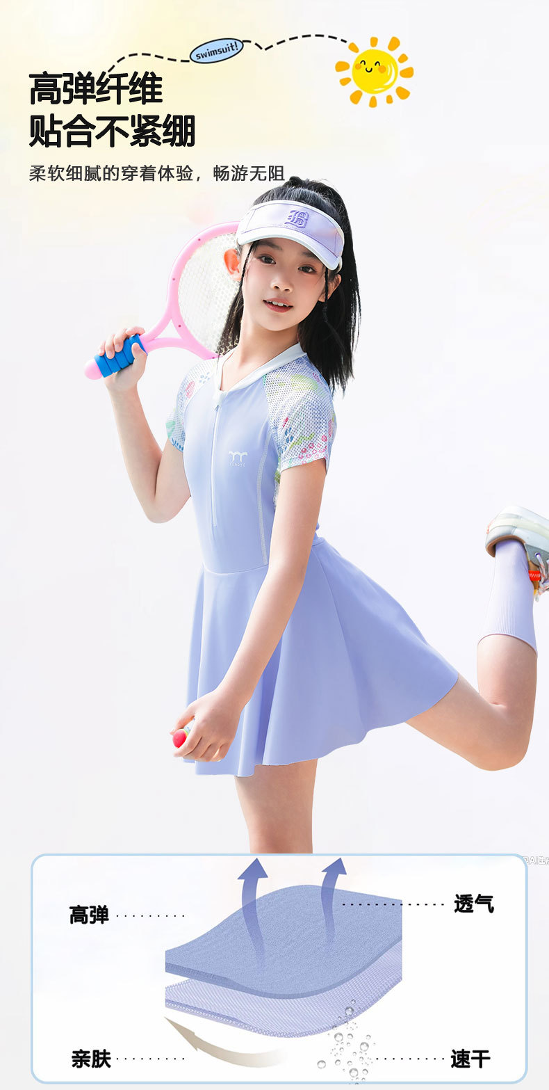 새로운 통기성 어린이 수영복 원피스 소녀 보수적 인 반팔 속건성 학생 공주 스커트 수영 훈련 수영복