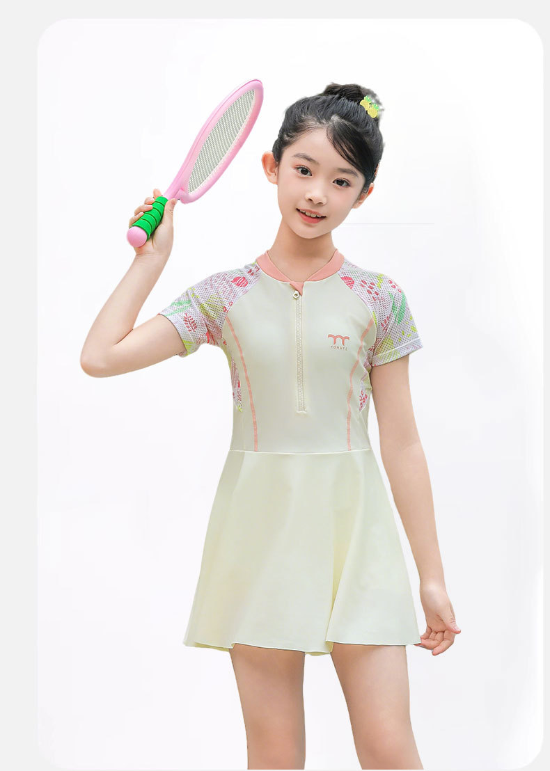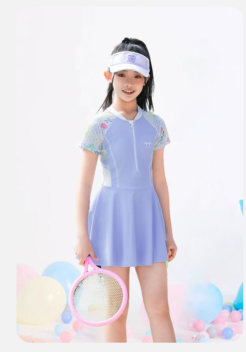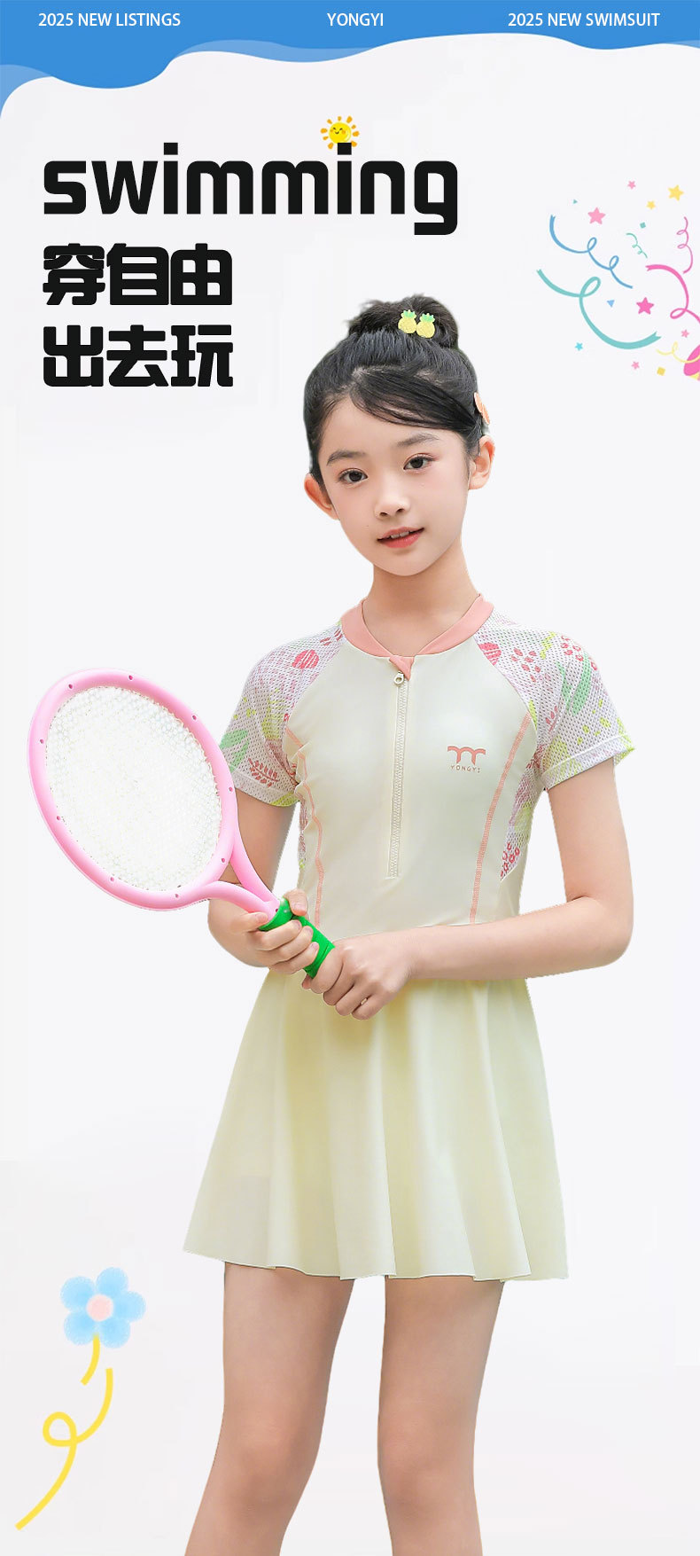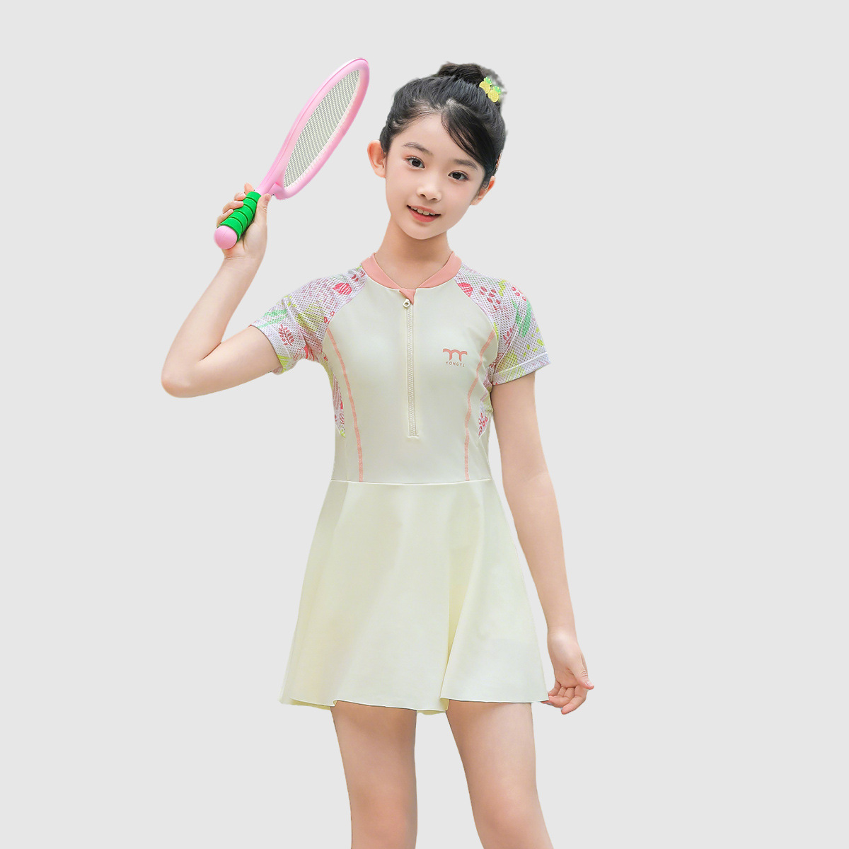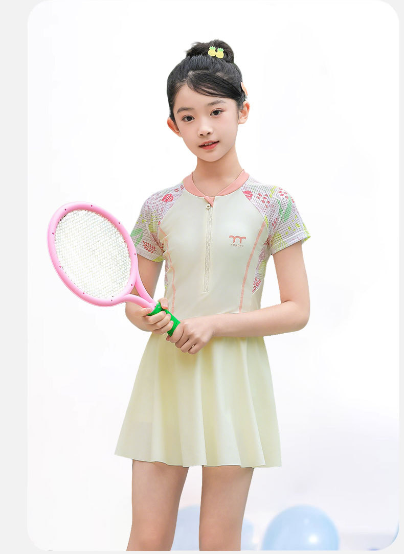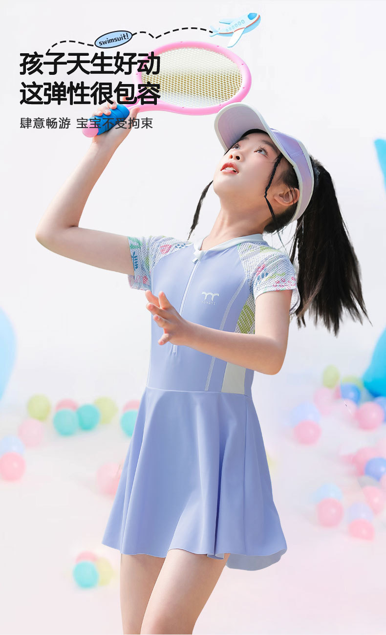 새로운 통기성 어린이 수영복 원피스 소녀 보수적 인 반팔 속건성 학생 공주 스커트 수영 훈련 수영복스토어 가기